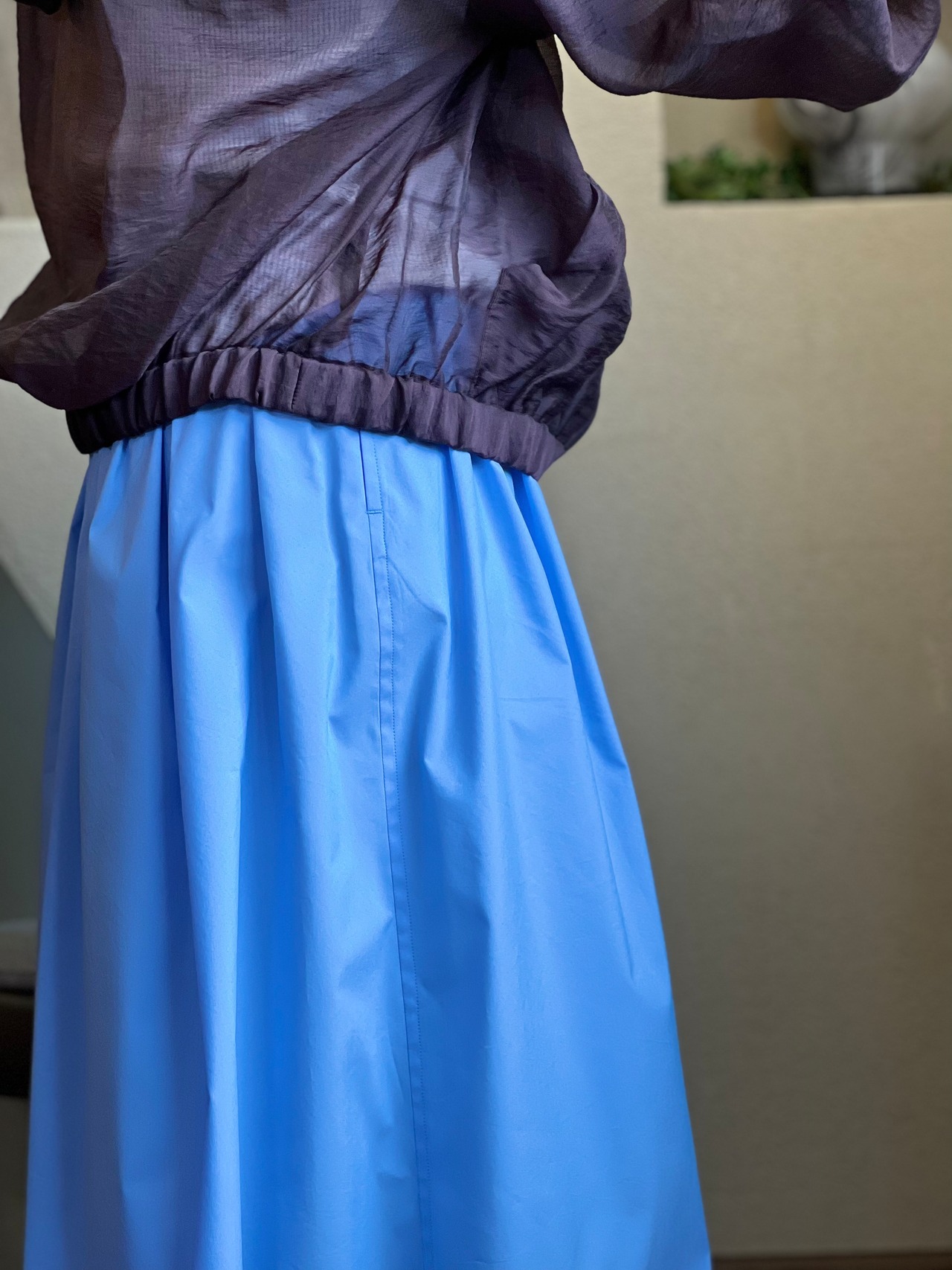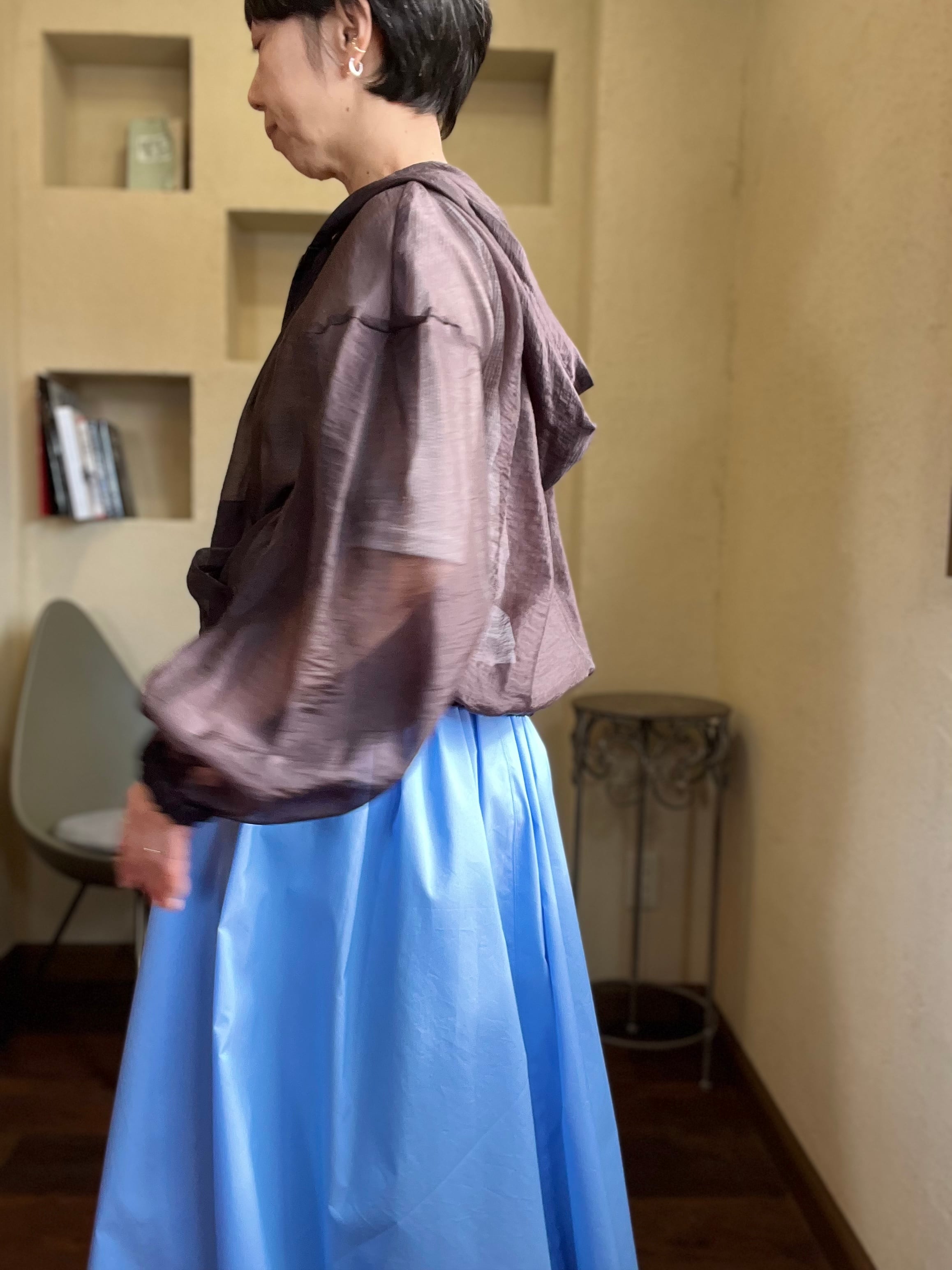 袖、裾にはゴムが入りふんわりとしたシルエットを作ります