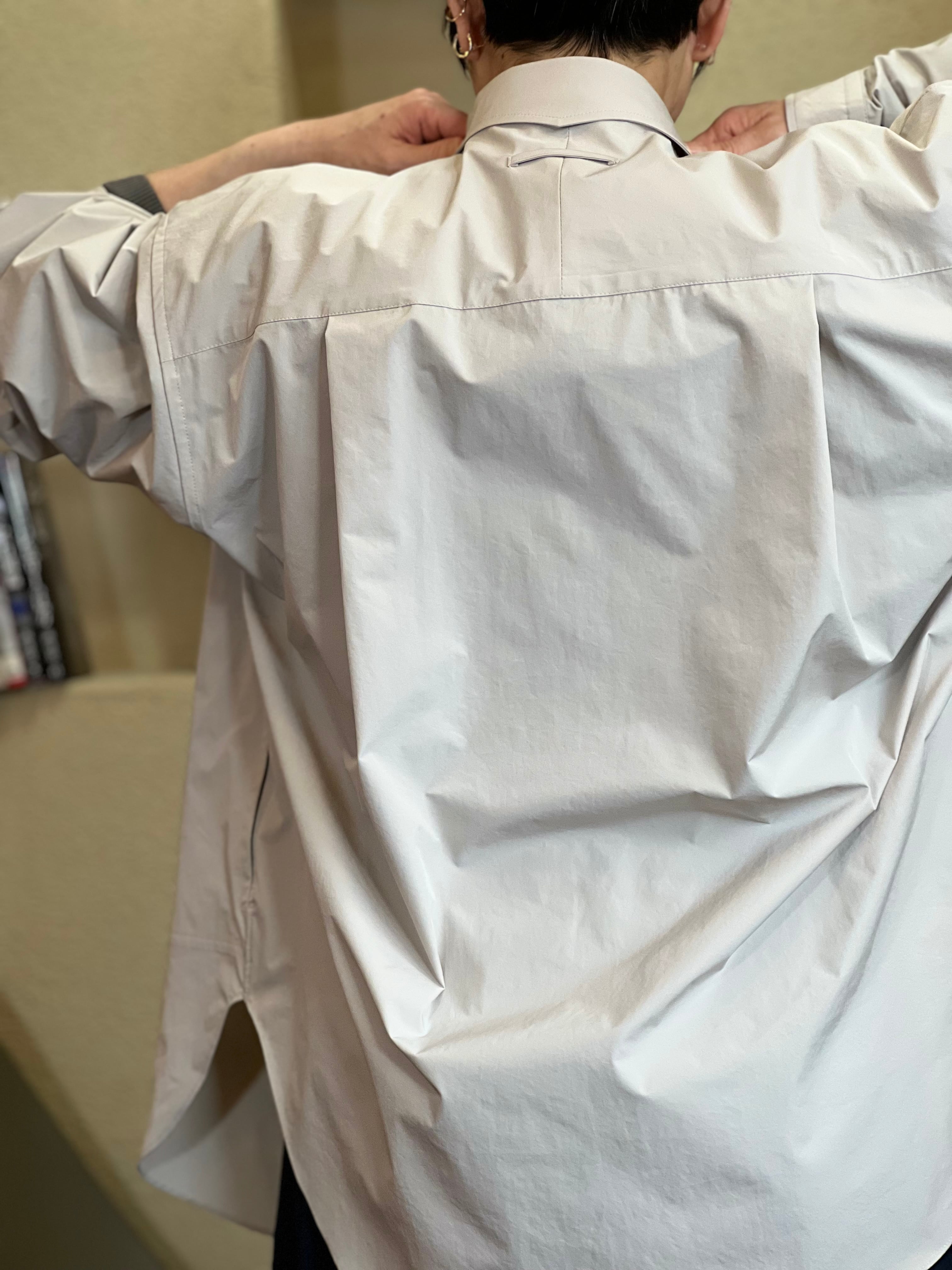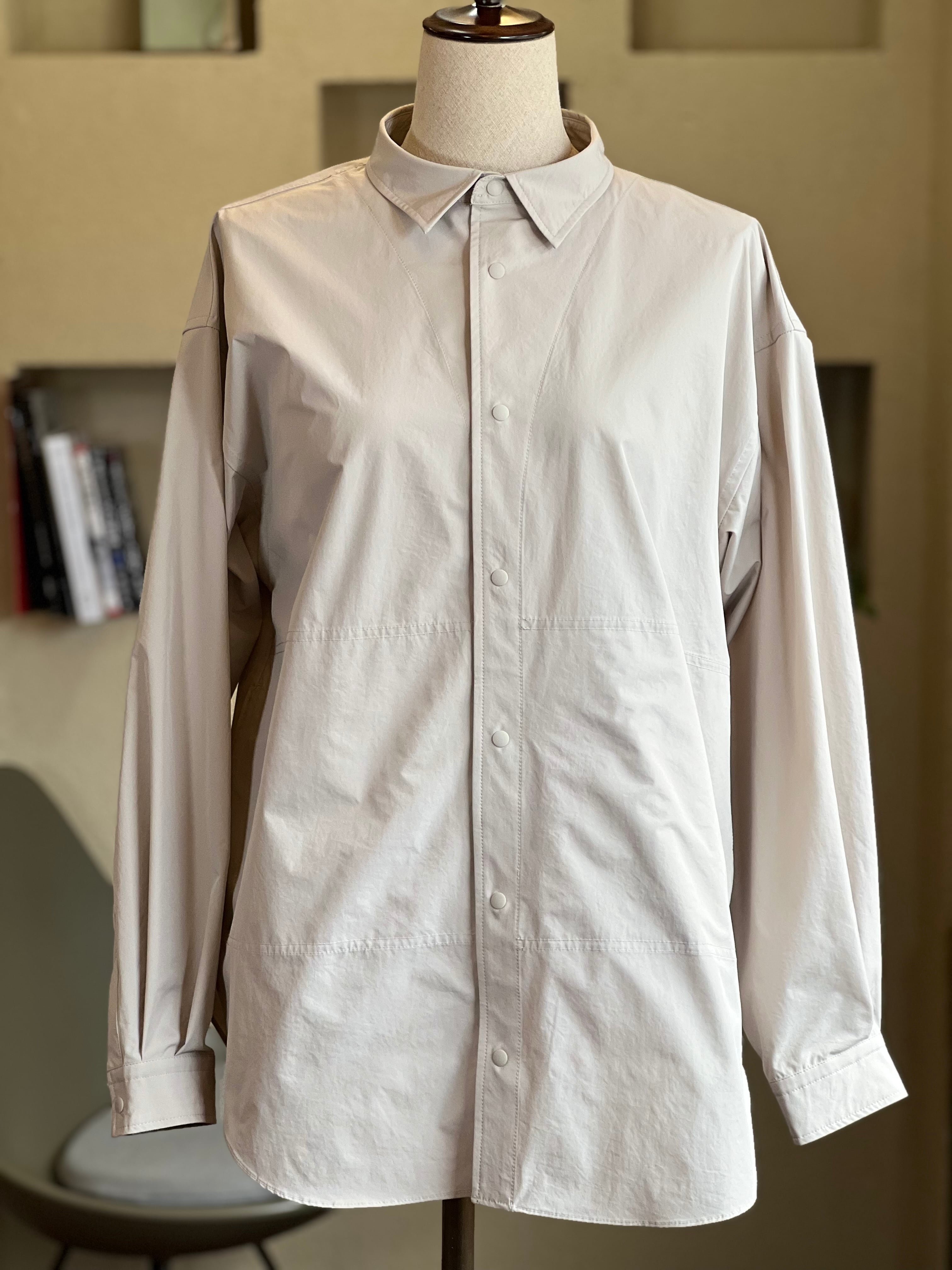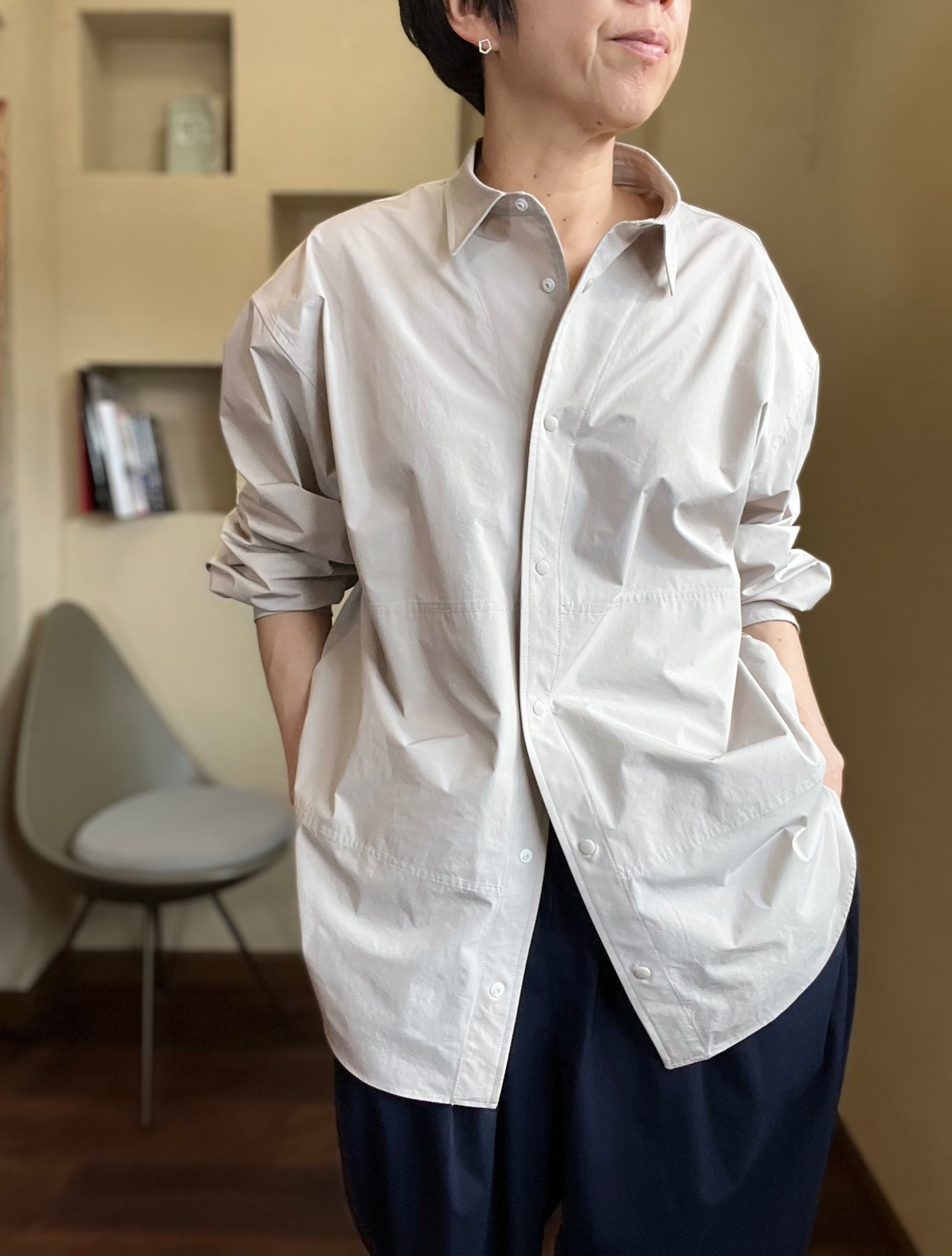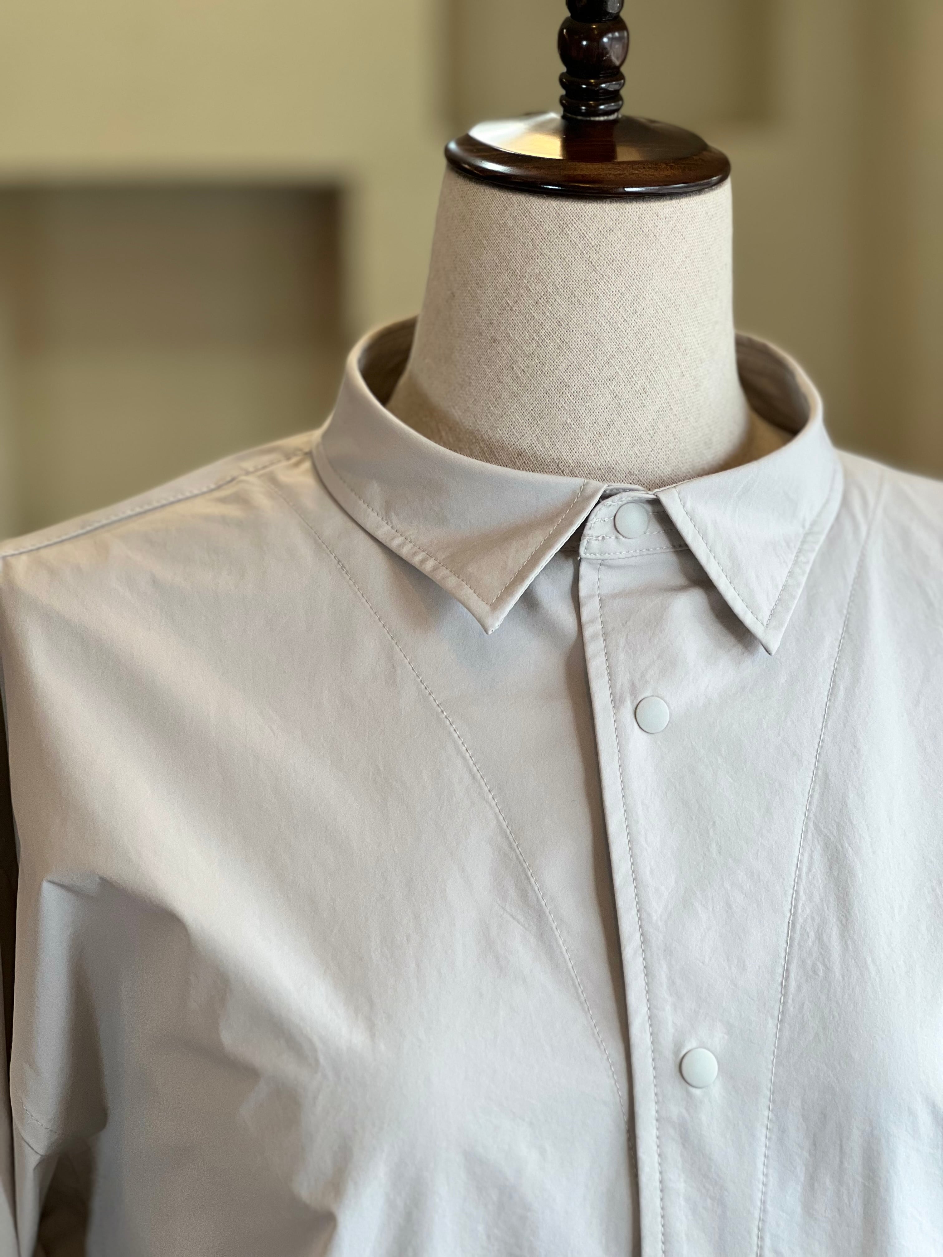 デザインはベーシックなシャツを踏襲しながら着脱に便利なドット釦化