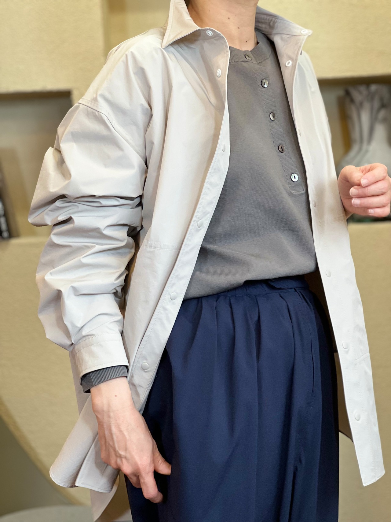 制電糸を入れている為、様々なレイヤードでもストレスなく着用可能です