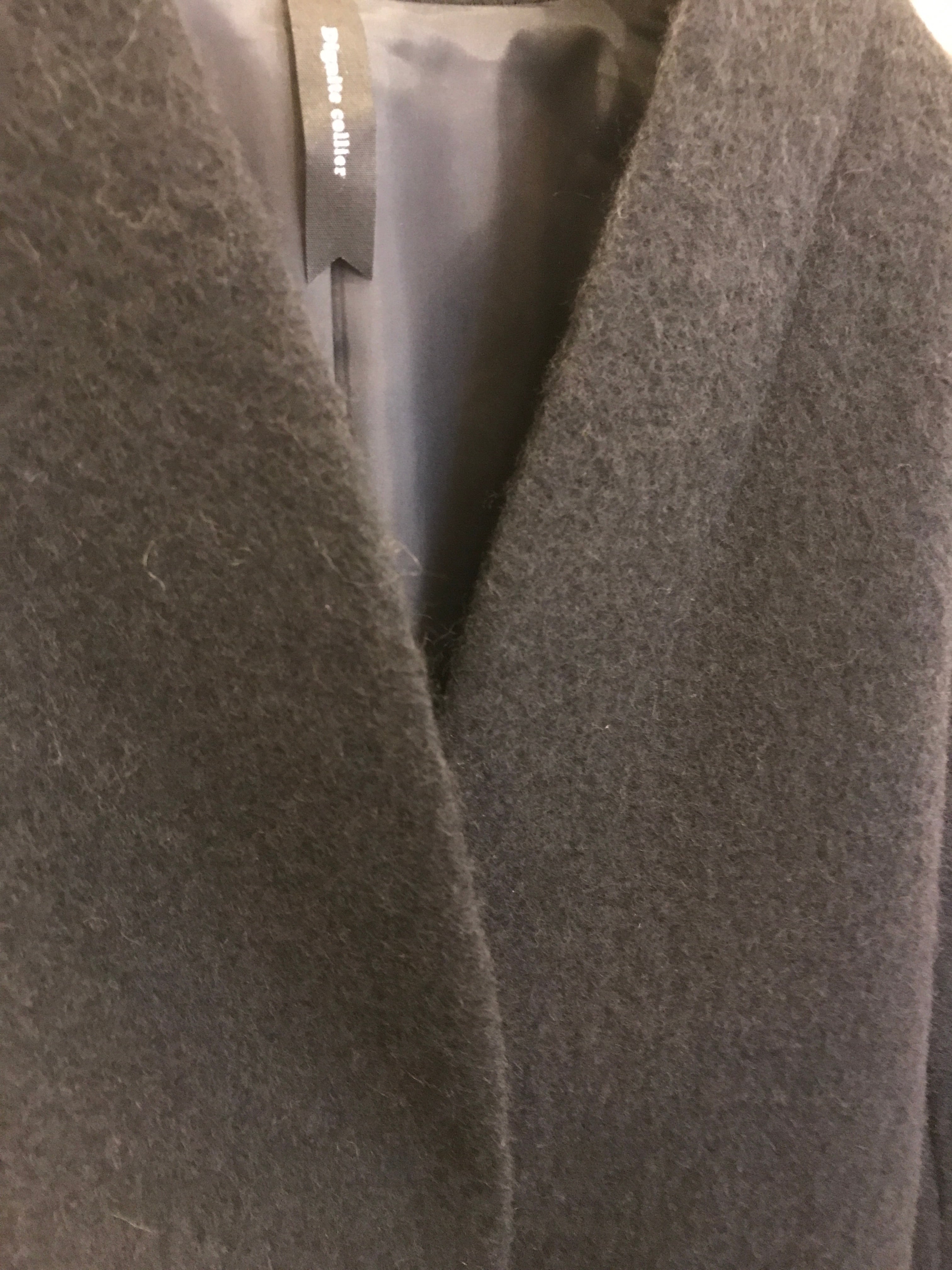 ノーカラーでスッキリとみせてくれ旬のタートルニットとの合わせは絶妙です。