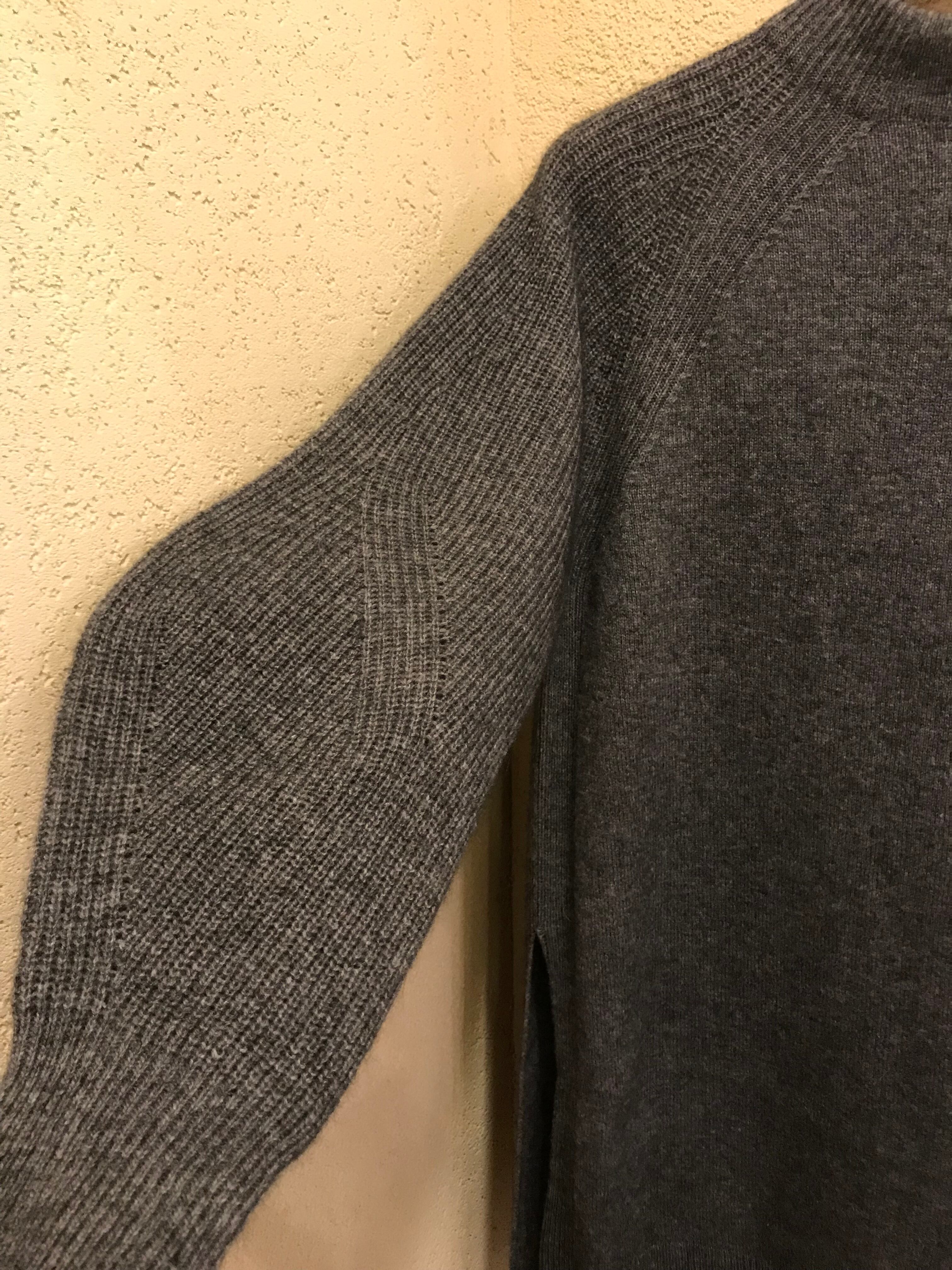 アルドリッジよりハイネックのミドル丈のニットプルオーバー。