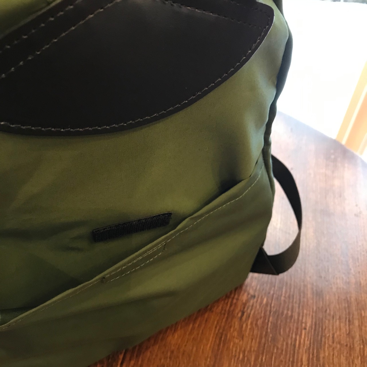 フロントのファスナー付きポケット、背中にも外ポケット、中には小物入れポケット2つ、その後ろにザックリと大きなポケット1つ。