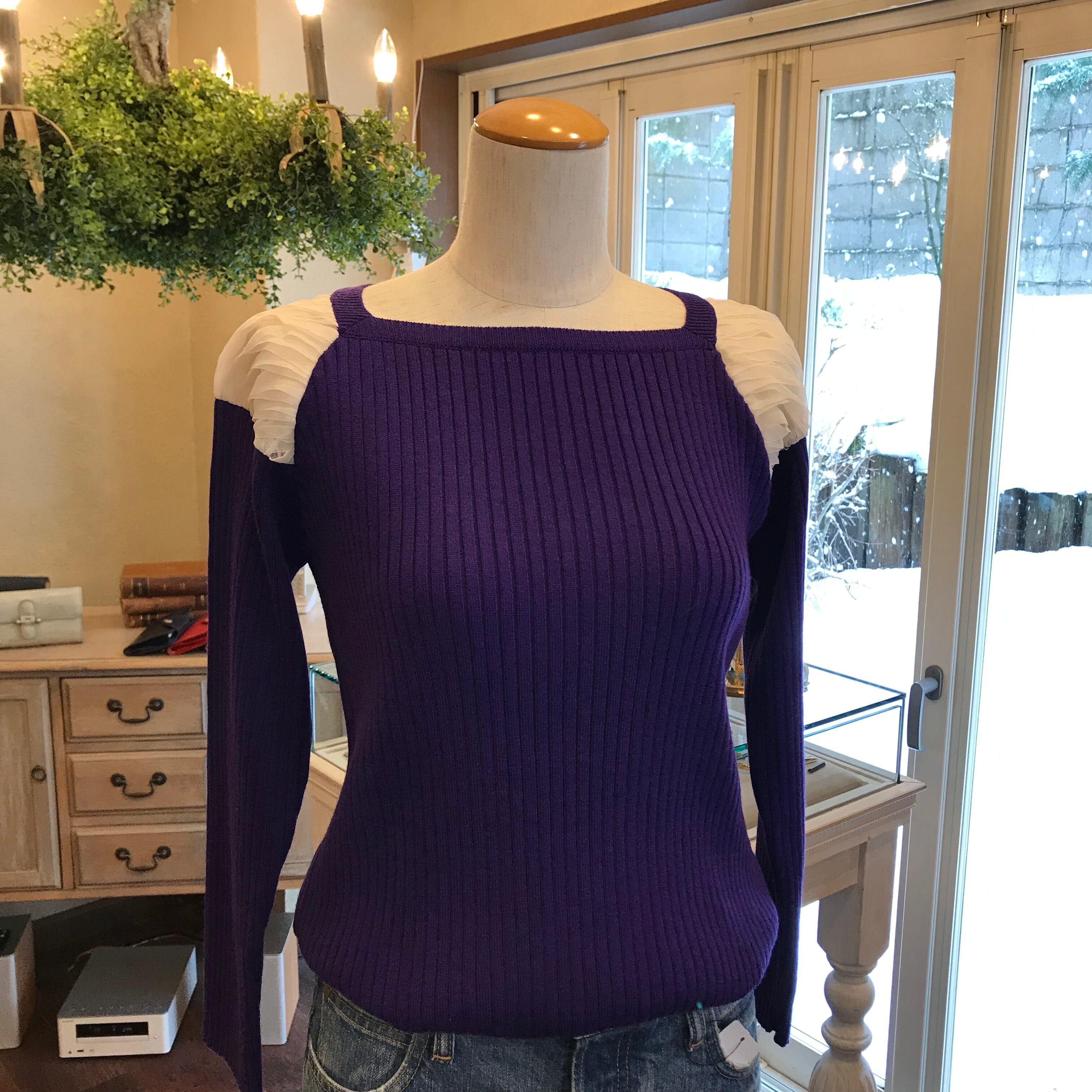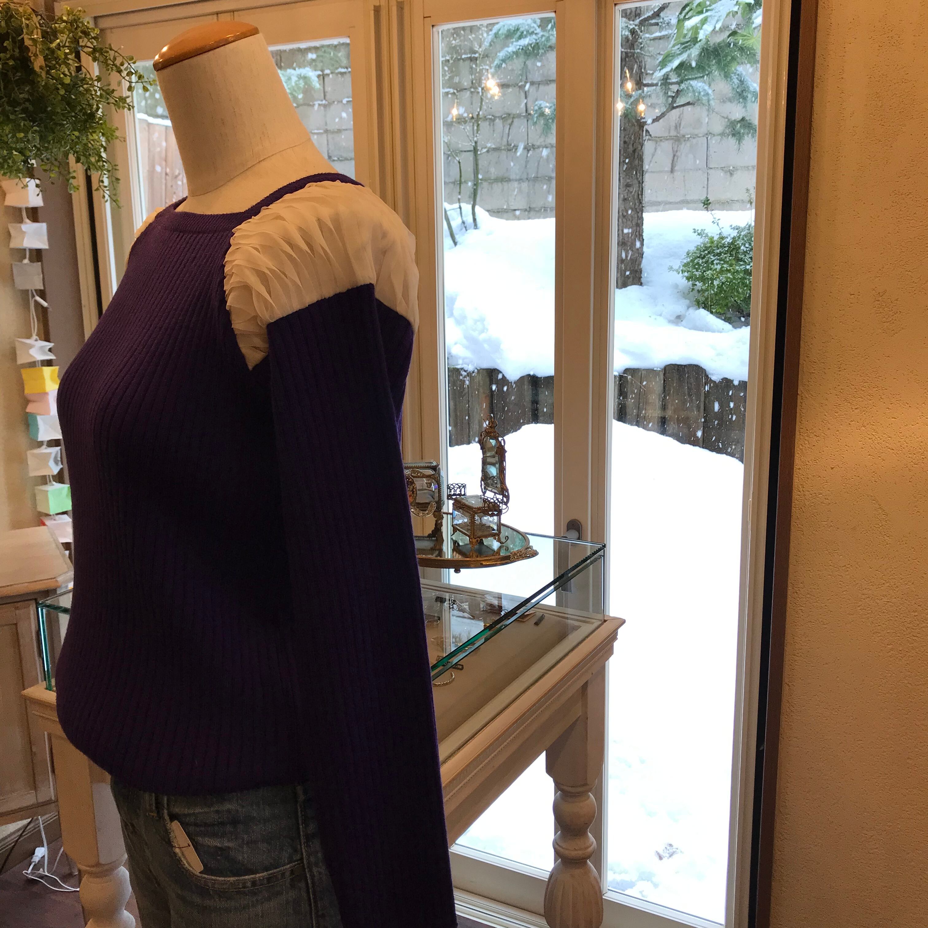 dolly-seanより定番の肩にフリルがデザインされたリブニット。
