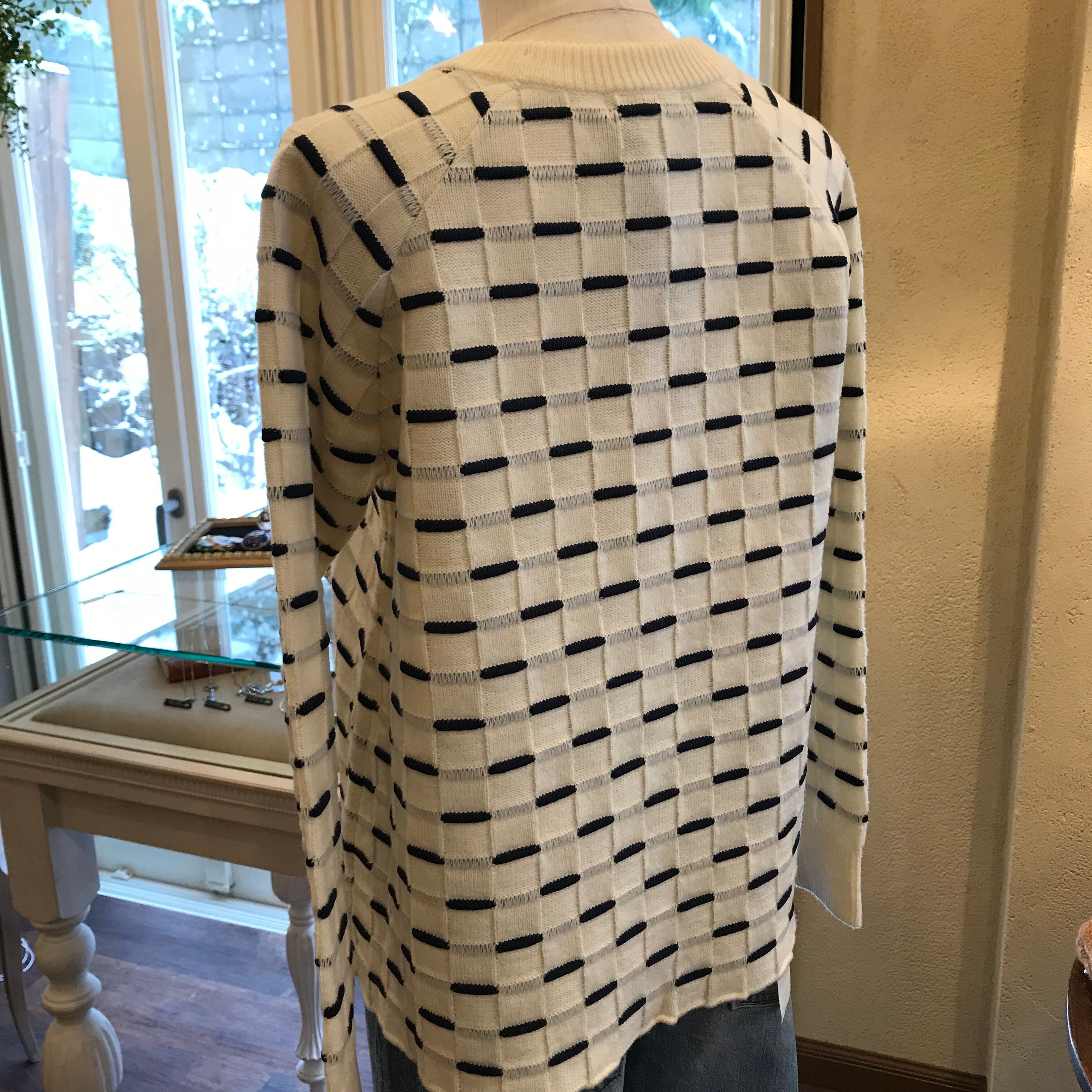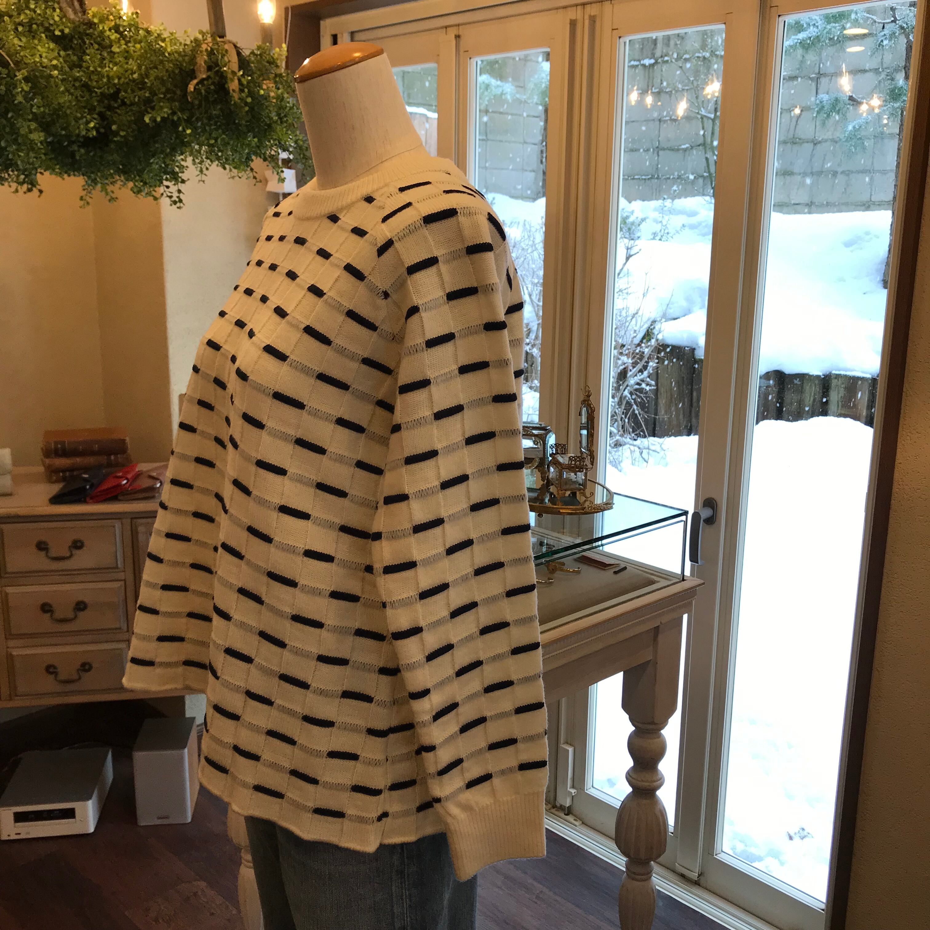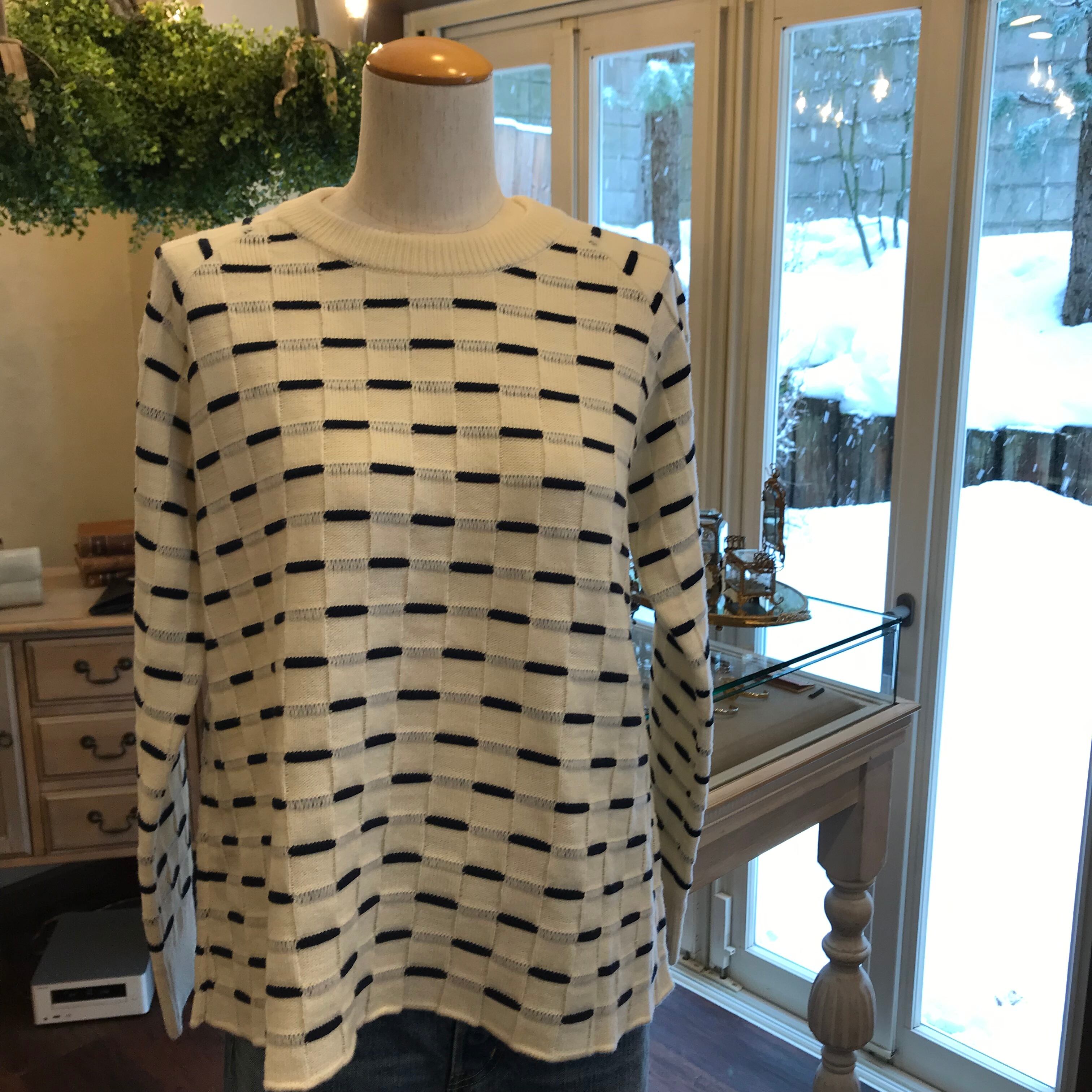 jeuneよりホワイト、ネイビー、グレーの糸でデザインされインパクトのある一枚。