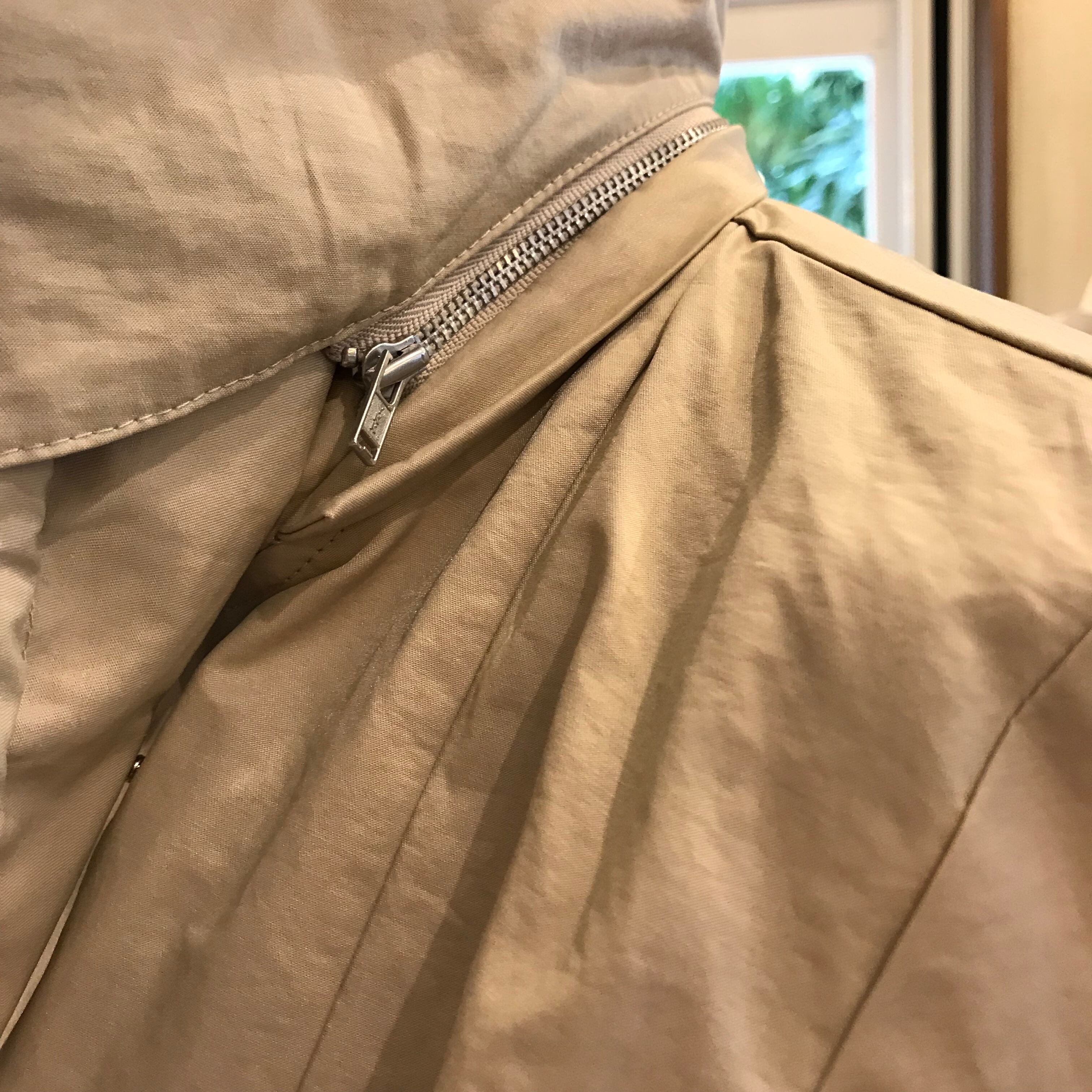 パリッとした生地にフードやファスナー使いの