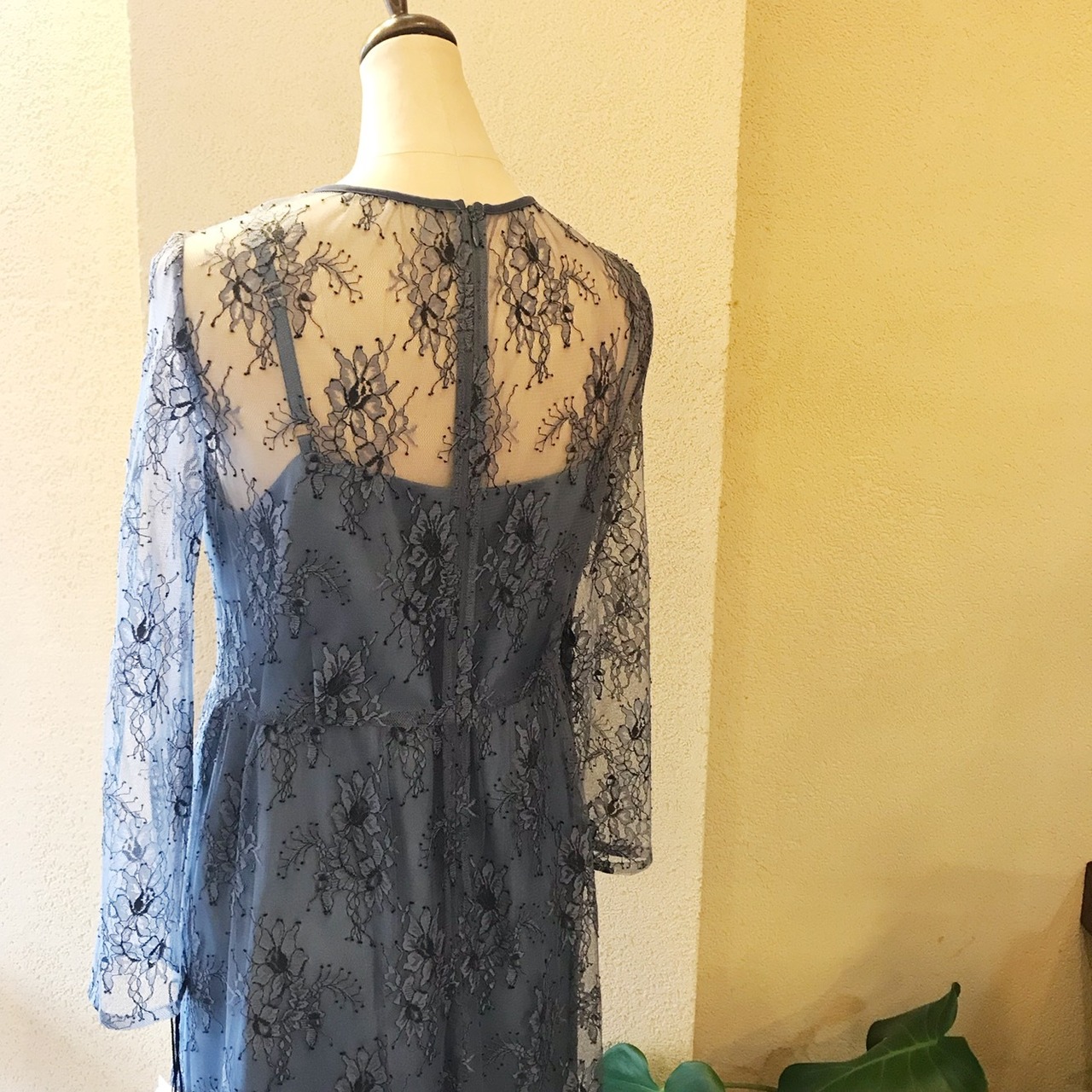 総レースの下にはキャミワンピースのライナー付き。キャミワンピースのカッティングも美しいです。