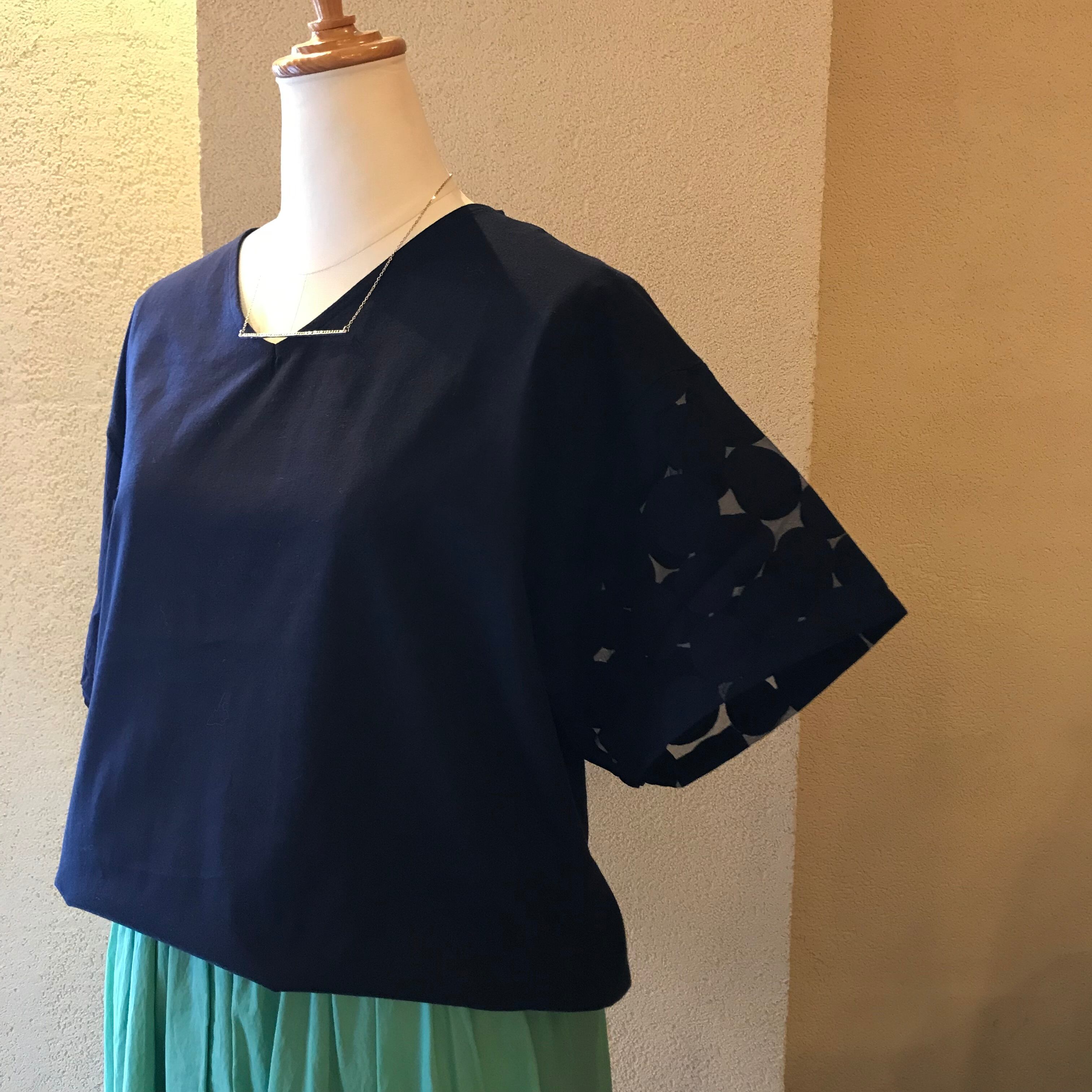 大きめのドットにさりげなく透け感が素敵なカットソーです。