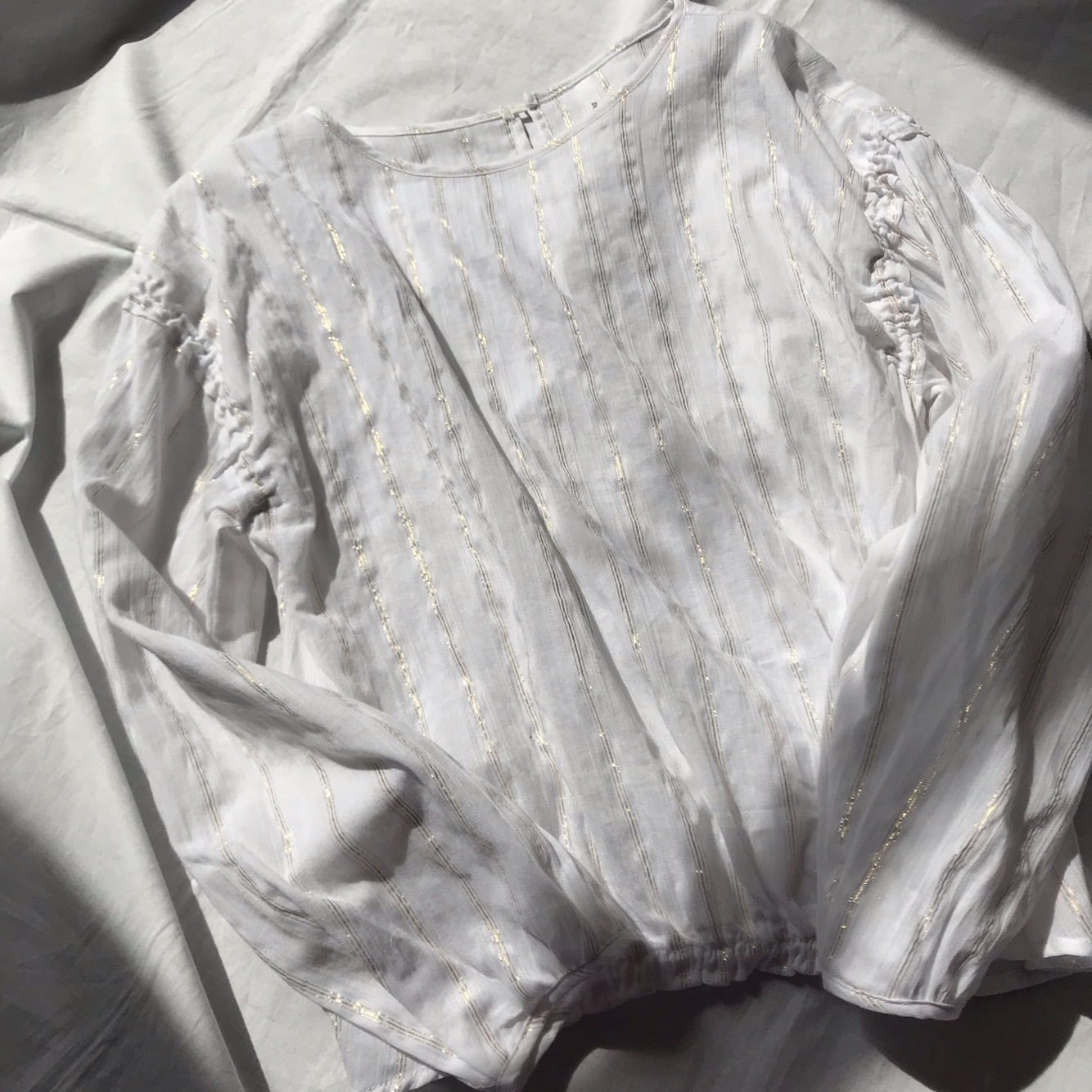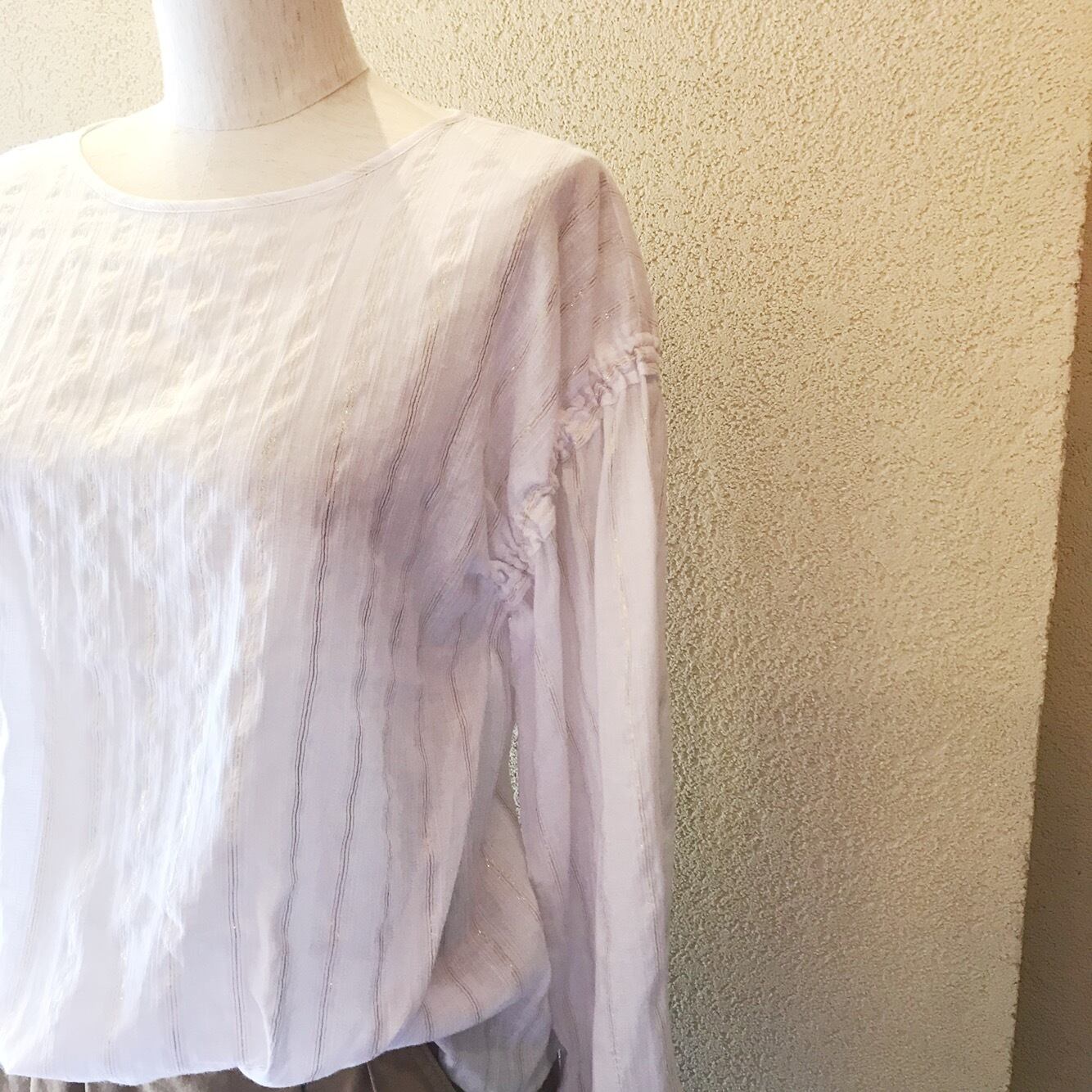 肩とフロント裾にゴムシャーリングデザインがアクセントに。