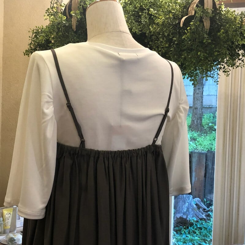 胸元のみゴムが入りあとは締め付けがないデザイン。