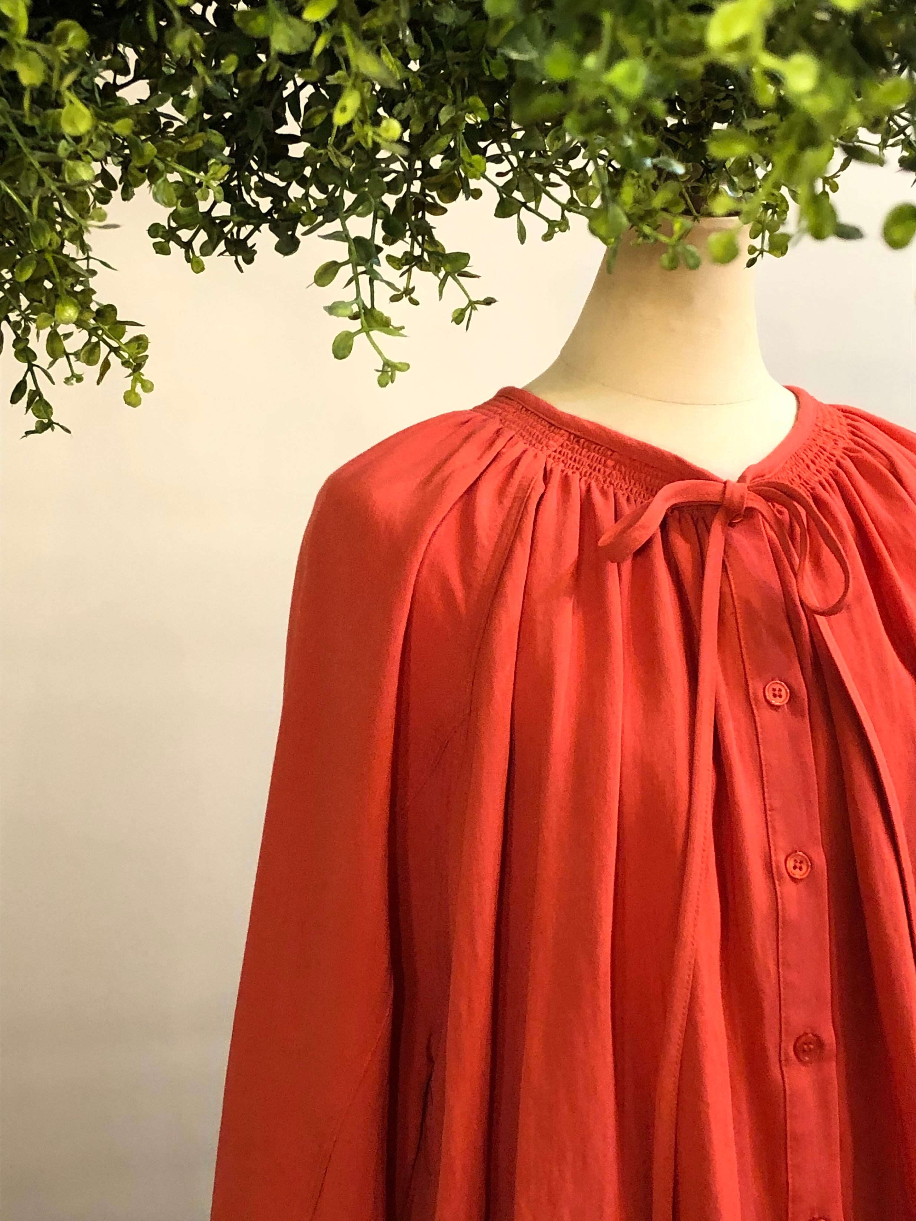 袖には緩めのゴムが入り、たくし上げてボリュームスリーブもお楽しみ頂けます