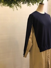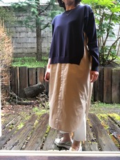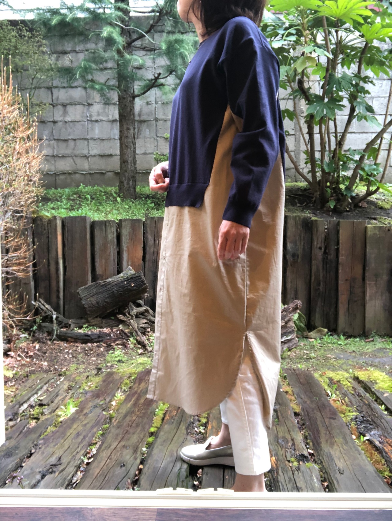 裾のボタンを少しはずし、パンツと組み合わせるコーディネートオススメです