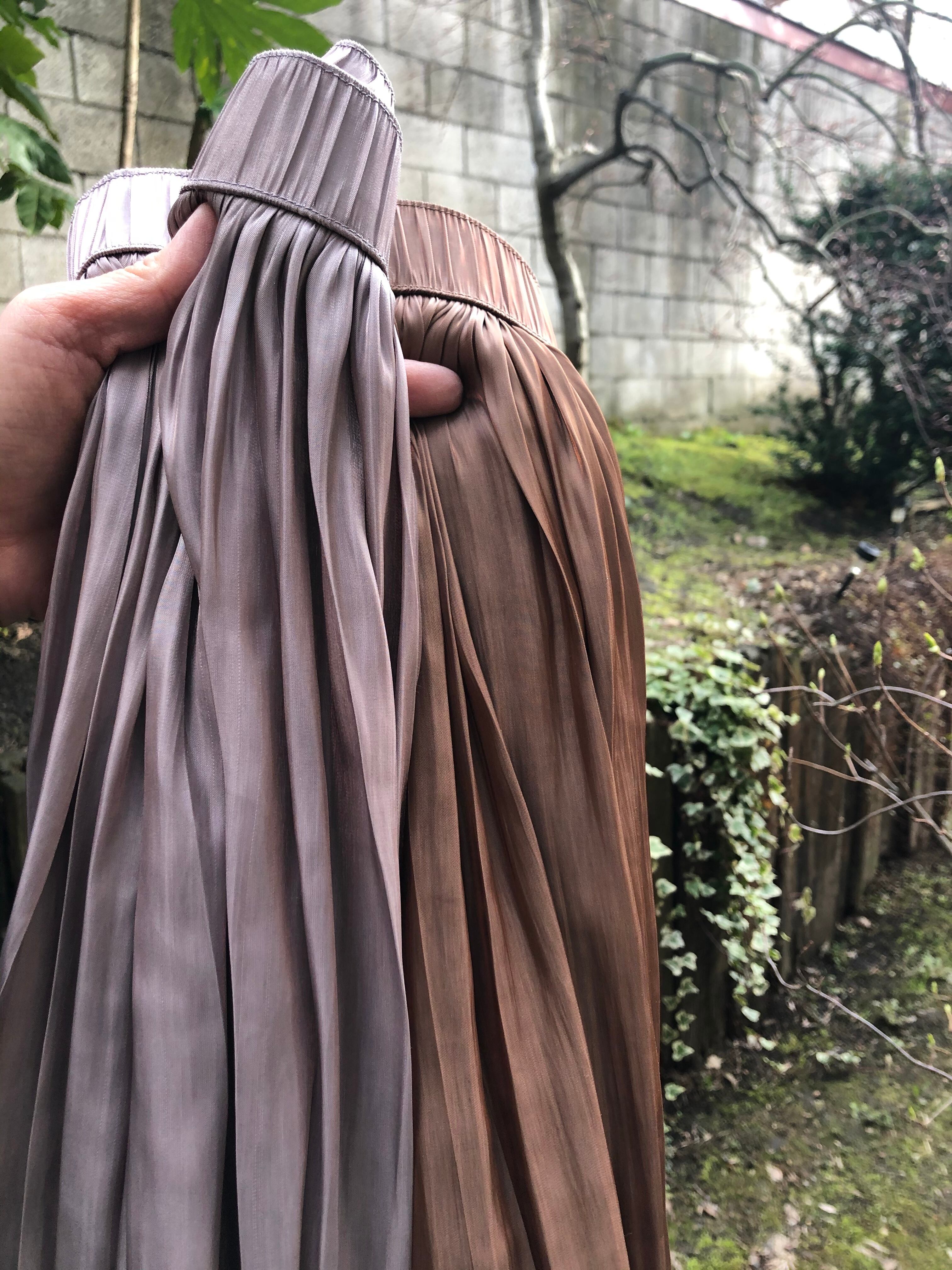 光沢と揺れ動く裾が、大人の上品さを醸し出してくれます