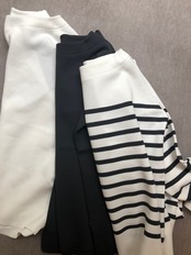 保温性が高く、適度なハリコシもあるストレッチ糸を使用しているので、身体の線を拾いにくく、軽く、シワにも強く、速乾性も高い優れニットです
