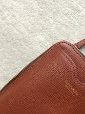 型押しのスプリットレザーを使用した、表面にツヤ感がある上品で女性らしい雰囲気の携帯ポシェットです。