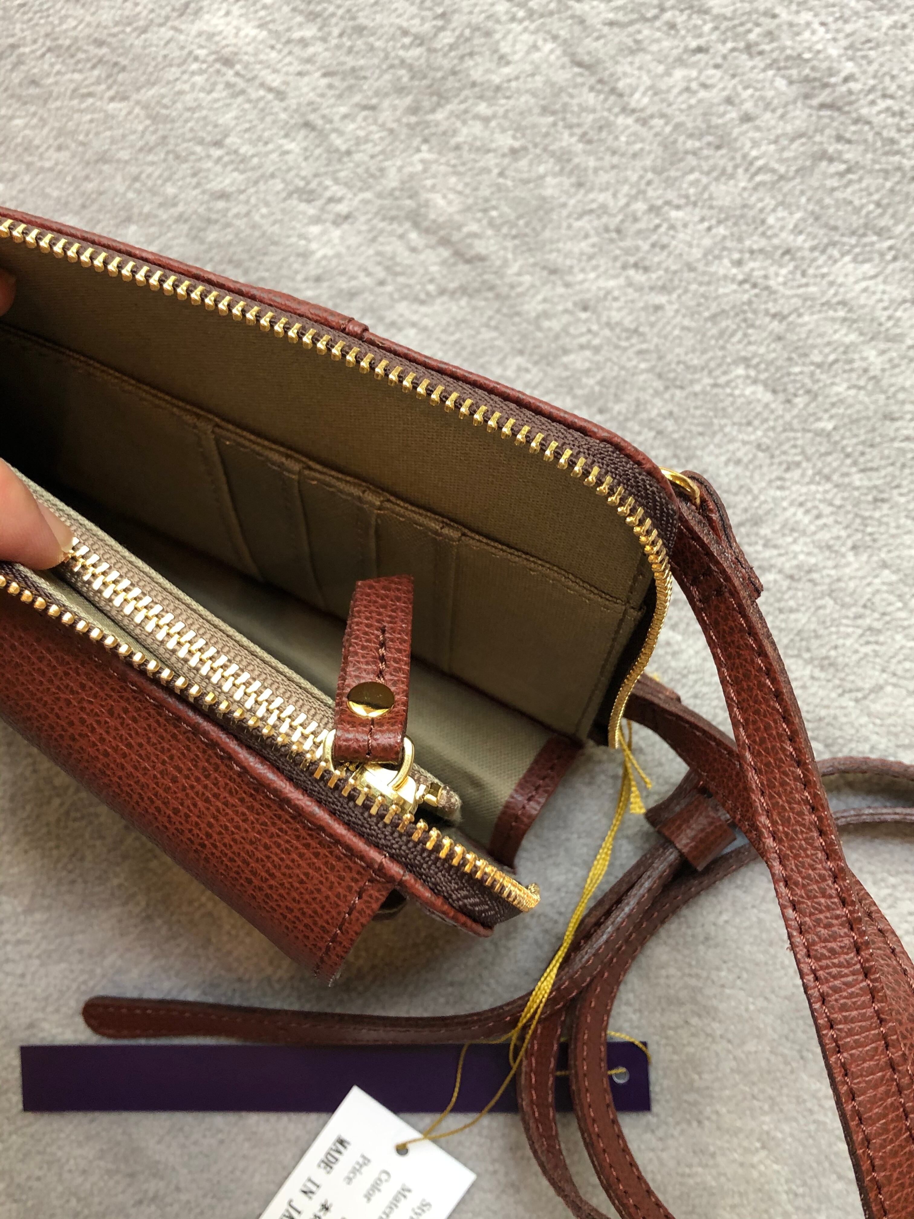 ミニマムな荷物でお出かけが出来るスマートフォンポシェット。携帯だけでなく、カードやコインも収納できる機能が魅力です。