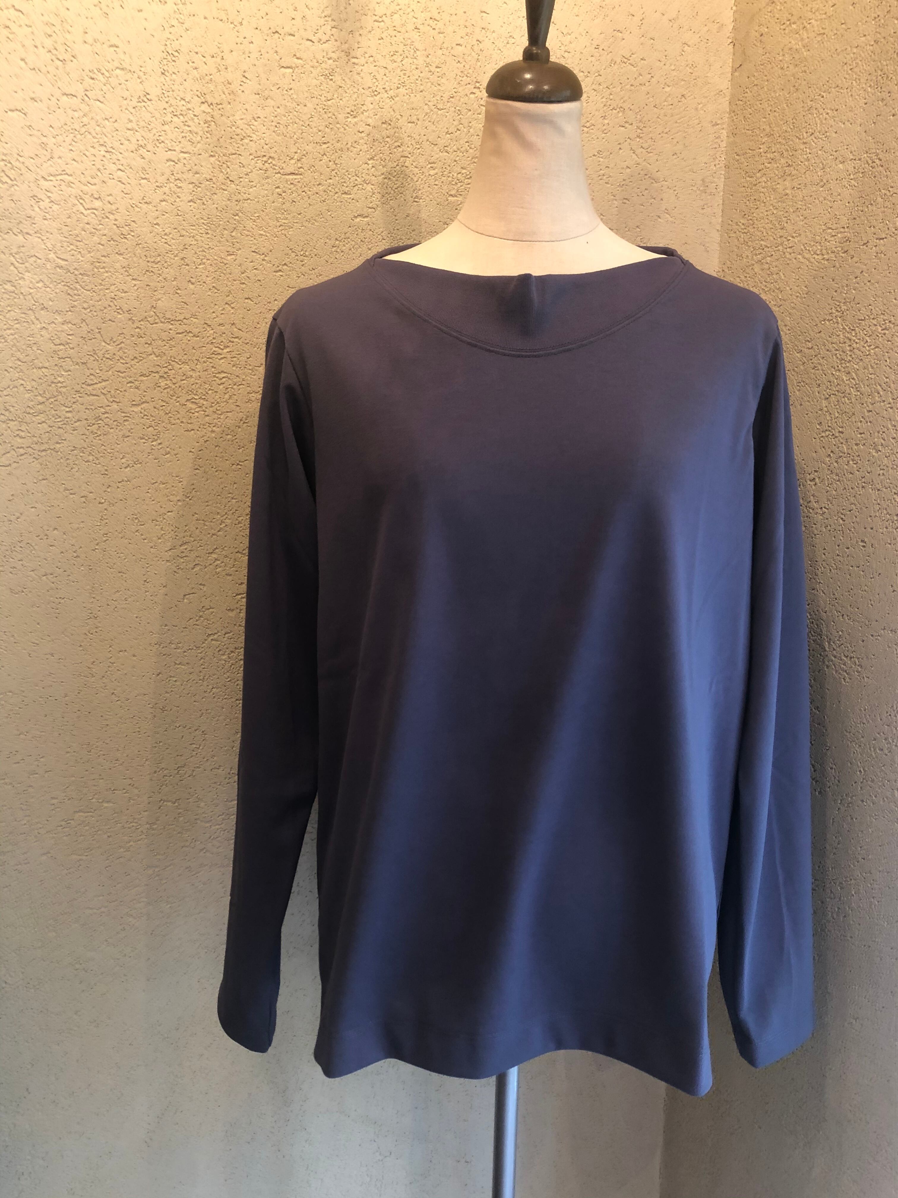 デザインはボートネックなので、一枚着としてはもちろん、レイヤードもしやすいTシャツです。