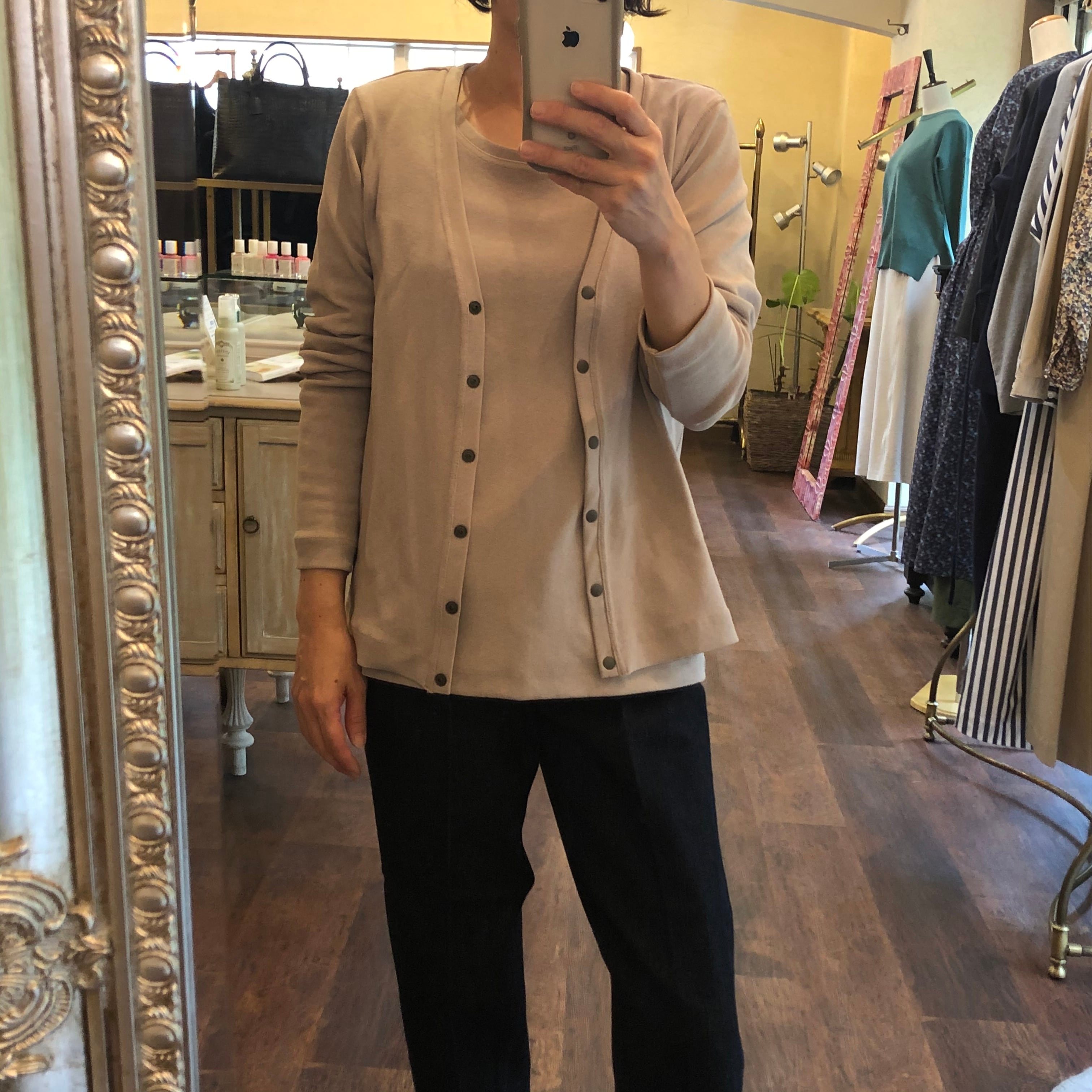 レイヤード可能なスッキリとしたシルエットですが、アームはゆったりとした作りになっております。