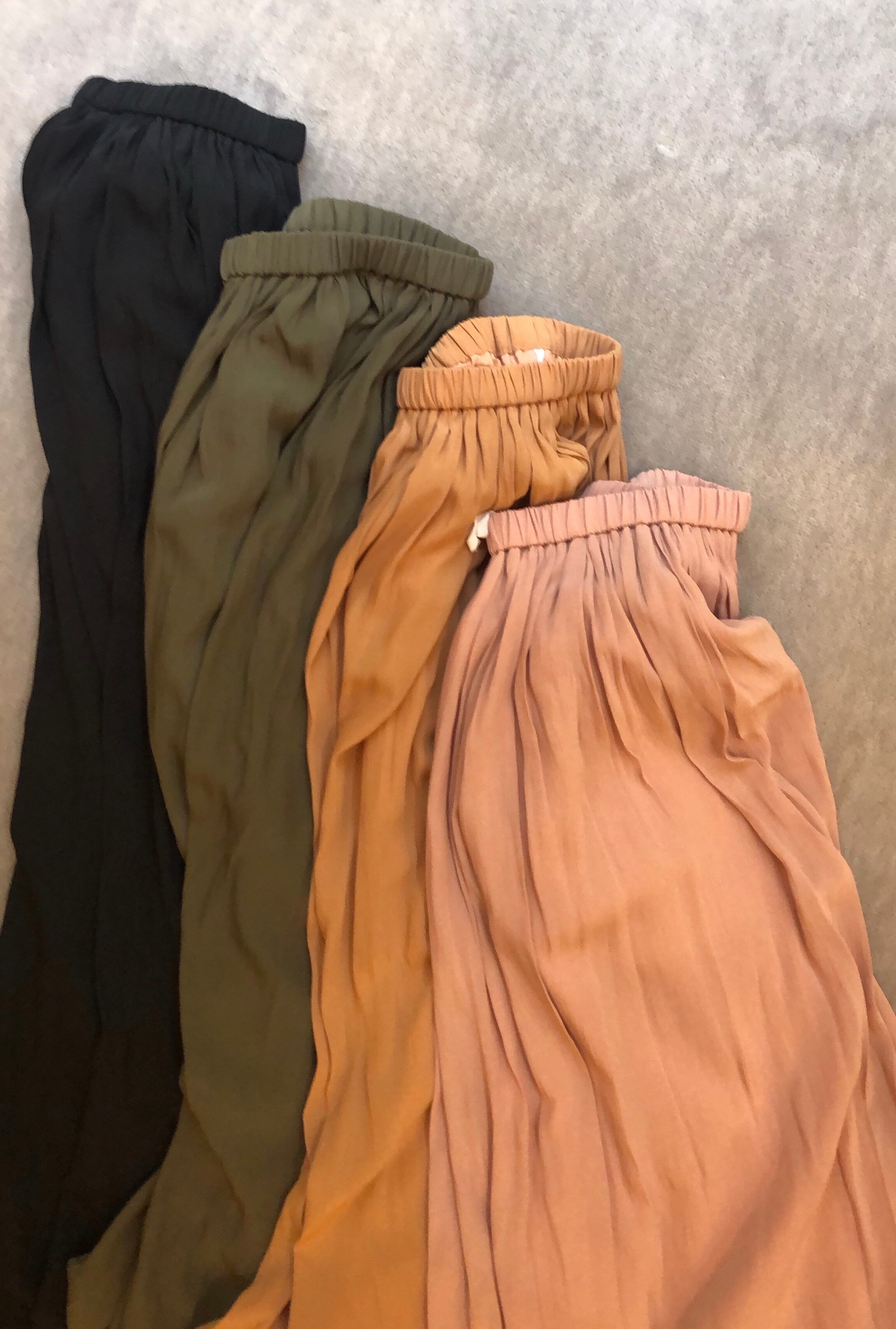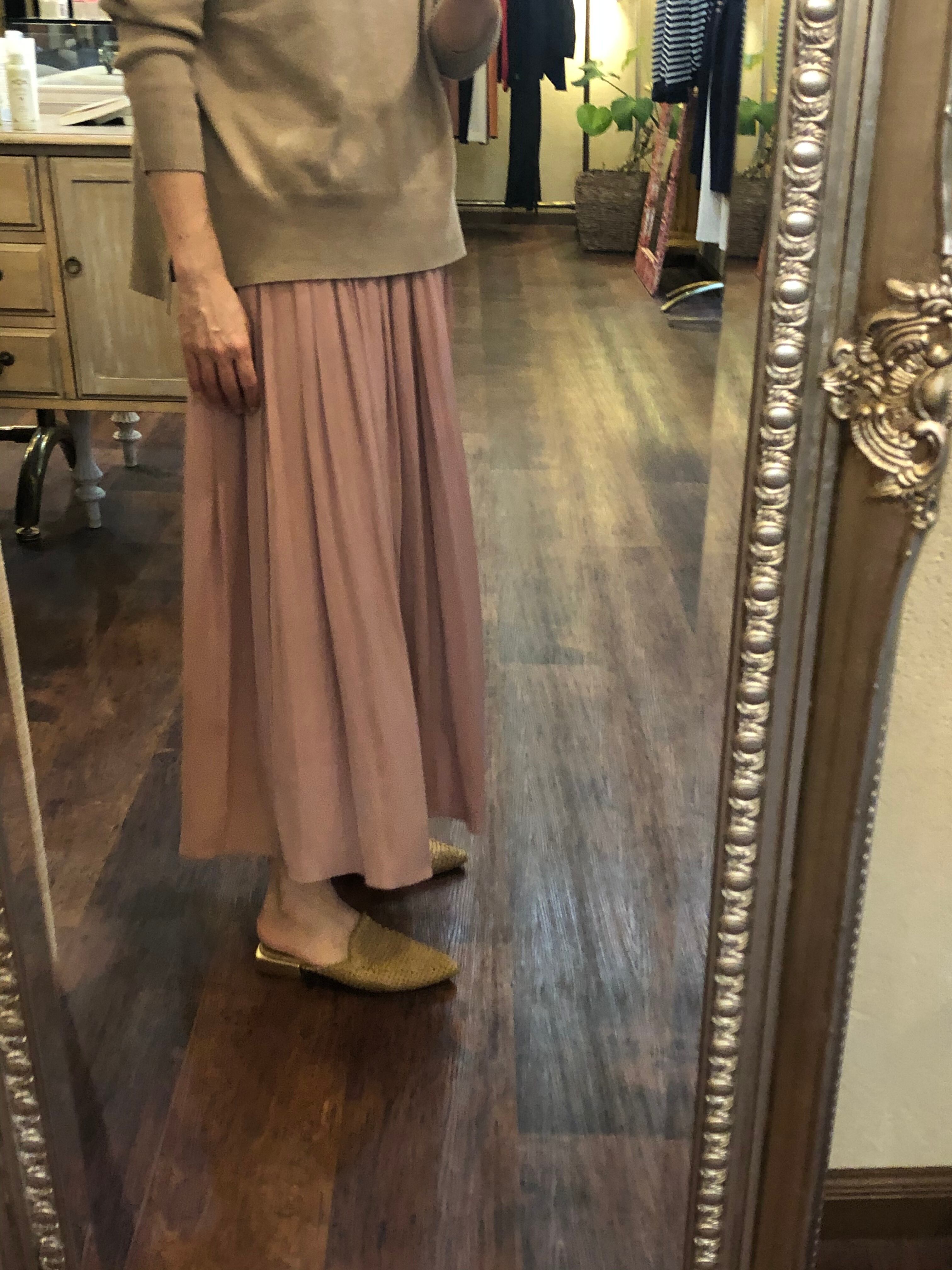 サテン地よりもしなやかでプリーツがかかったような楊柳生地。艶が抑えられ、緩い動きをする軽やかなスカートです