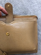 ファスナーのポケットには2つ折りのお財布が収納できます。