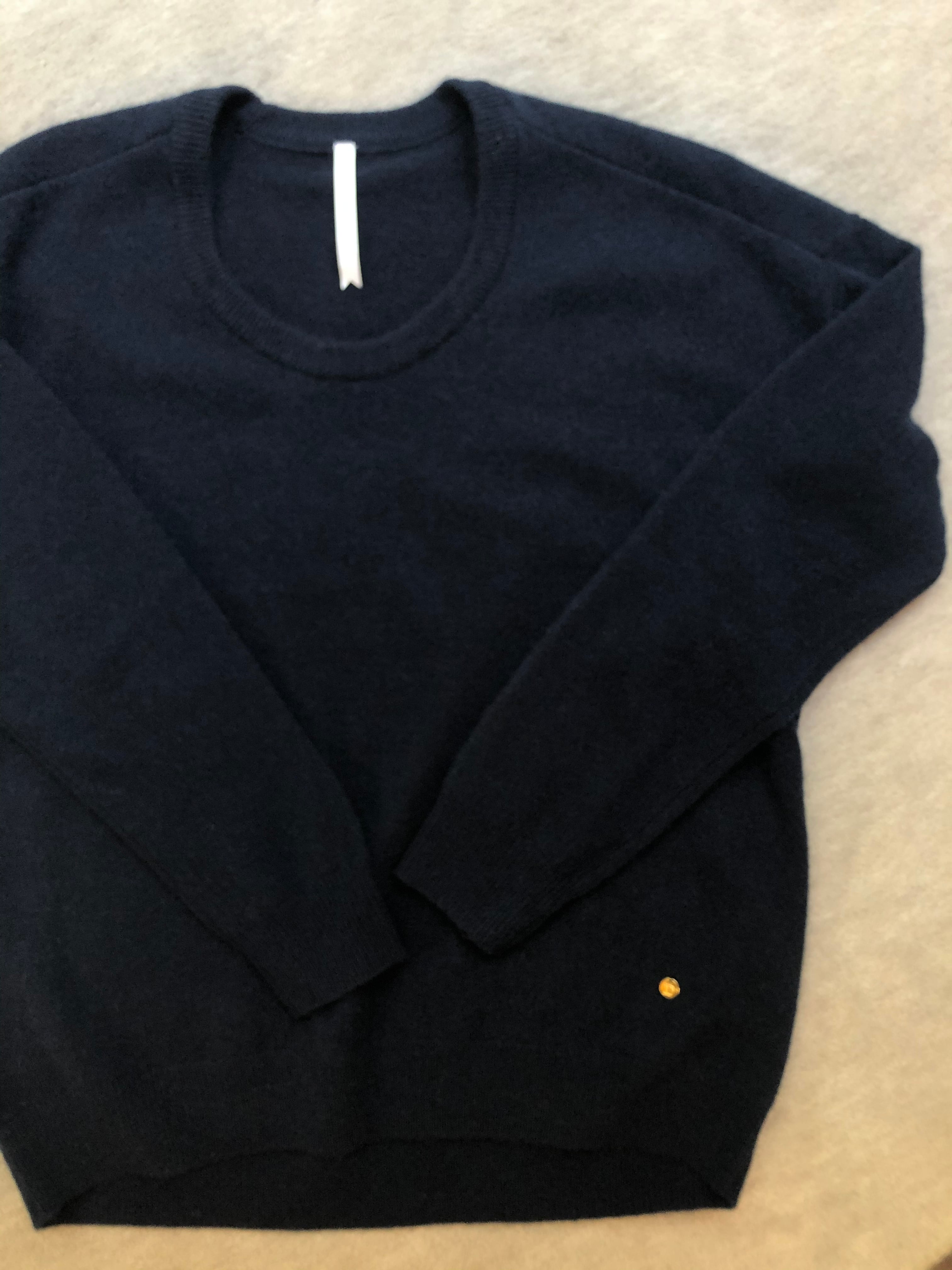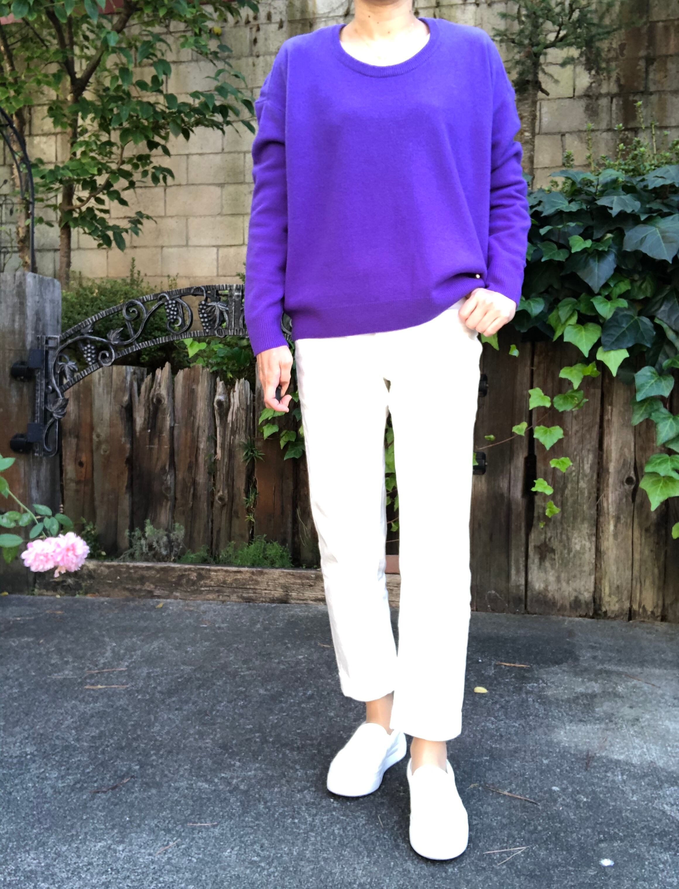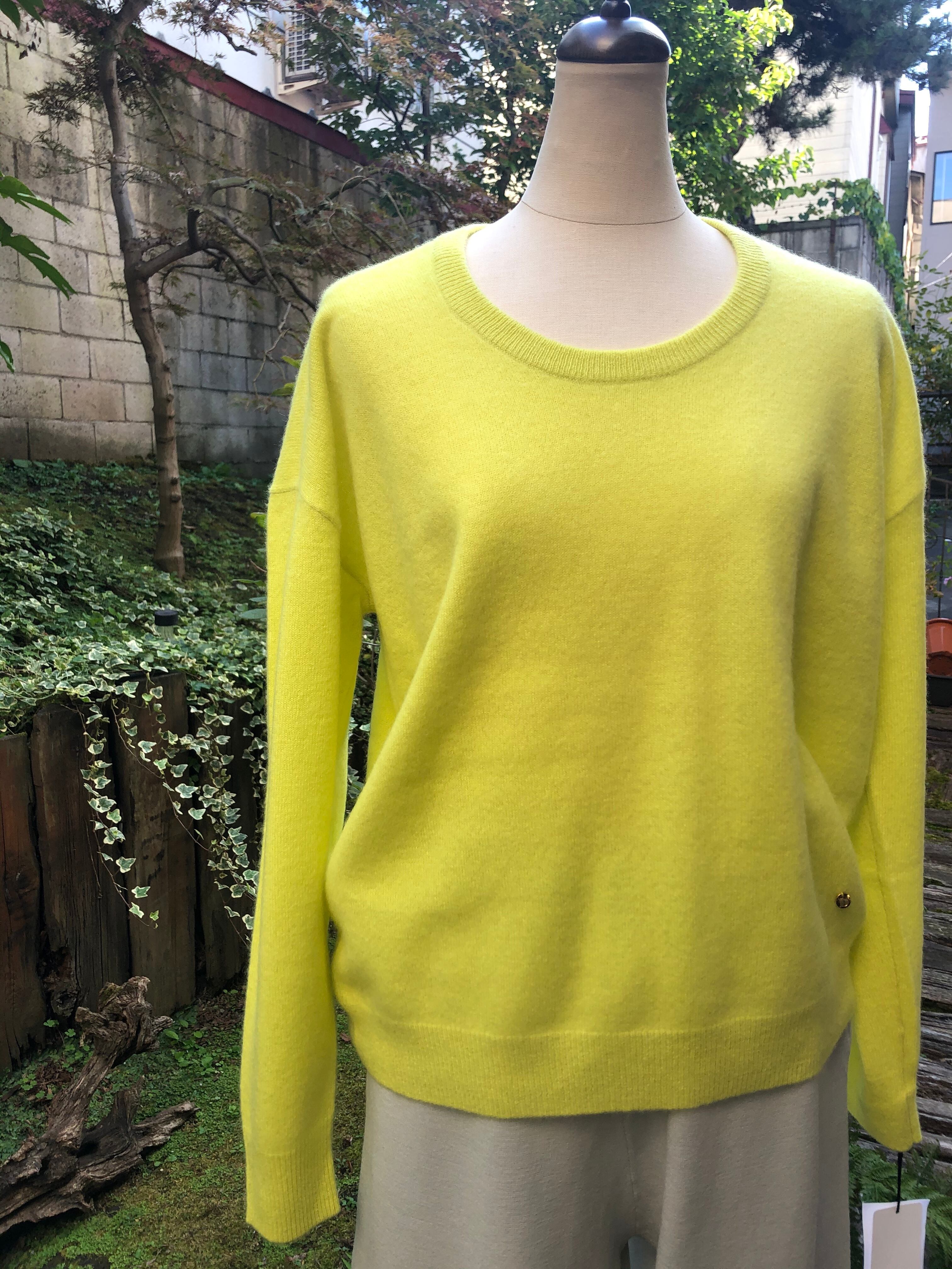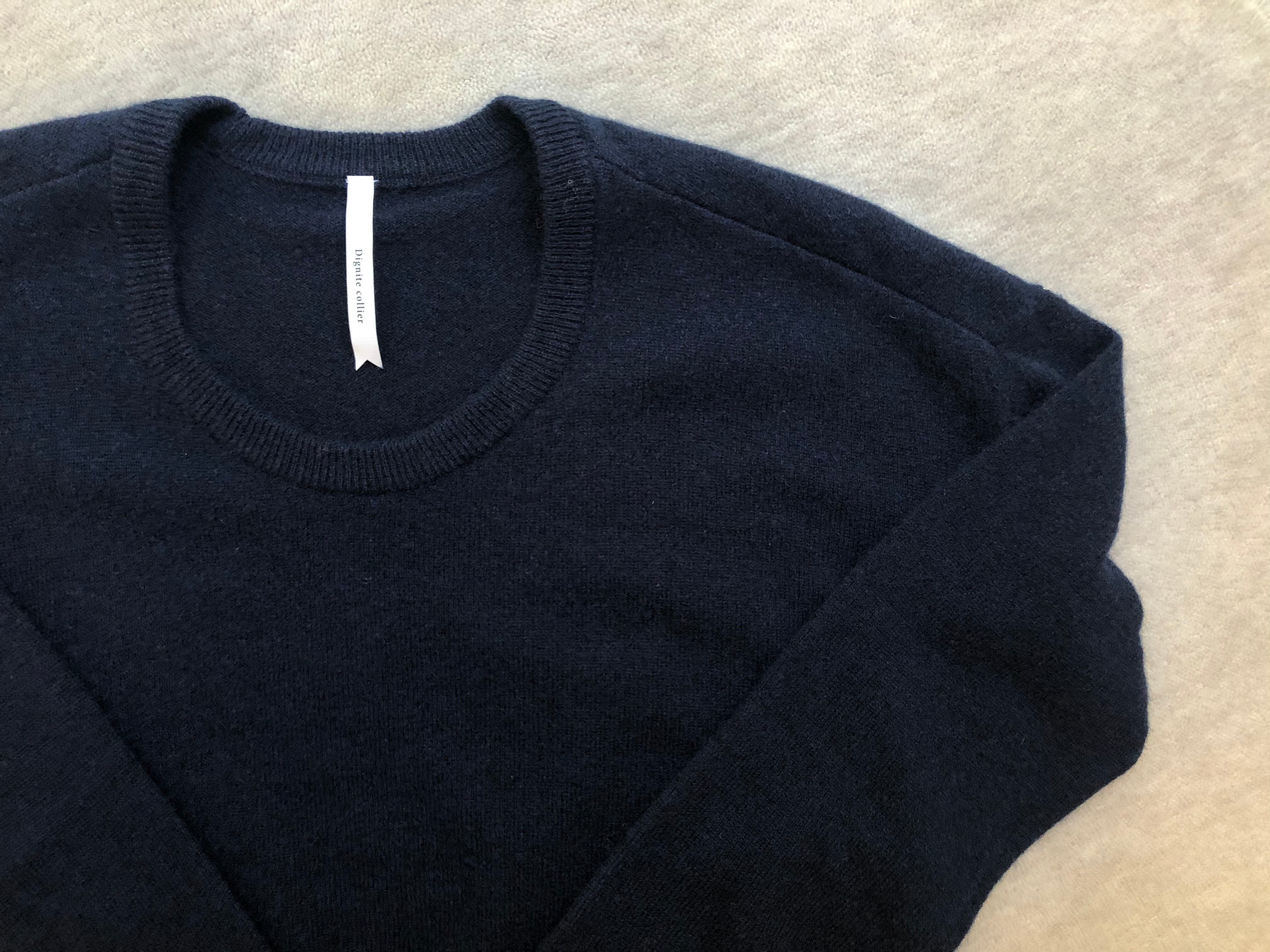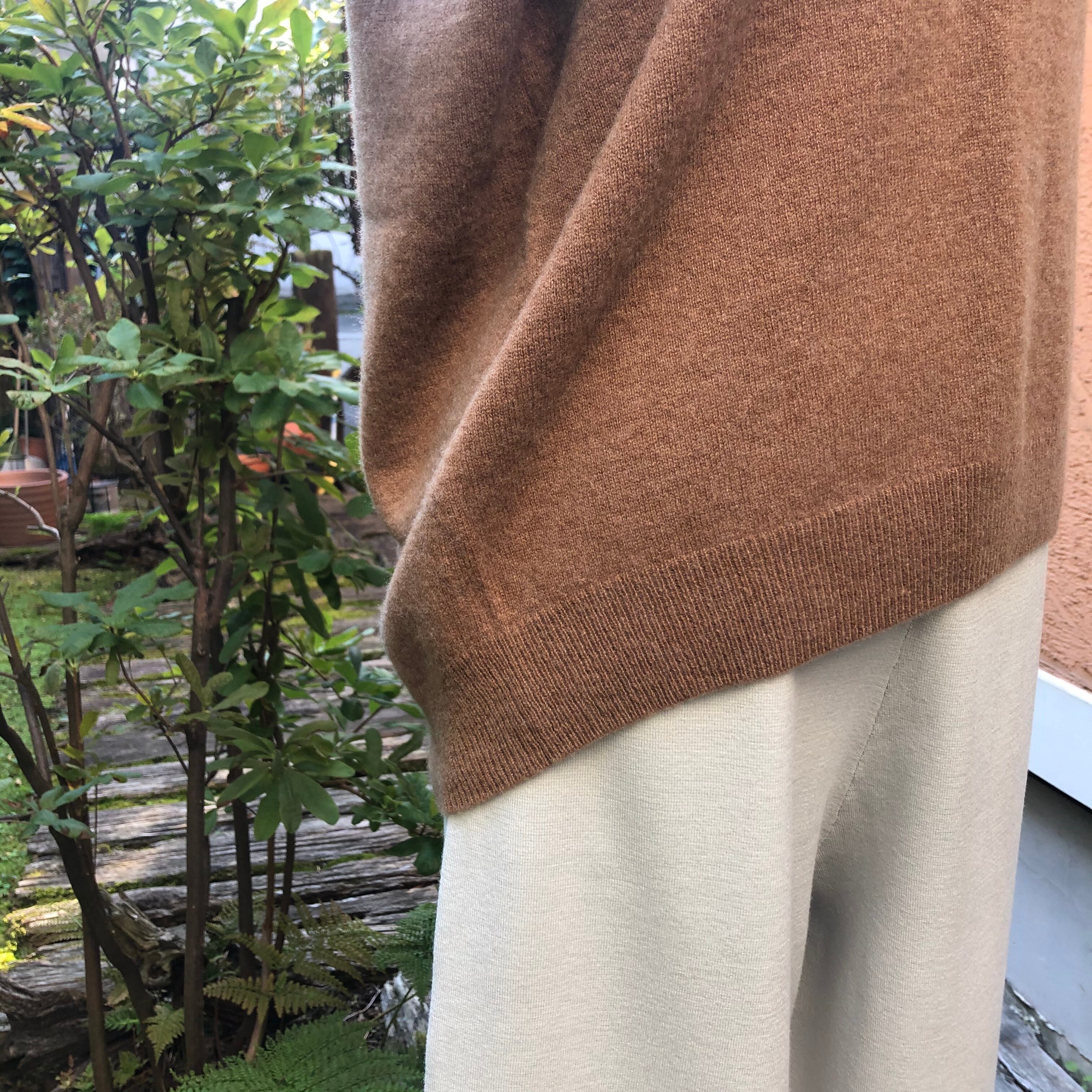 襟元は適度な開きとフィット感あり、前後差ある着丈はパンツにも、スカートにも合わせて頂けます。