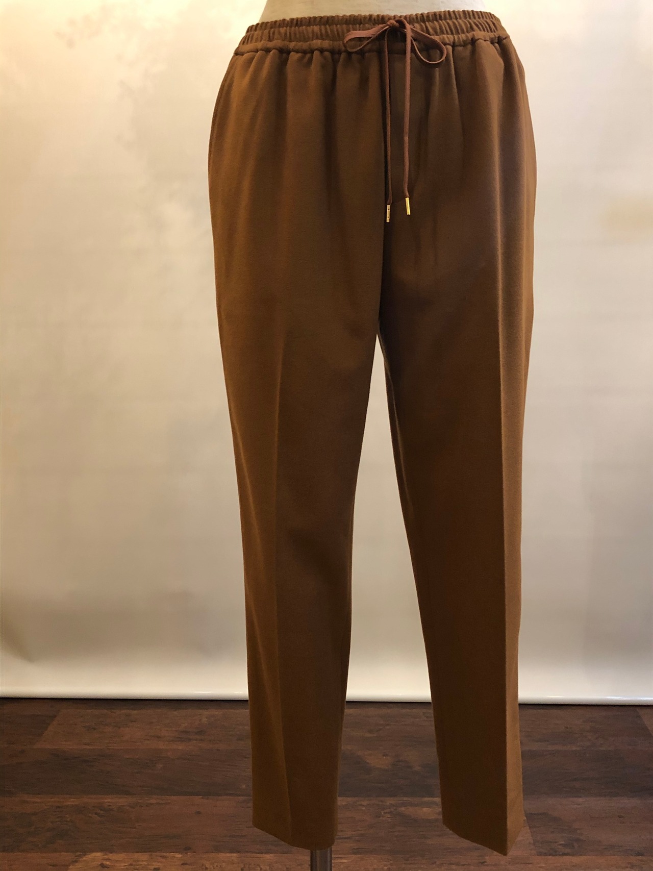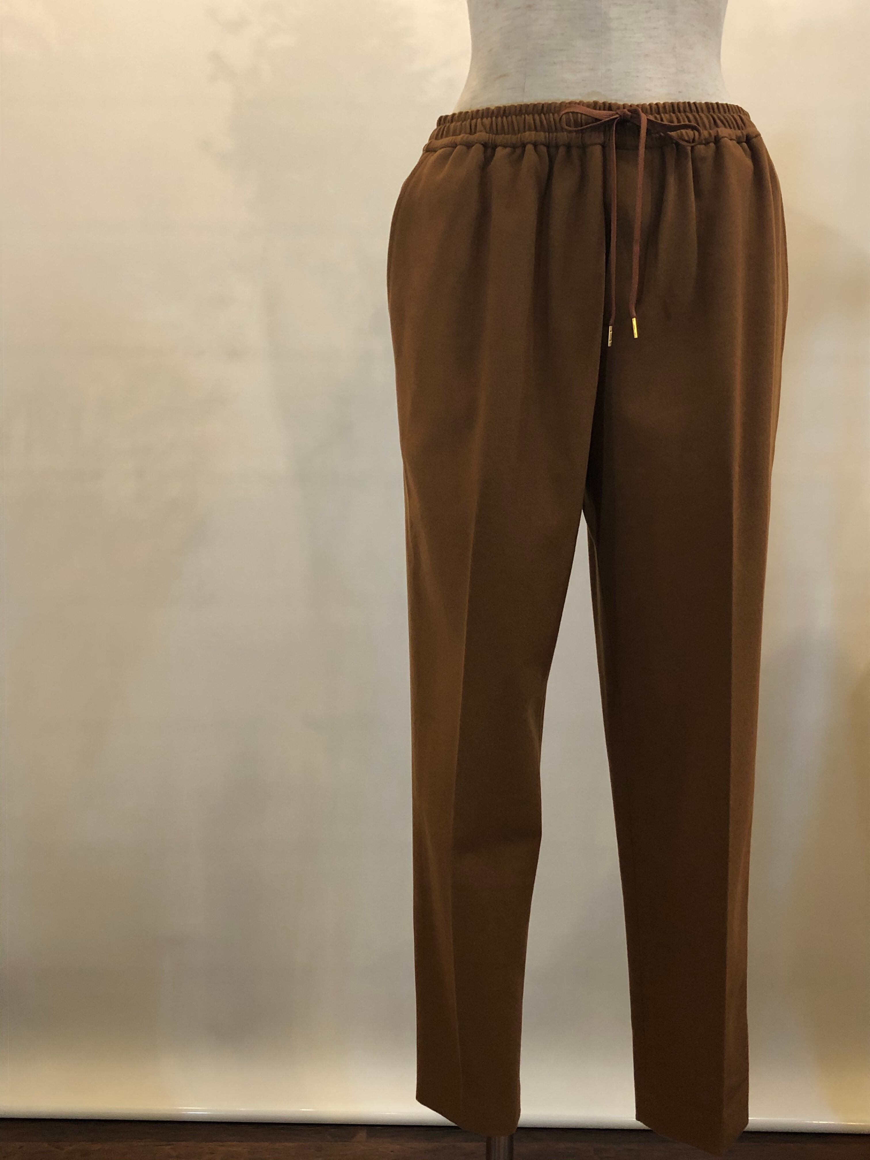 ウエストは総ゴム仕様。腿の辺りはゆったりと。ひざ下が細くなるデザインです。