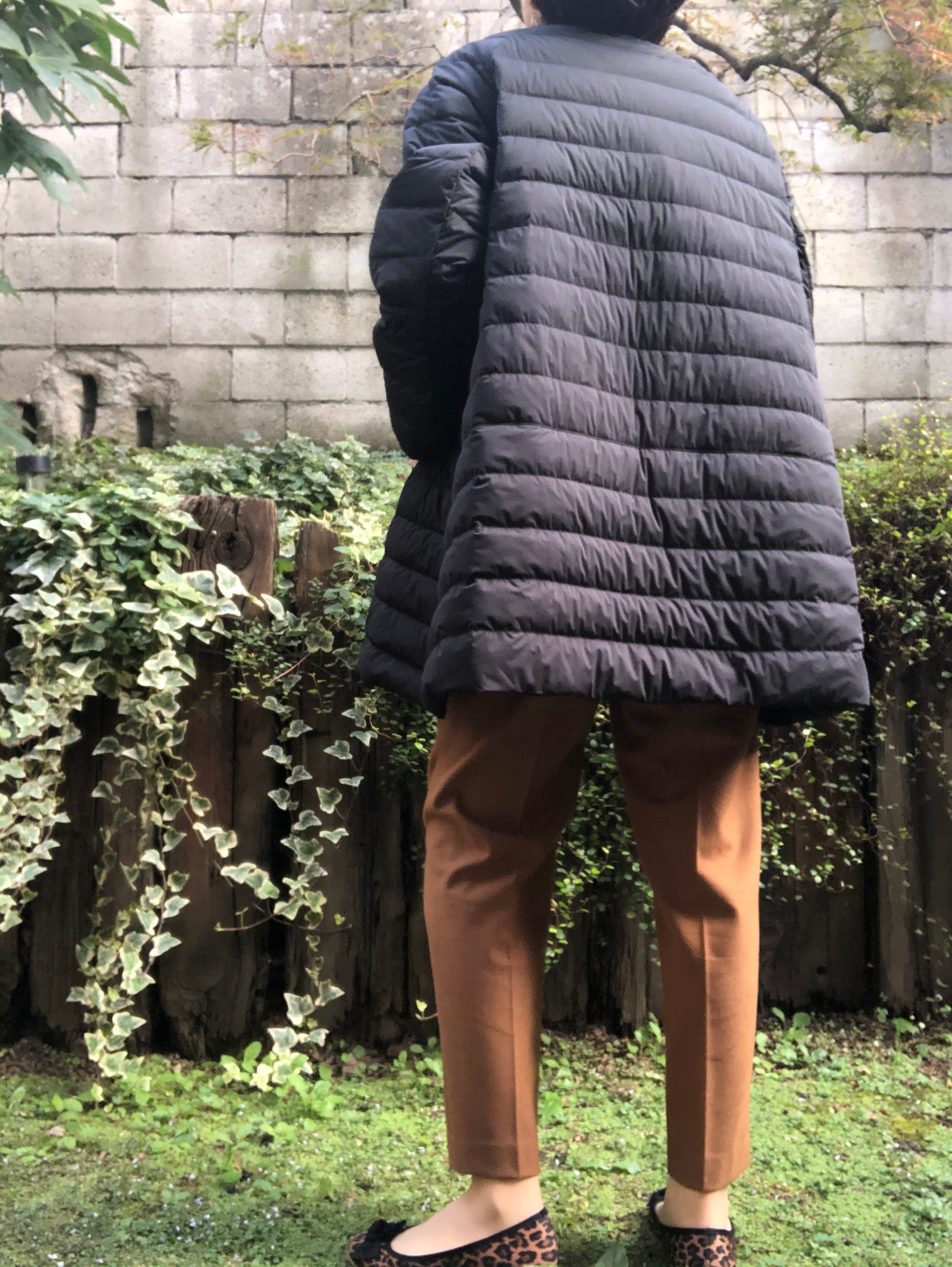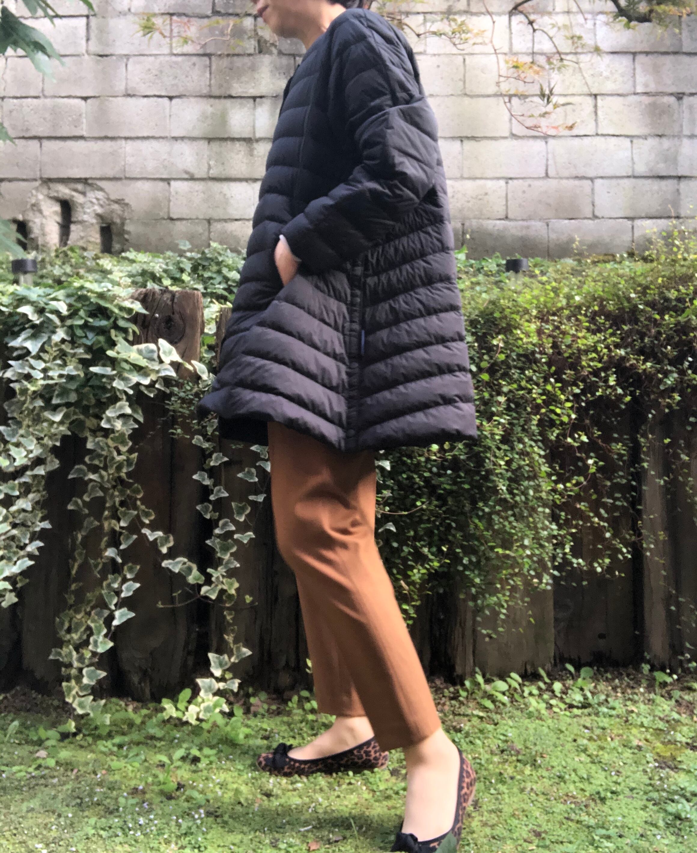 ハーフコートとしては驚くほどの薄さと軽さ。腰回りまでしっかり防寒します。