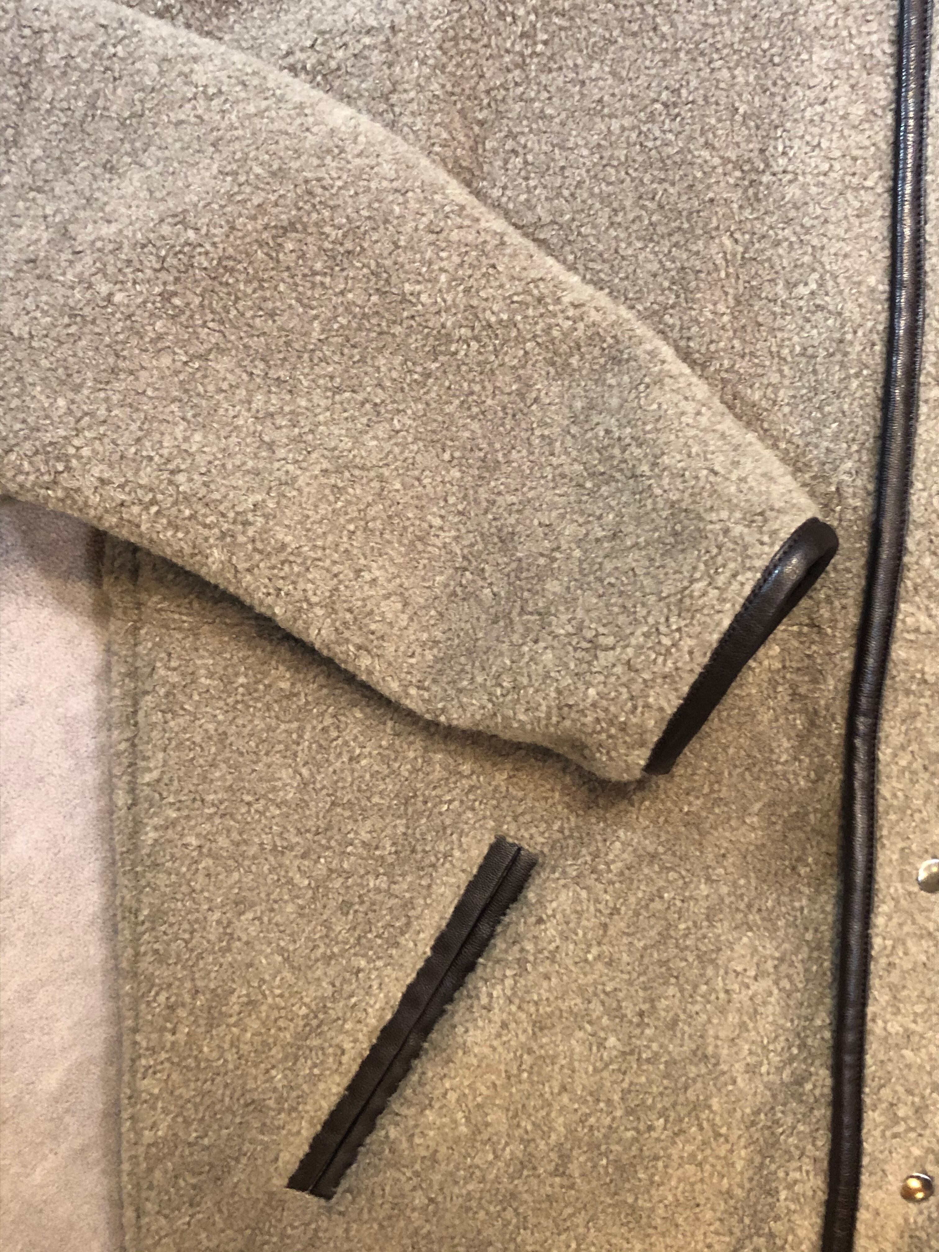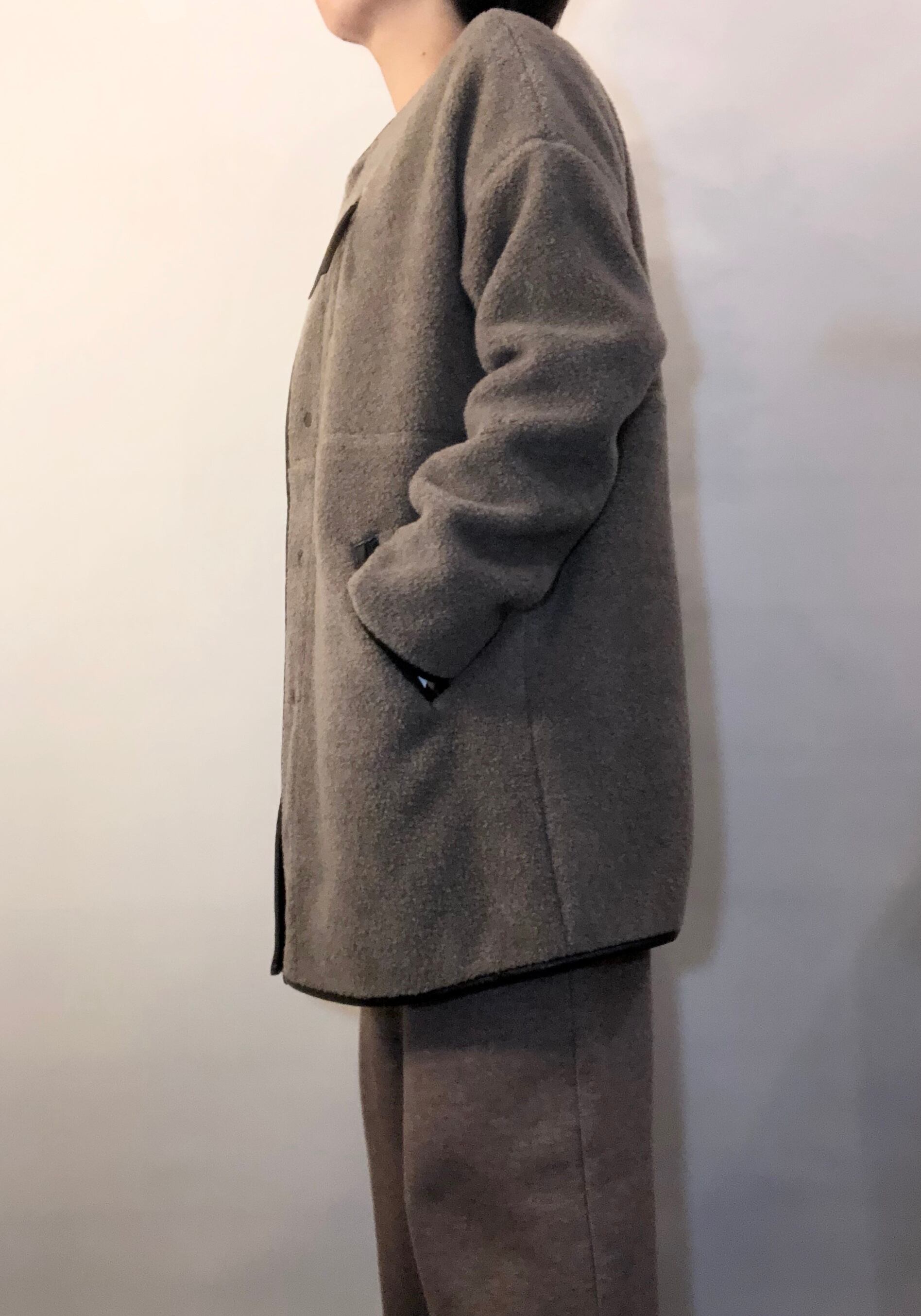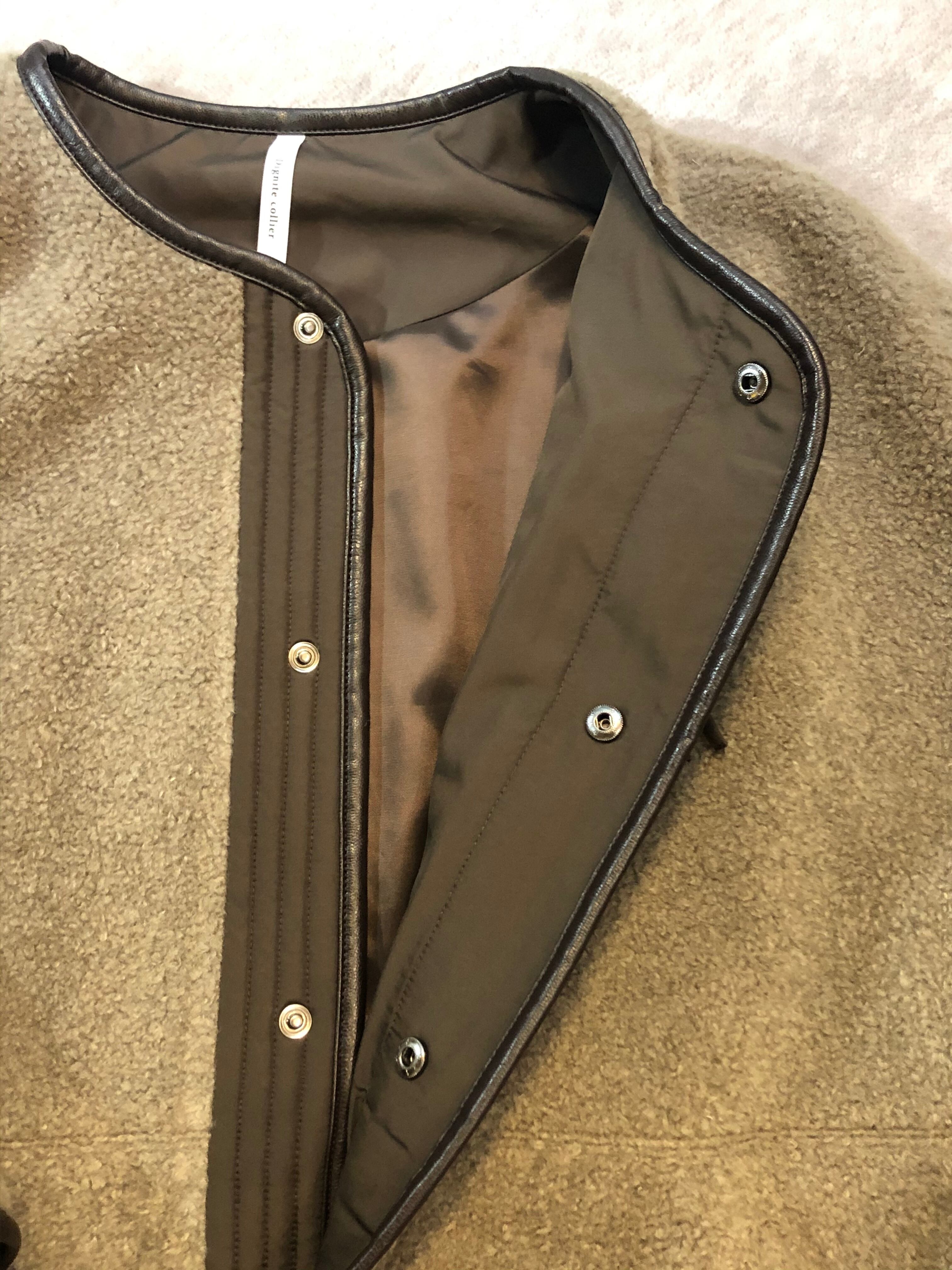 総裏地が付きますので、袖を通した際も滑りが良く重ね着もしやすく、サイズ感もゆったりサイズ。表面はモコモコしてますが、厚手ではないのでスッキリと着て頂けます。