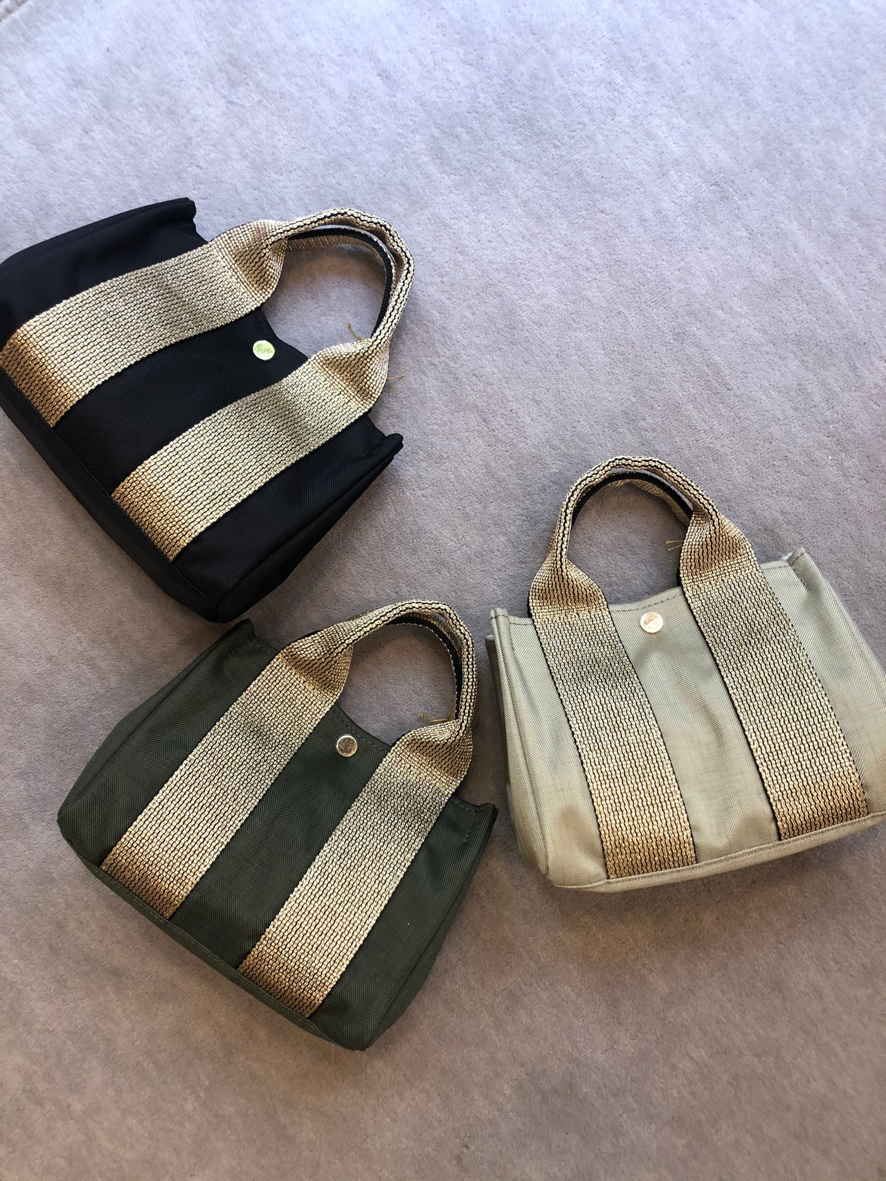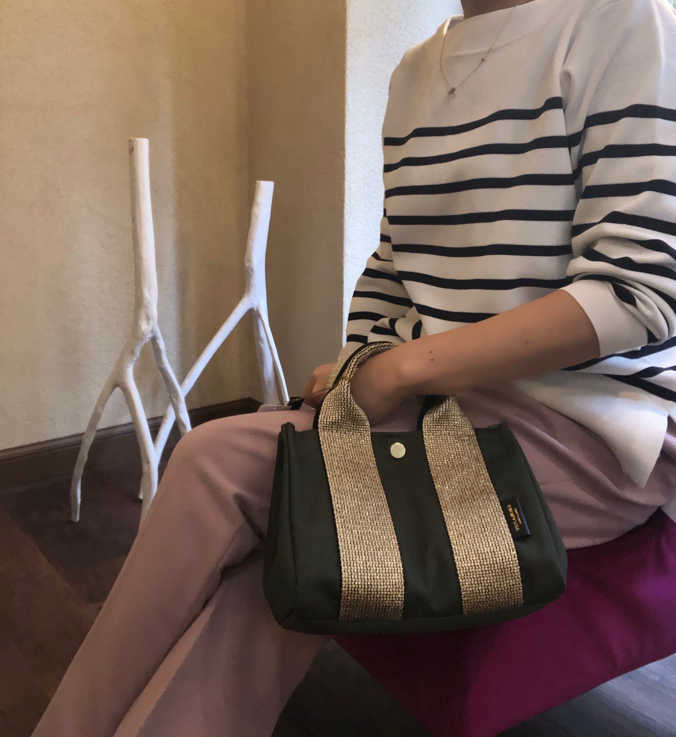 ムラ感のある立体的なナイロン素材にラメテープが女性らしい雰囲気で、カジュアルにお使い頂けるbagです。