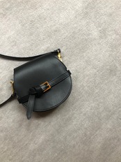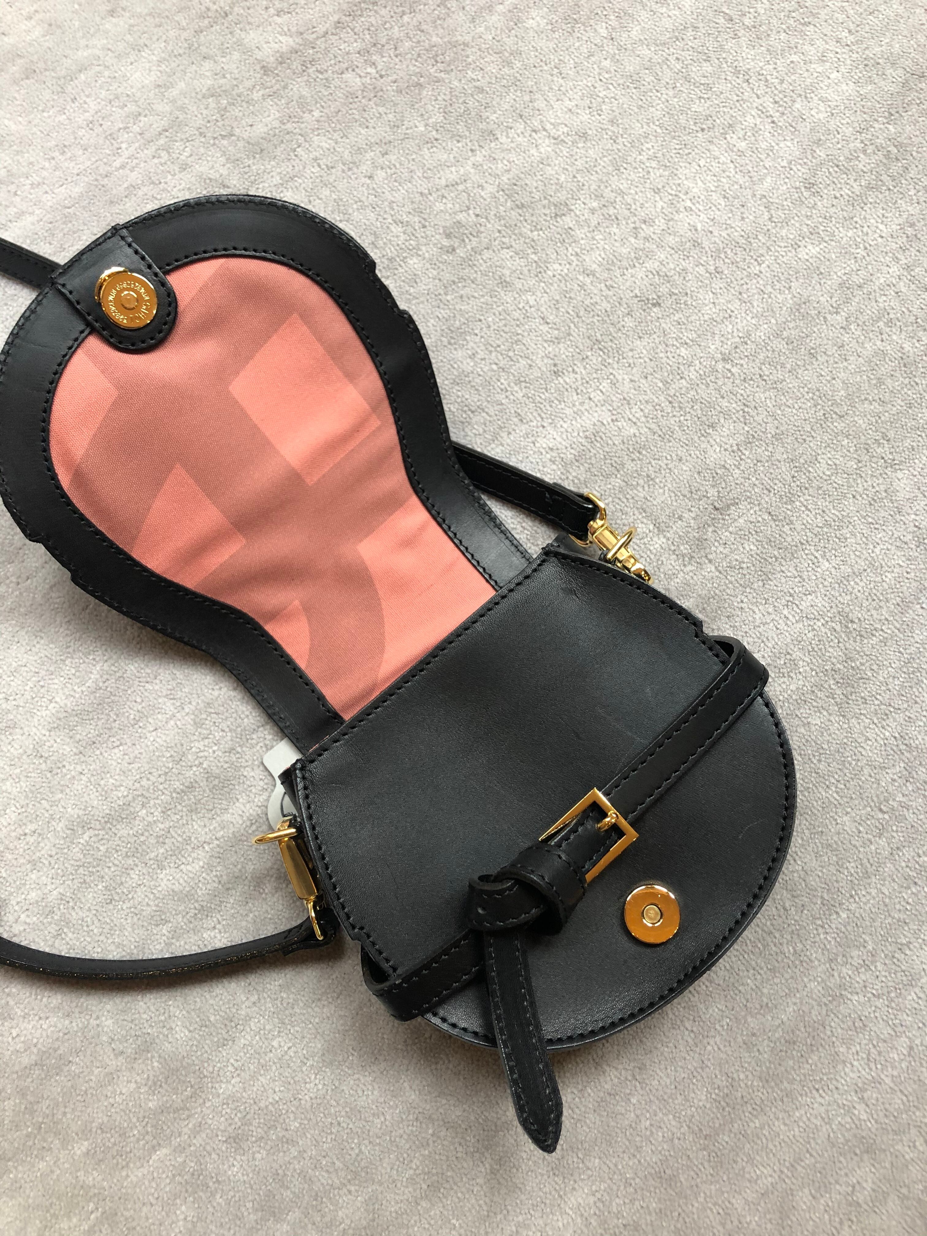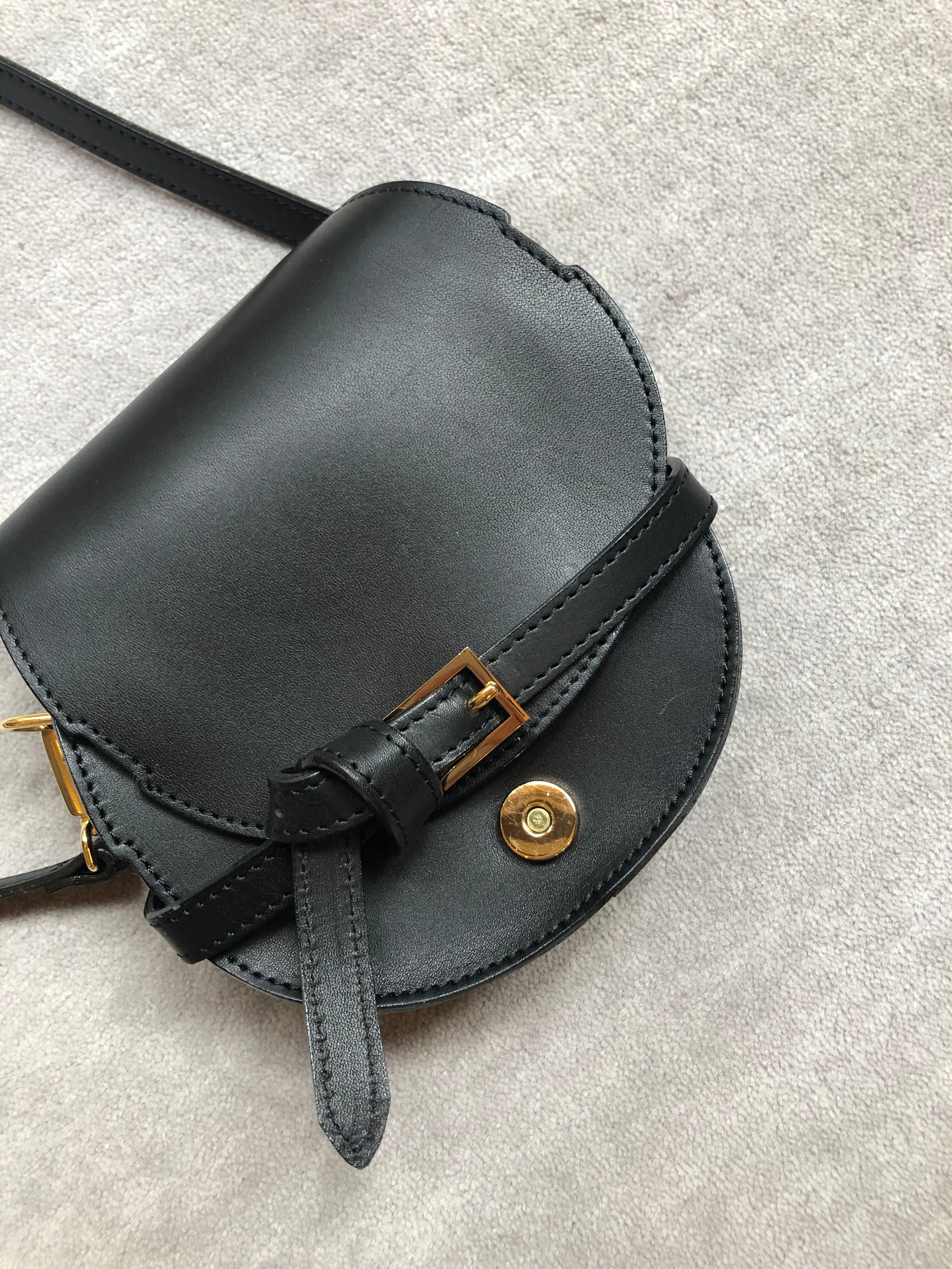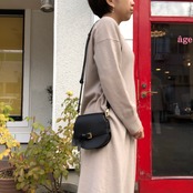 後方から伸びたベルトでフラップを包み込むようなデザインポシェット。背面にはベルトループがあり、お手持ちのベルトを通すとウエストバックになります。
