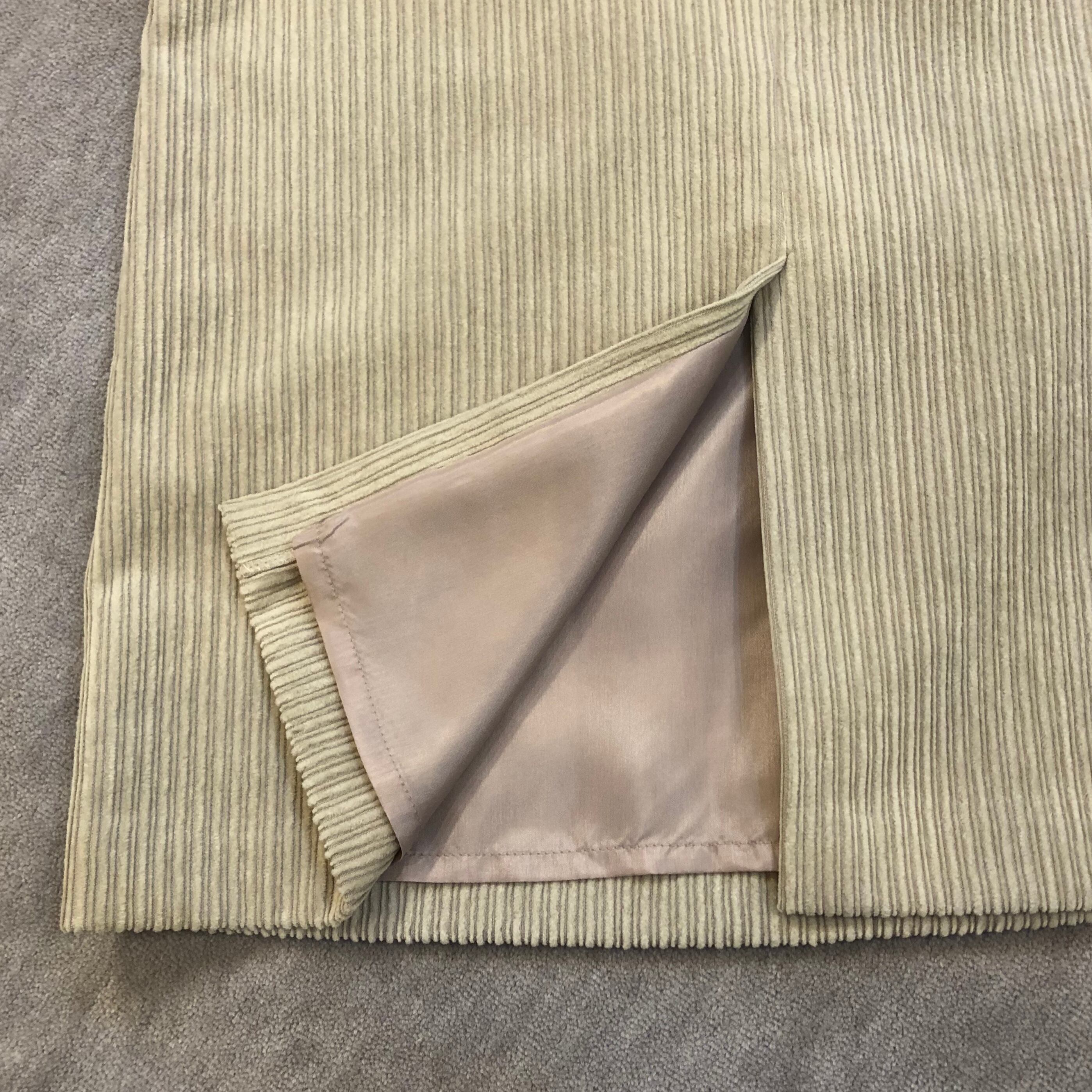 太ピッチのミモレ丈スカート。カジュアルになりがちなコーデュロイも明るいカラーできれいめな印象に。