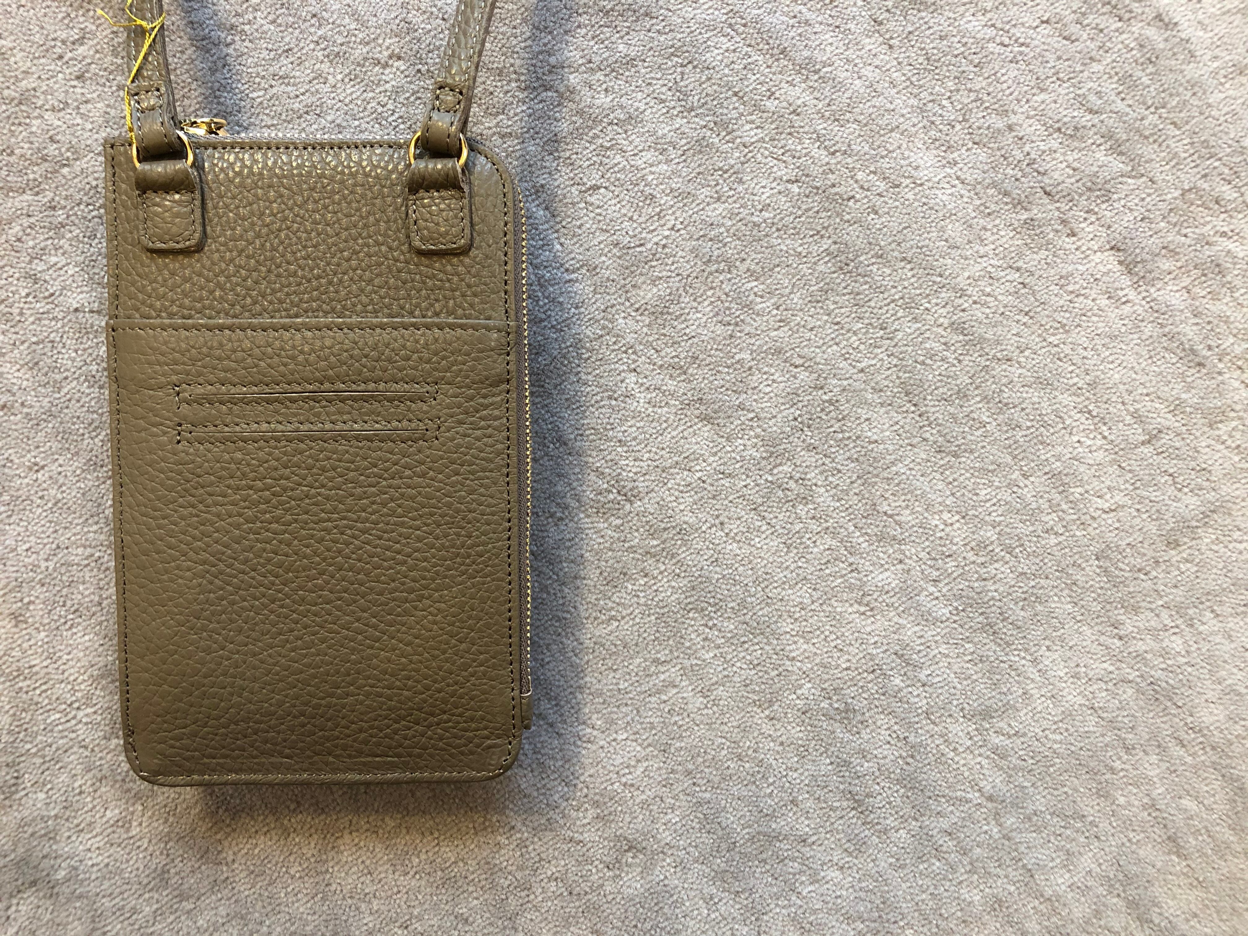 ミニマムな荷物でお出かけ出来るスマートフォンポシェット。内側にはお財布機能が備わっているので、お札とコインケース、カードは4枚入り