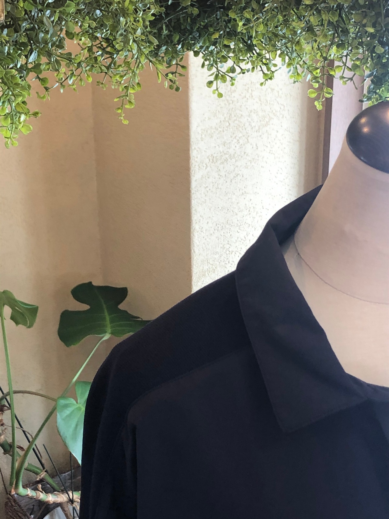 フロント釦を開閉して着用となりますが、釦は比翼仕立てで隠れている仕様に