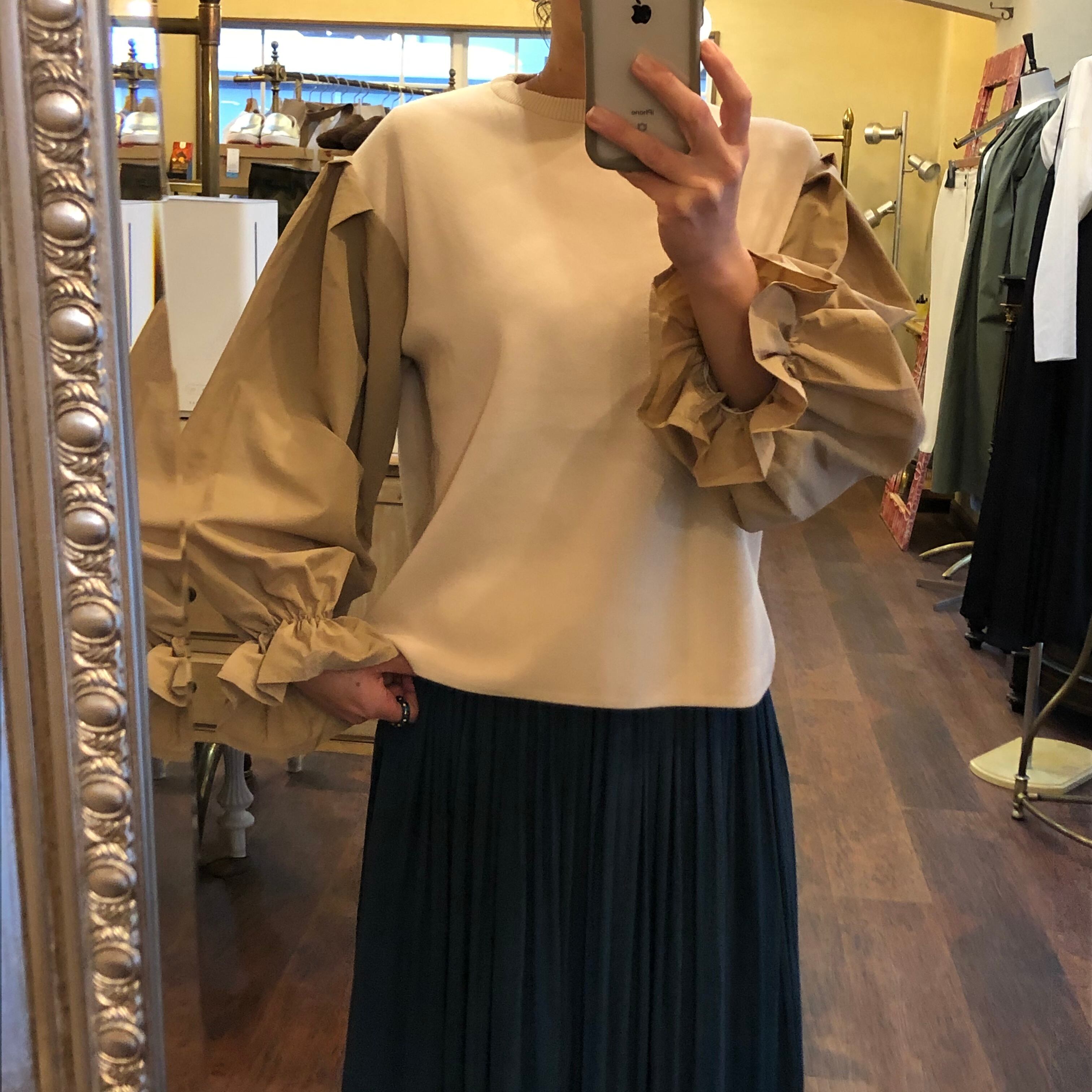 アルドリッジ ニット×布帛ボリューム袖