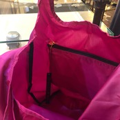 軽量で強度のあるリップストップナイロンのグローサリートート。ブランドロゴが目を引くデザインで、内ポケットになる収納ポーチ付きなので