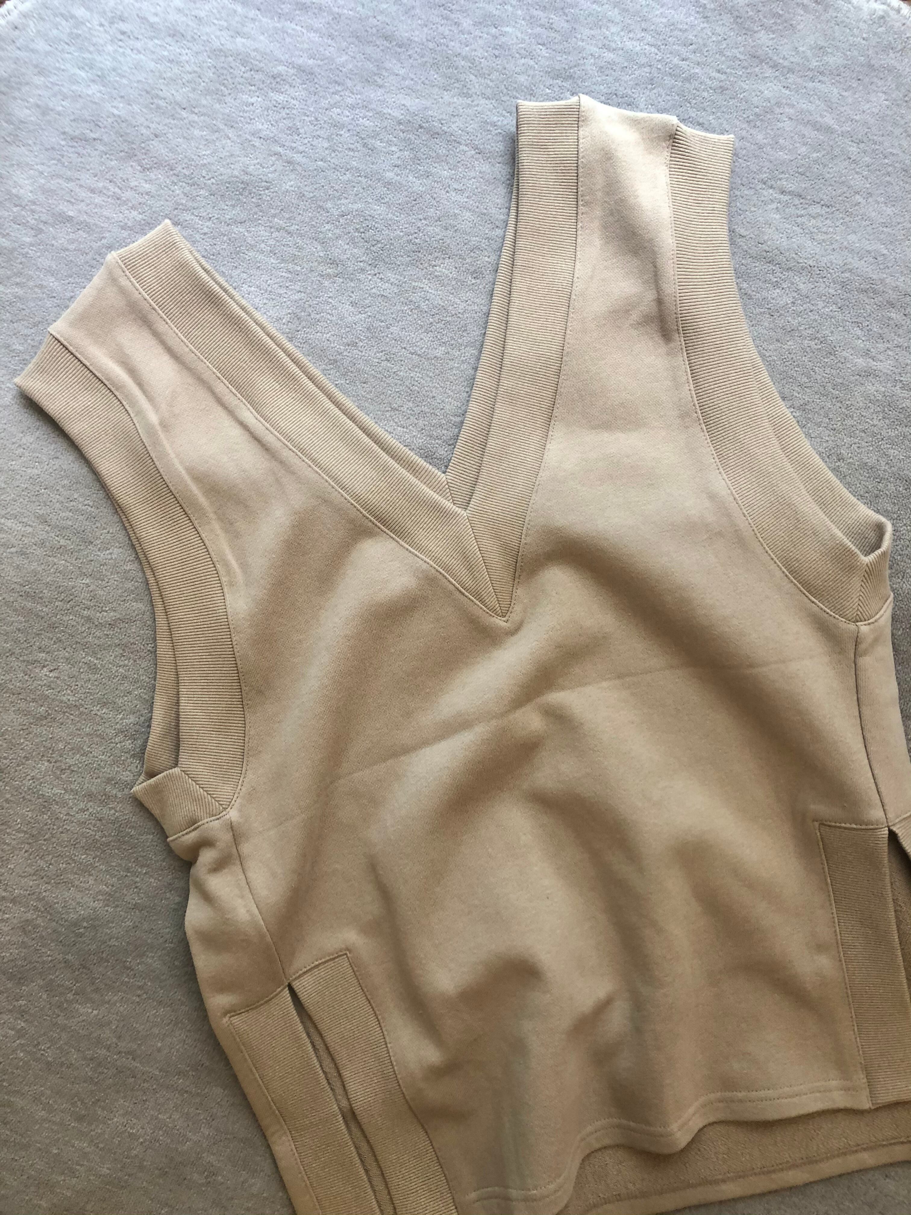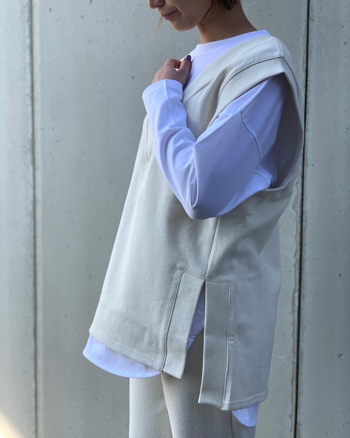 インナーにはカットソーやブラウスに合わせて、レイヤードスタイルを楽しんで頂けます