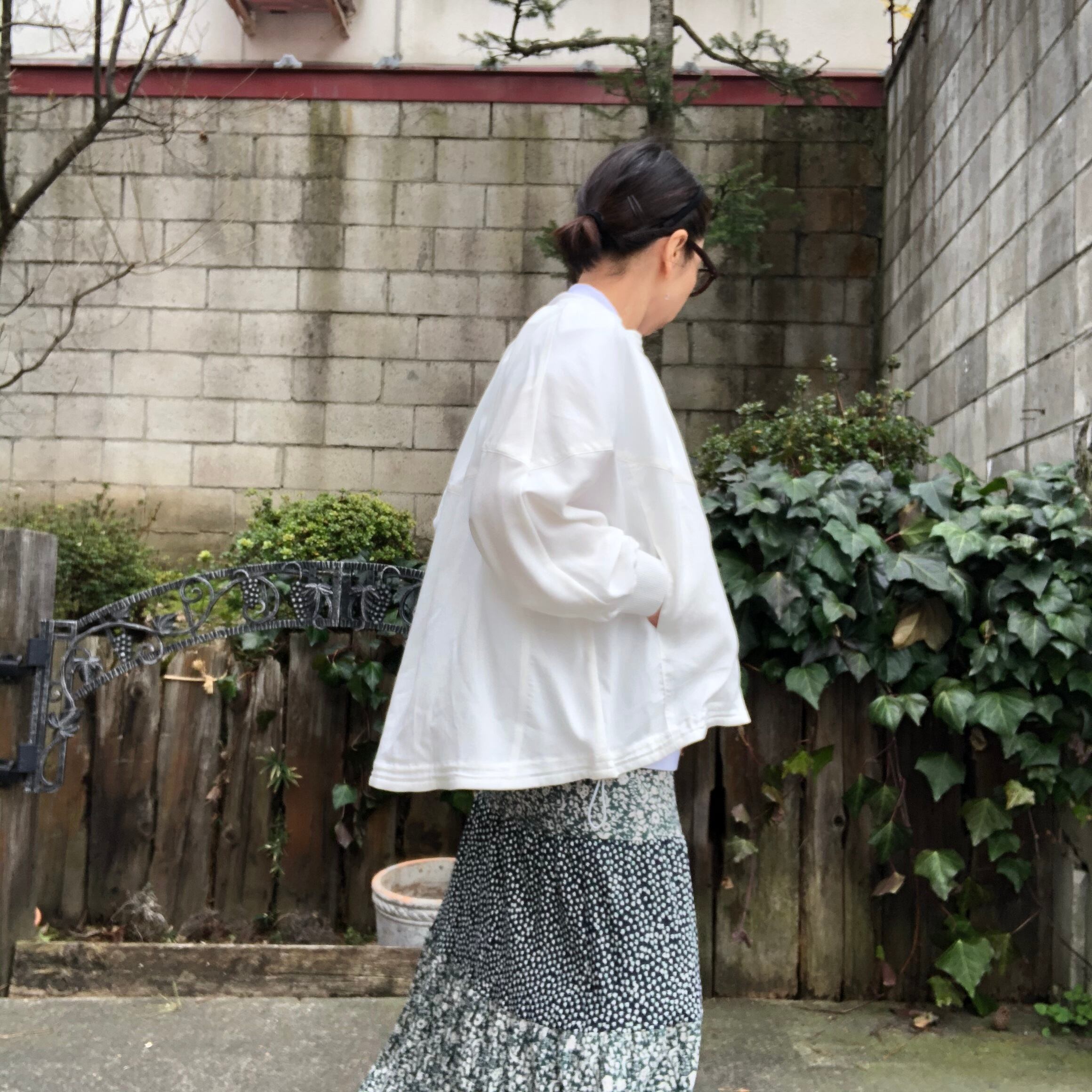 ドルマンスリーブの形は、インにTシャツを合わせてもアームが嵩張らず