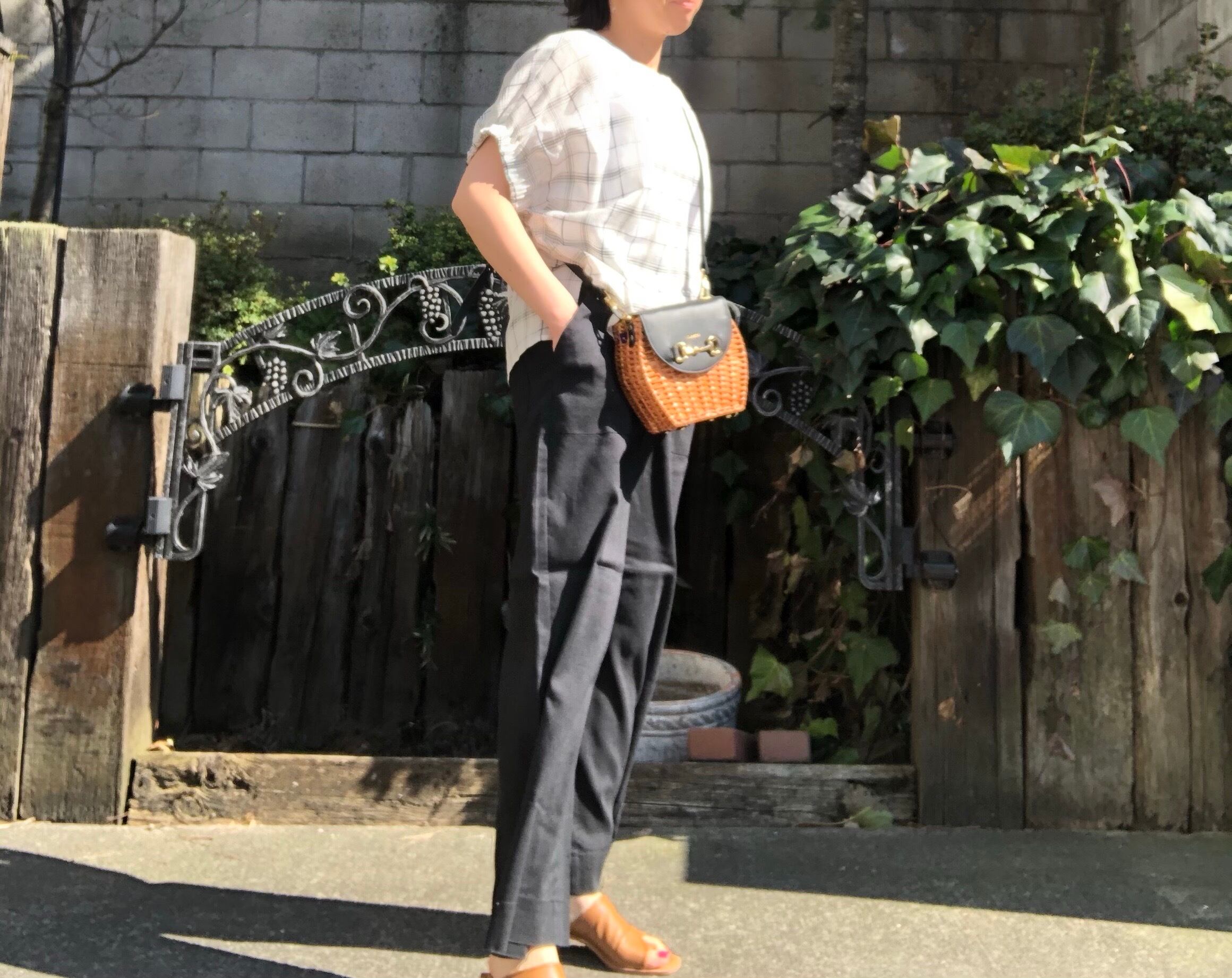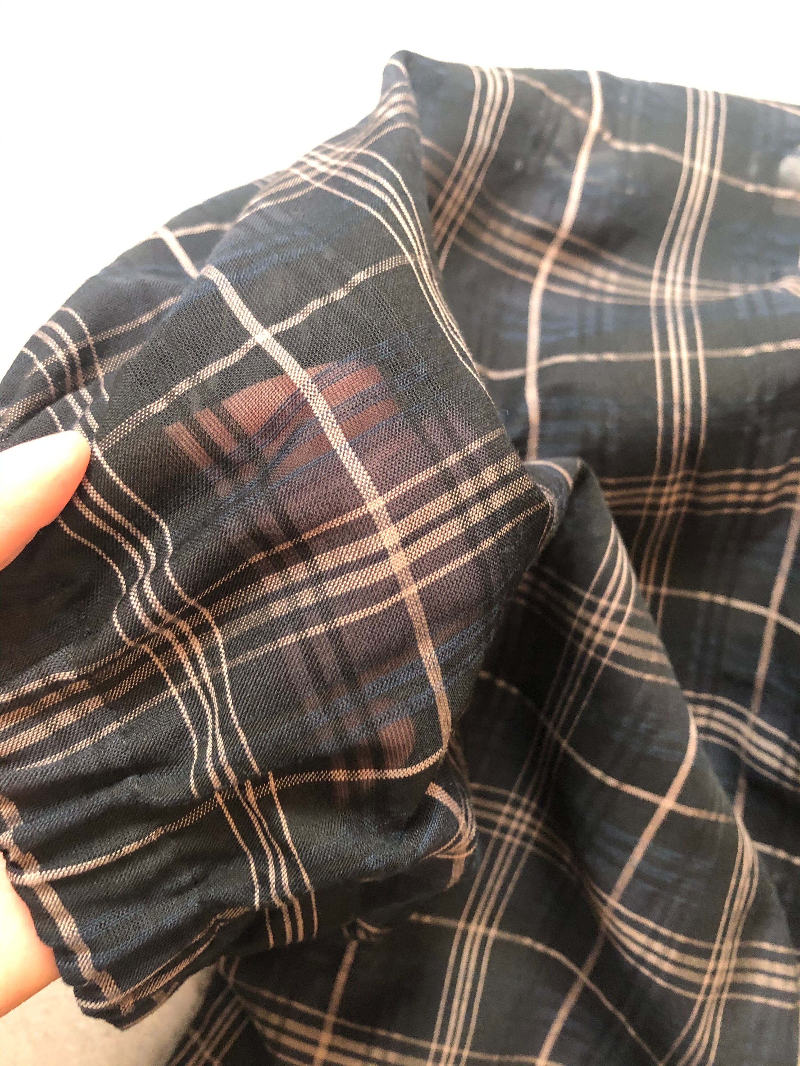 ほどよい透けのあるチェック柄プルオーバーブラウス