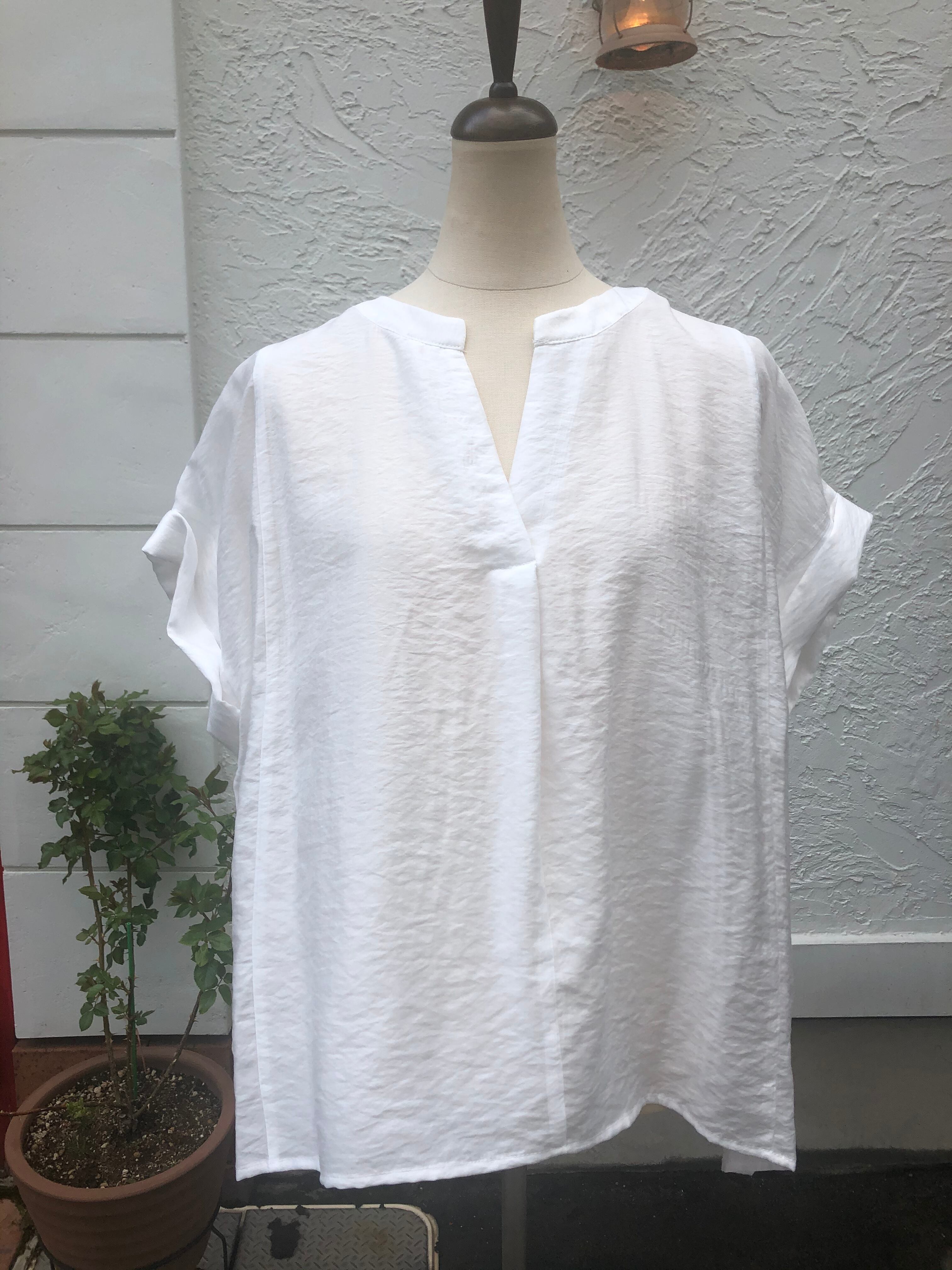 後ろ丈長く揺れ動き、盛夏にも涼しく着て頂けるトップスです