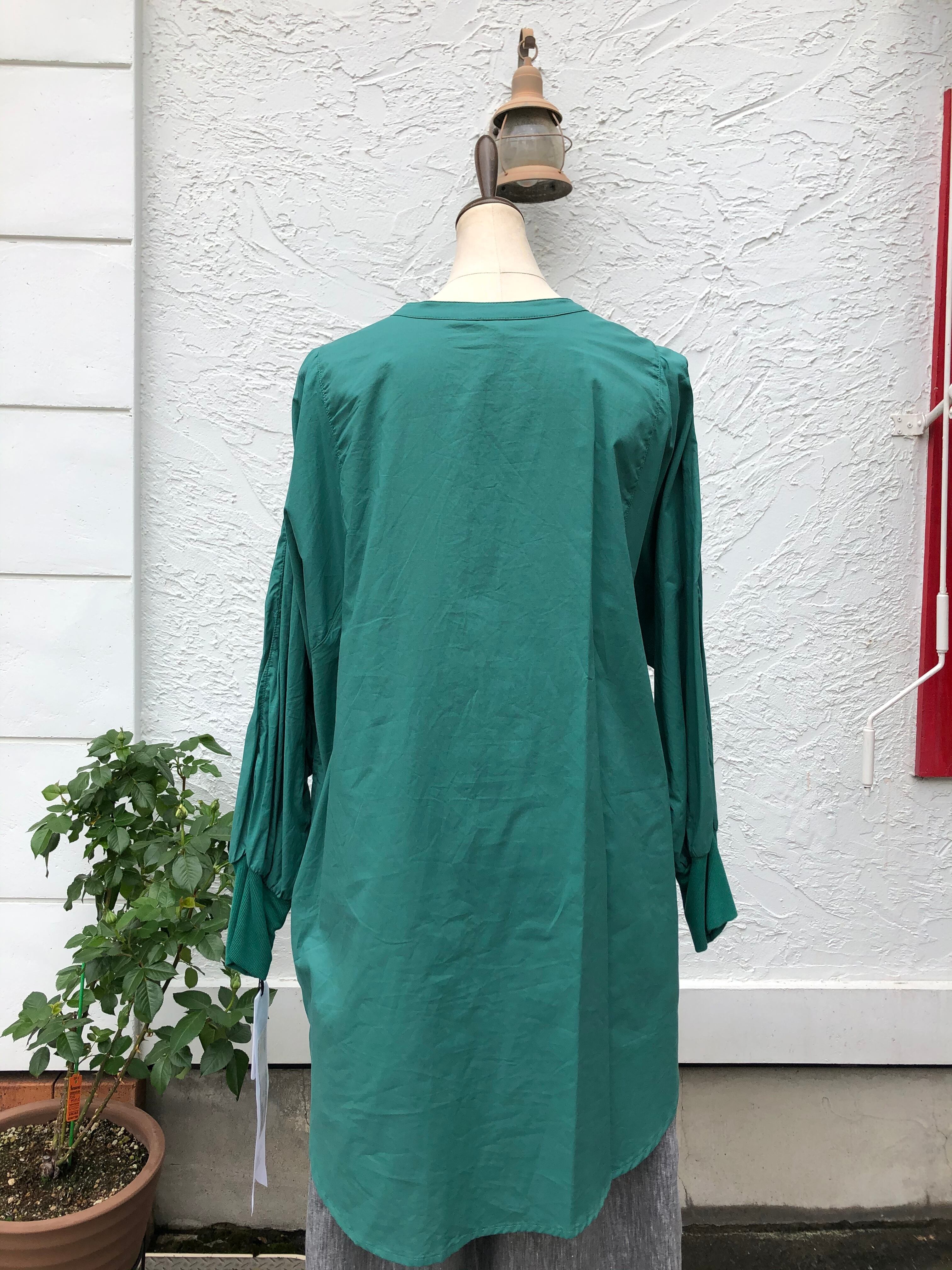 袖口がリブ仕様になり、たくし上げると自然とボリュームスリーブが出来上がります