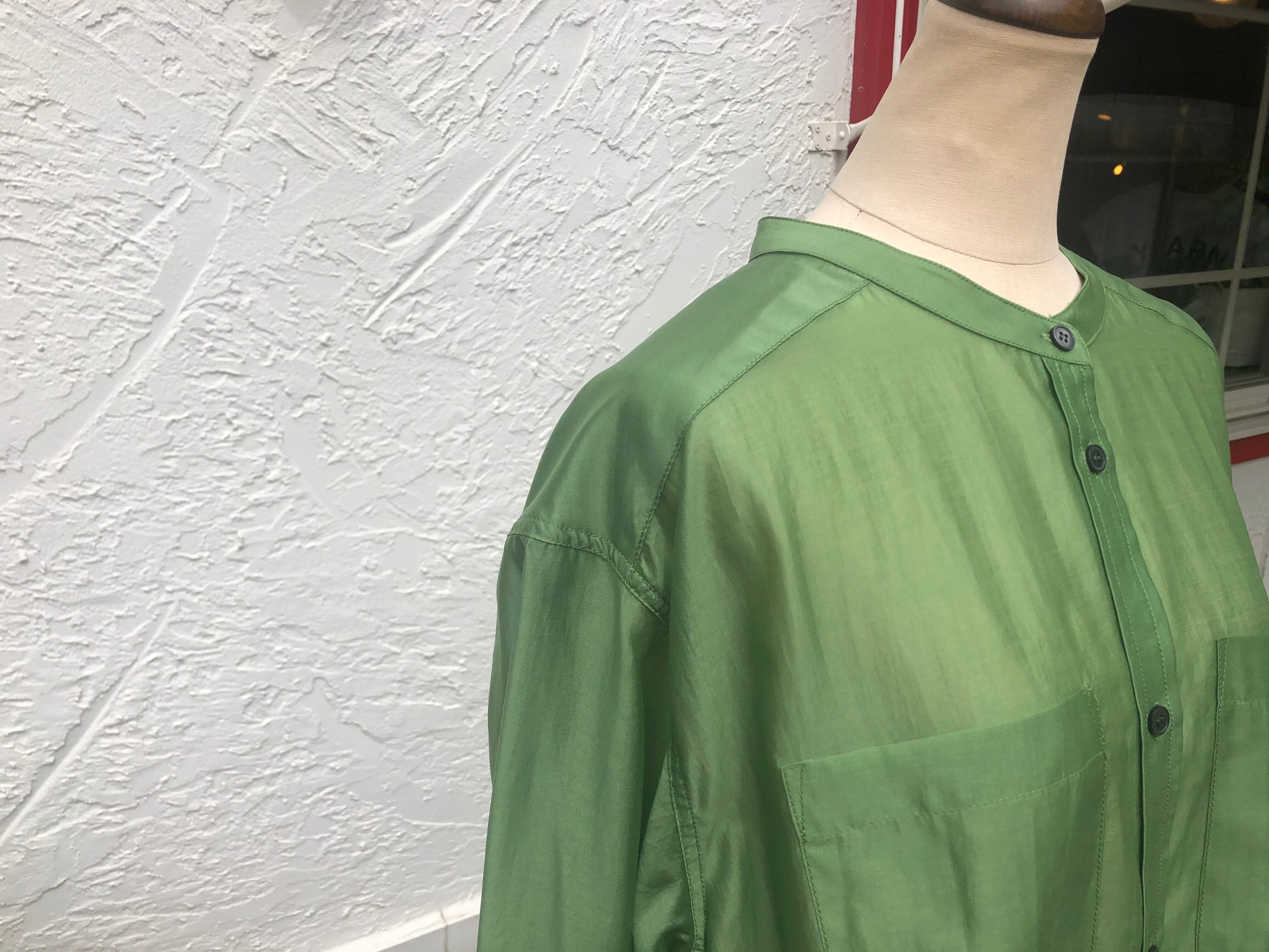 適度なツヤがあり、しなやかな風合いの生地はラフ過ぎず、夏にも涼しく着て頂けるシャツです