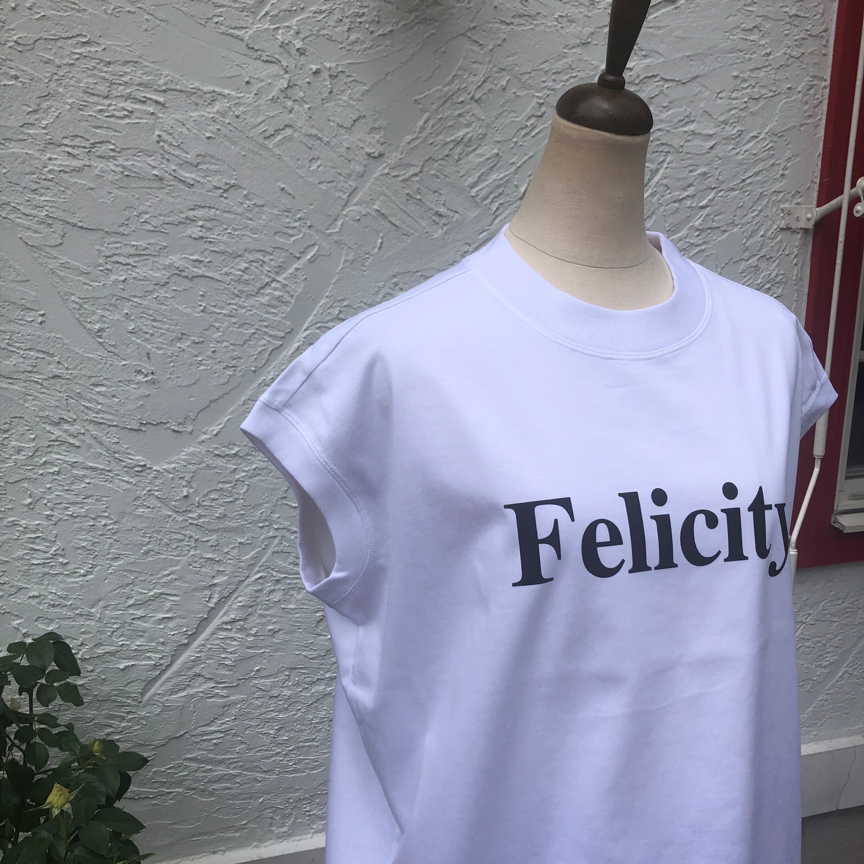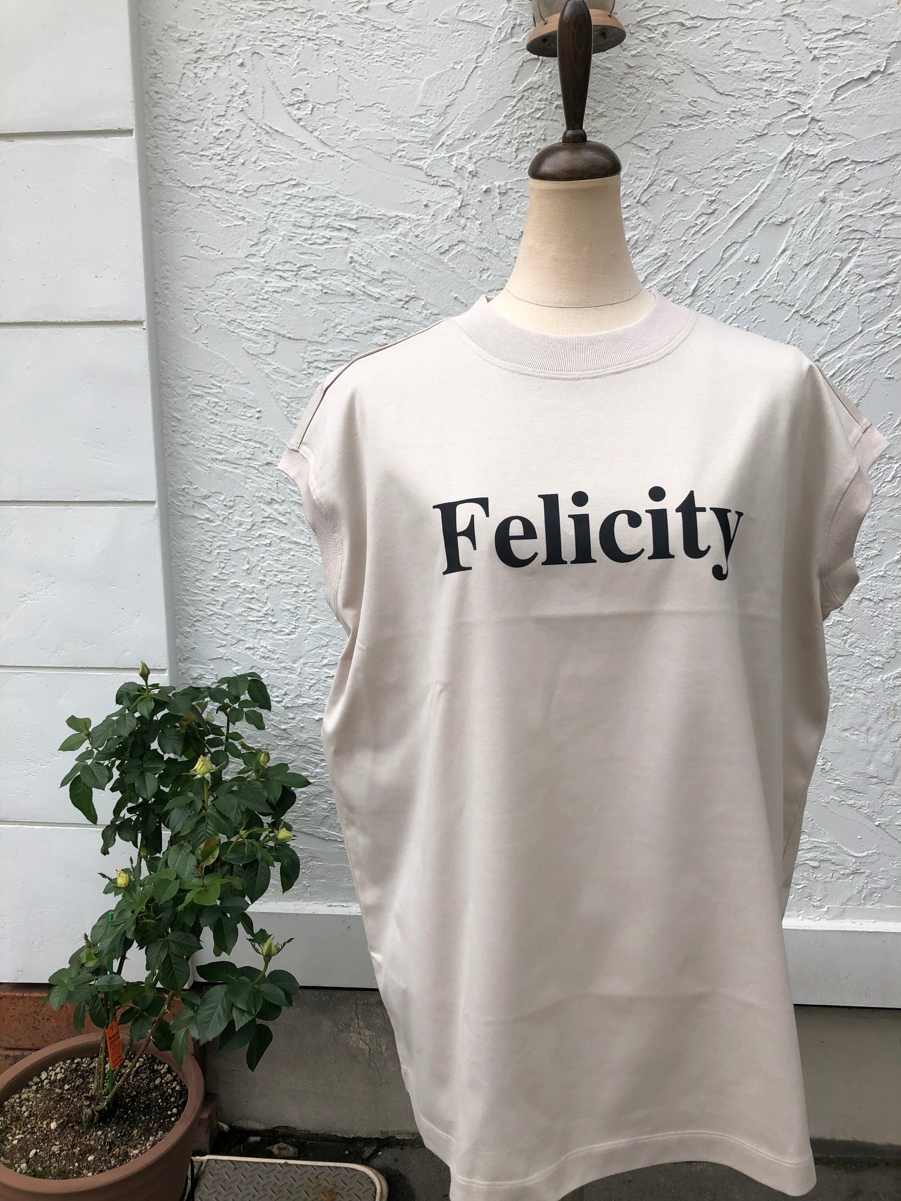 ドロップショルダーの肩から腕が少し隠れるミニスーリーブで