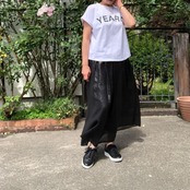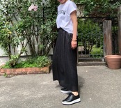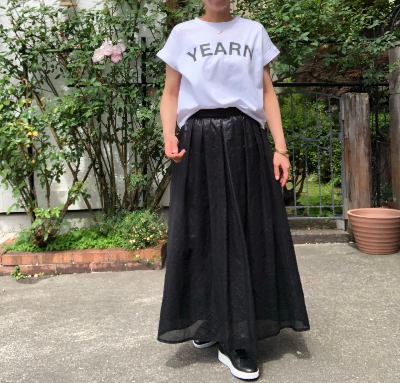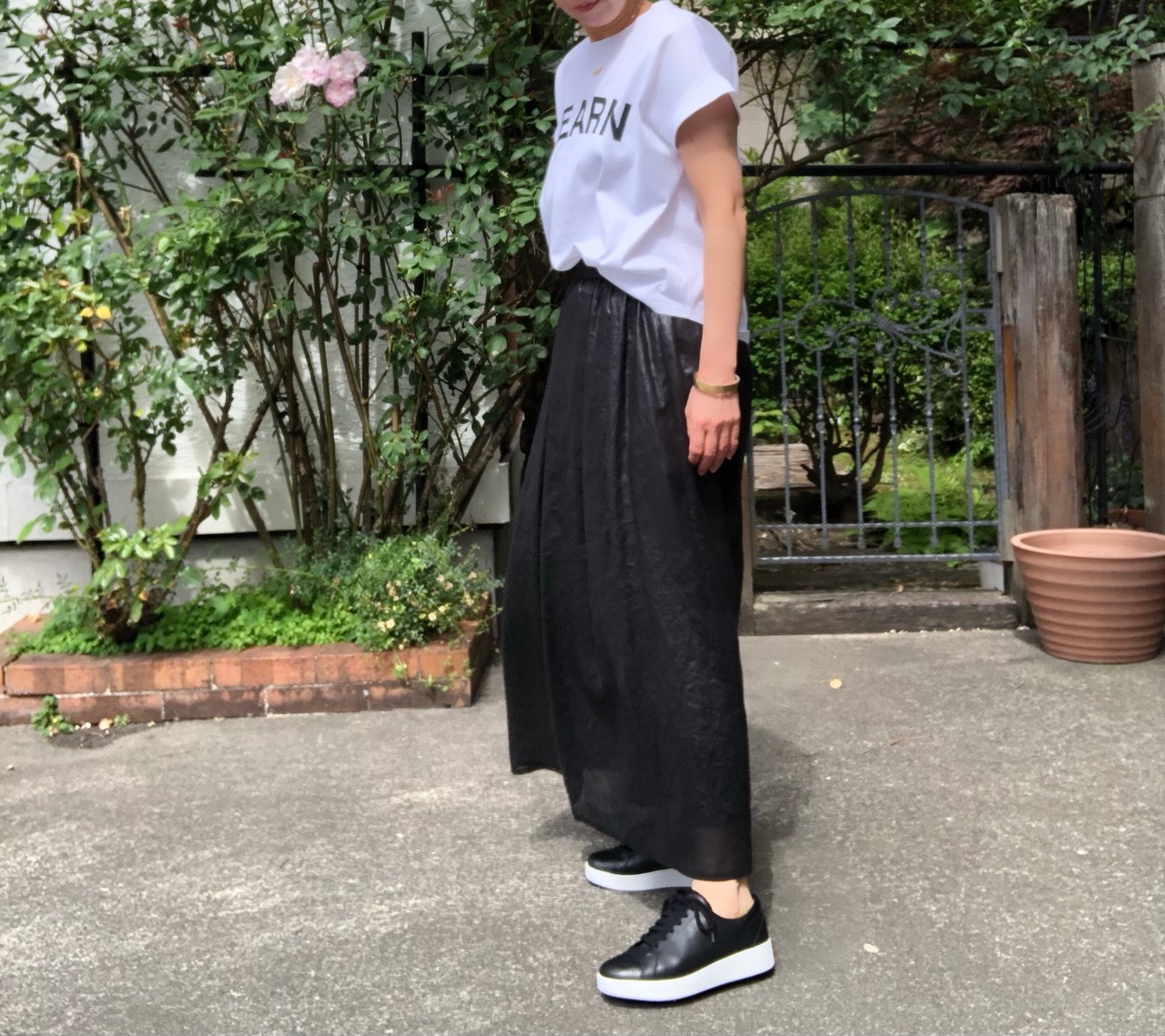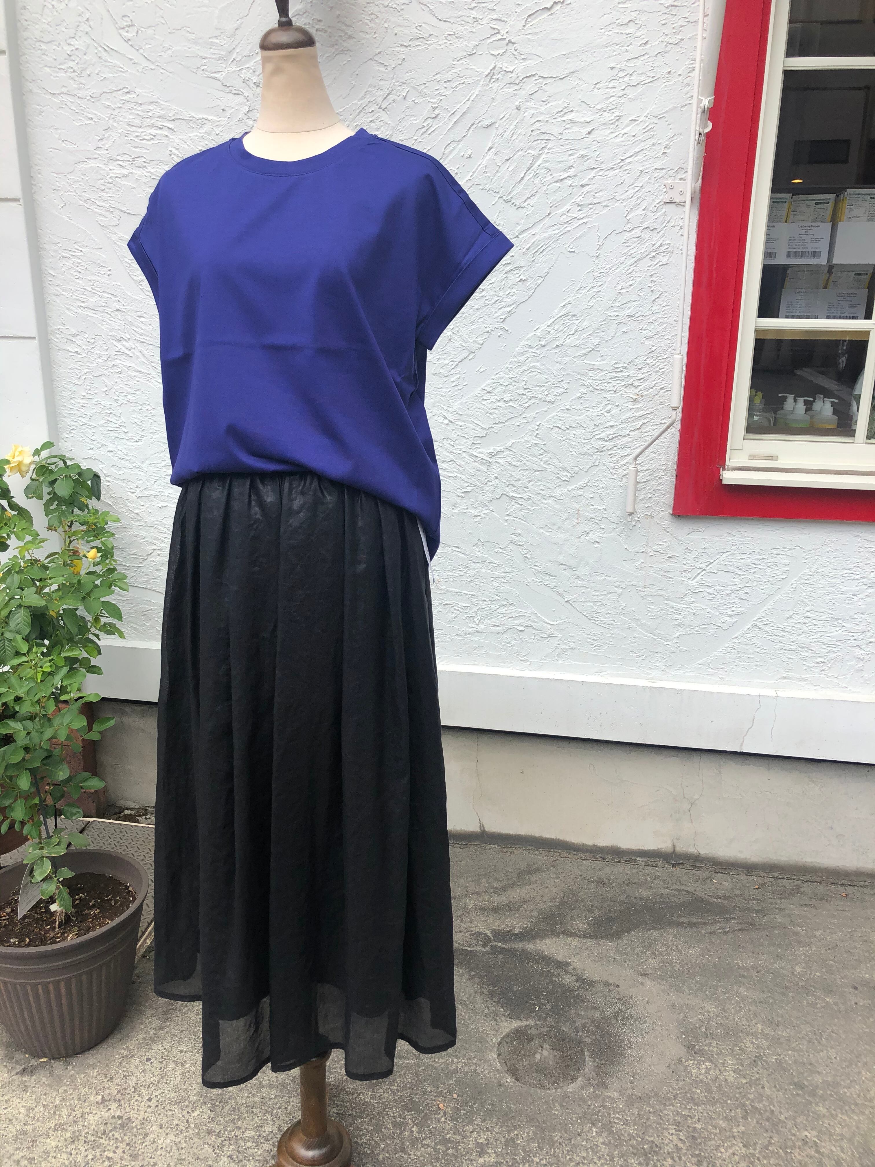 リネンのようなハリがあり、光沢もあるレザーライクなスカート
