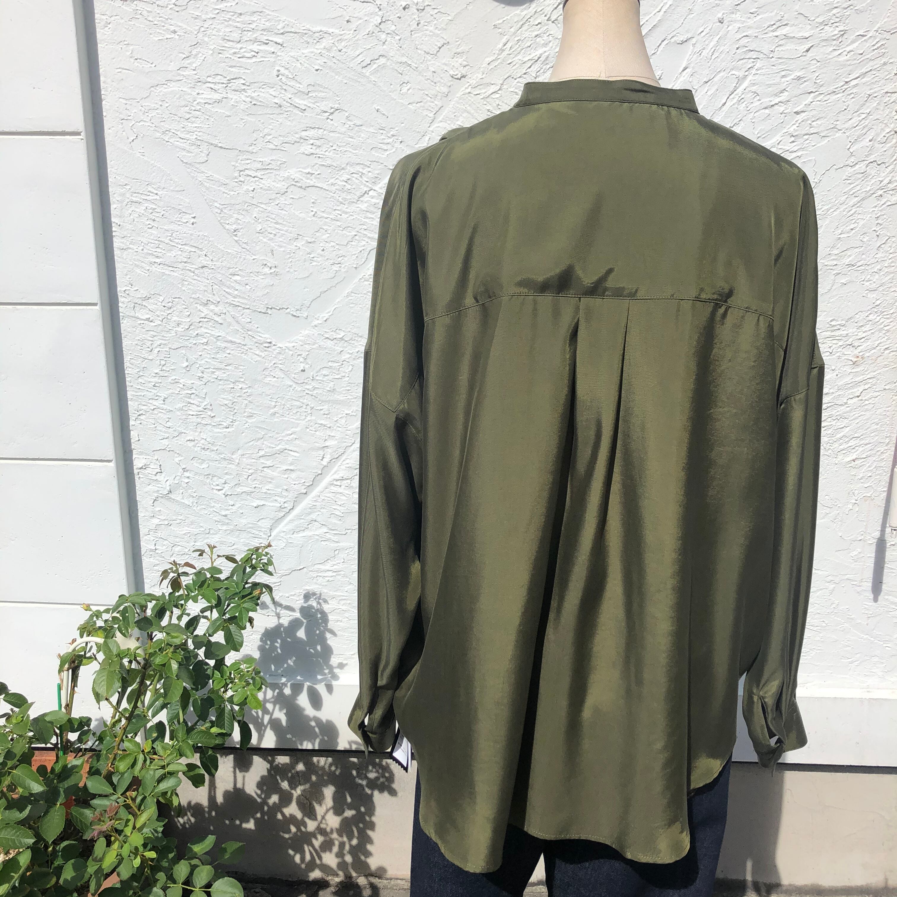 ふんわりエアリーなシルエットのバトンカラーシャツ