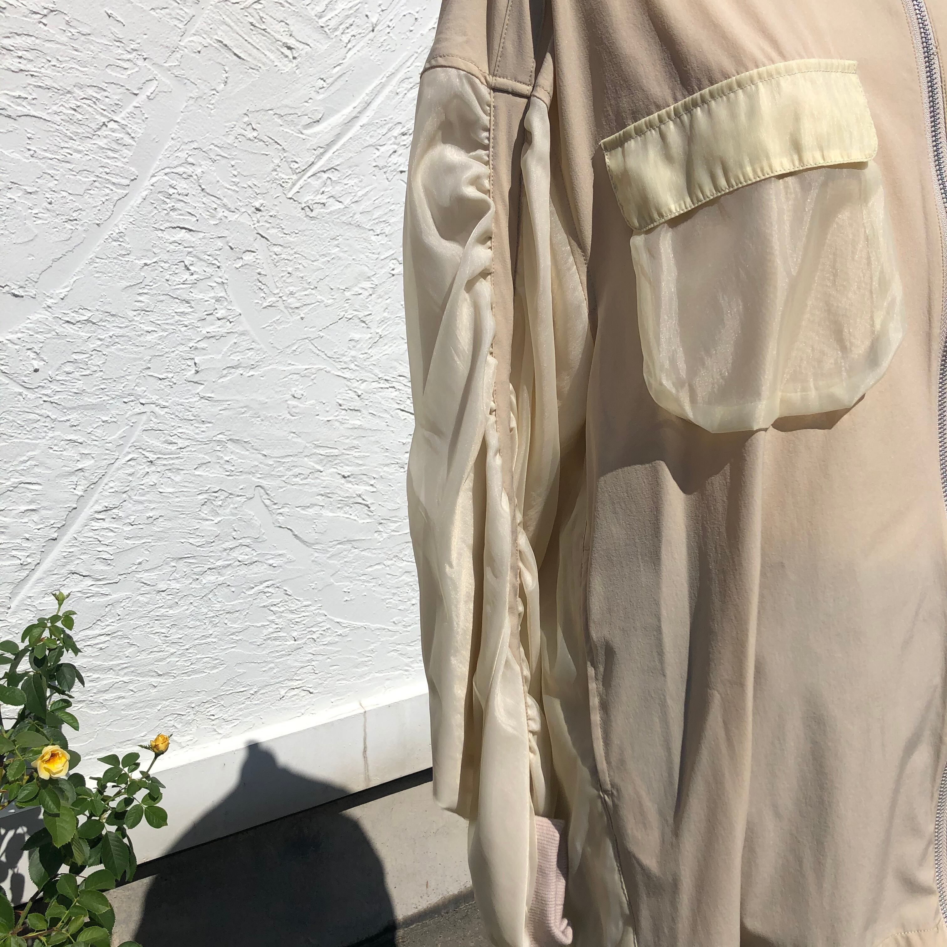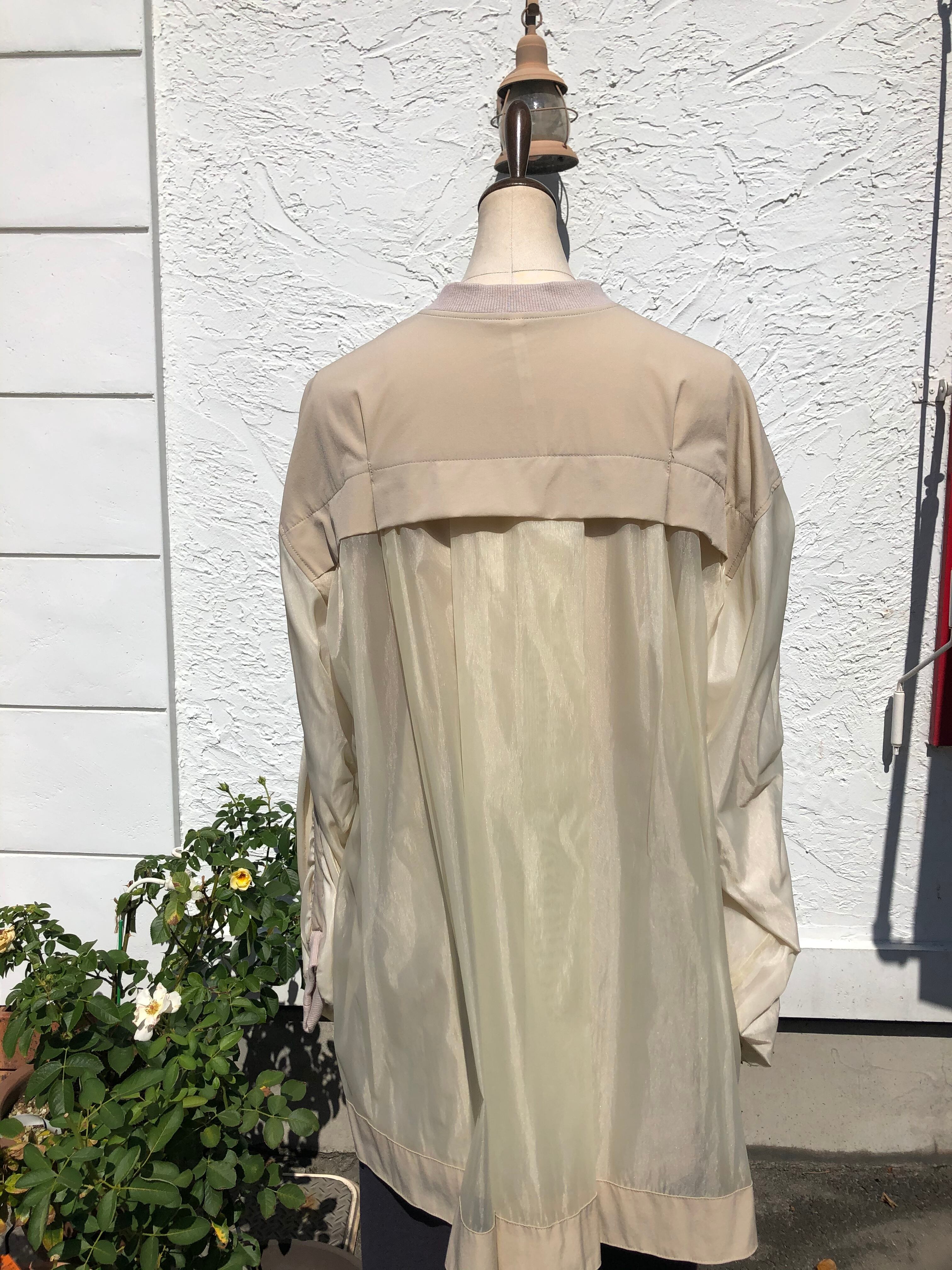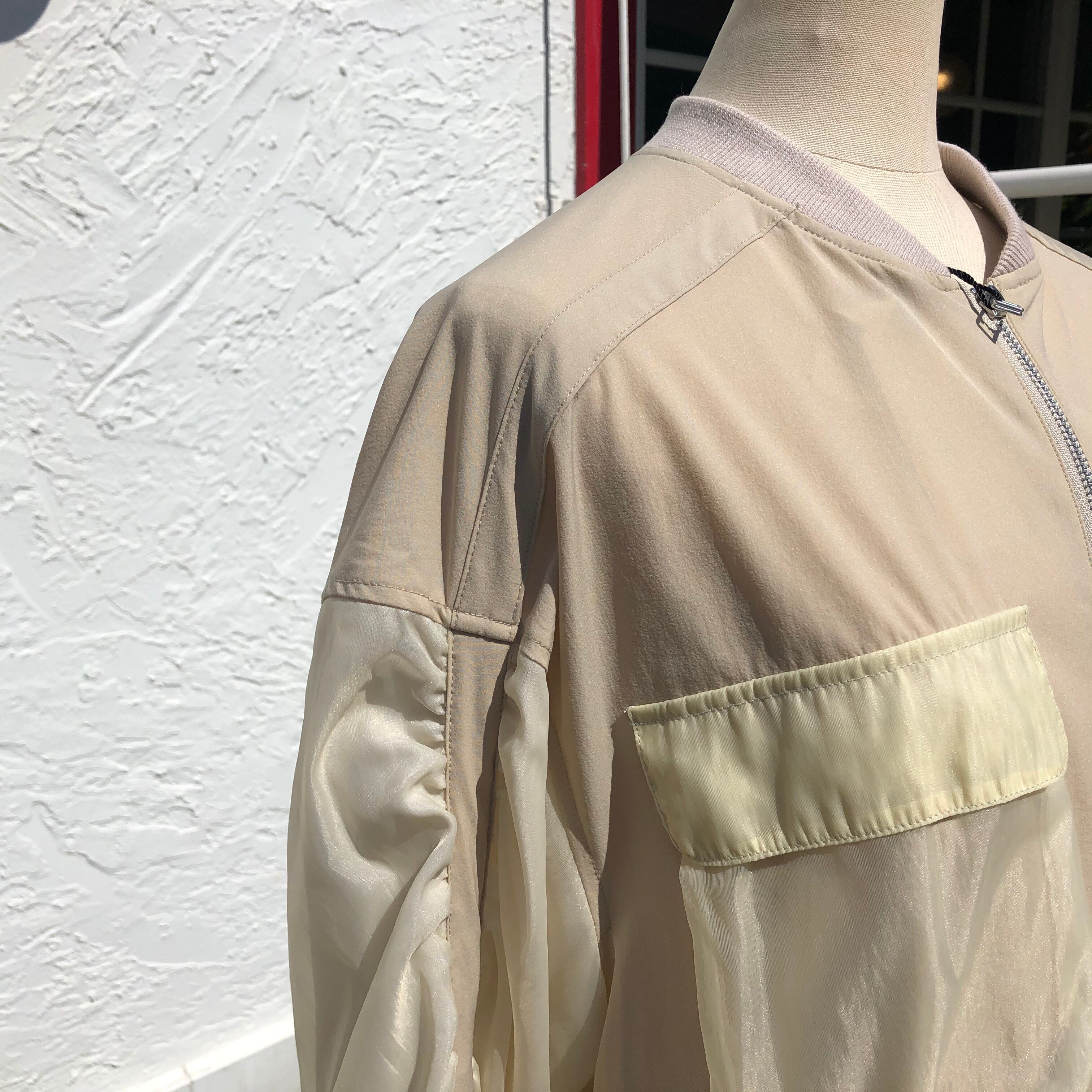 後ろはオーガンジーのプリーツと女性らしさ満載のブルゾン