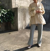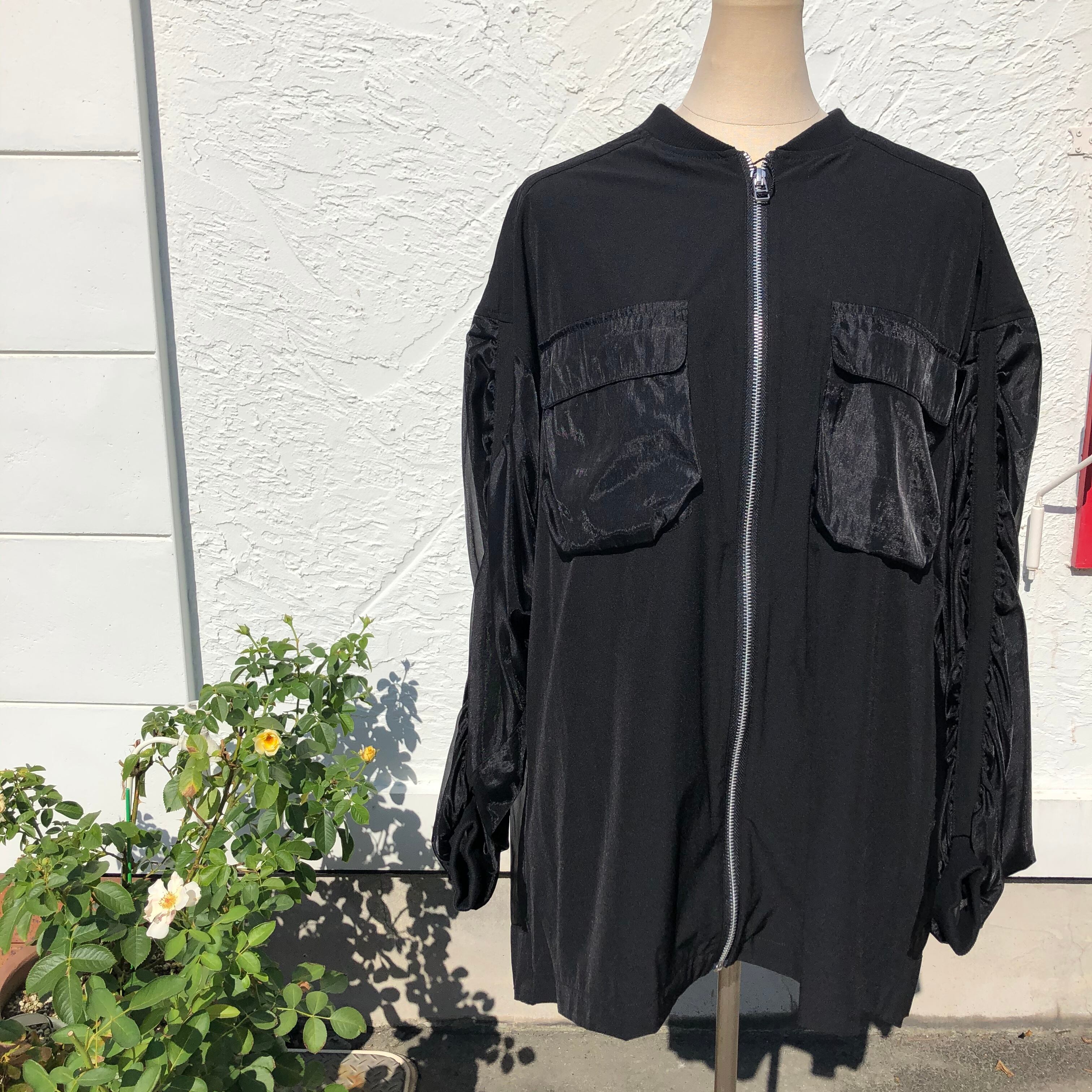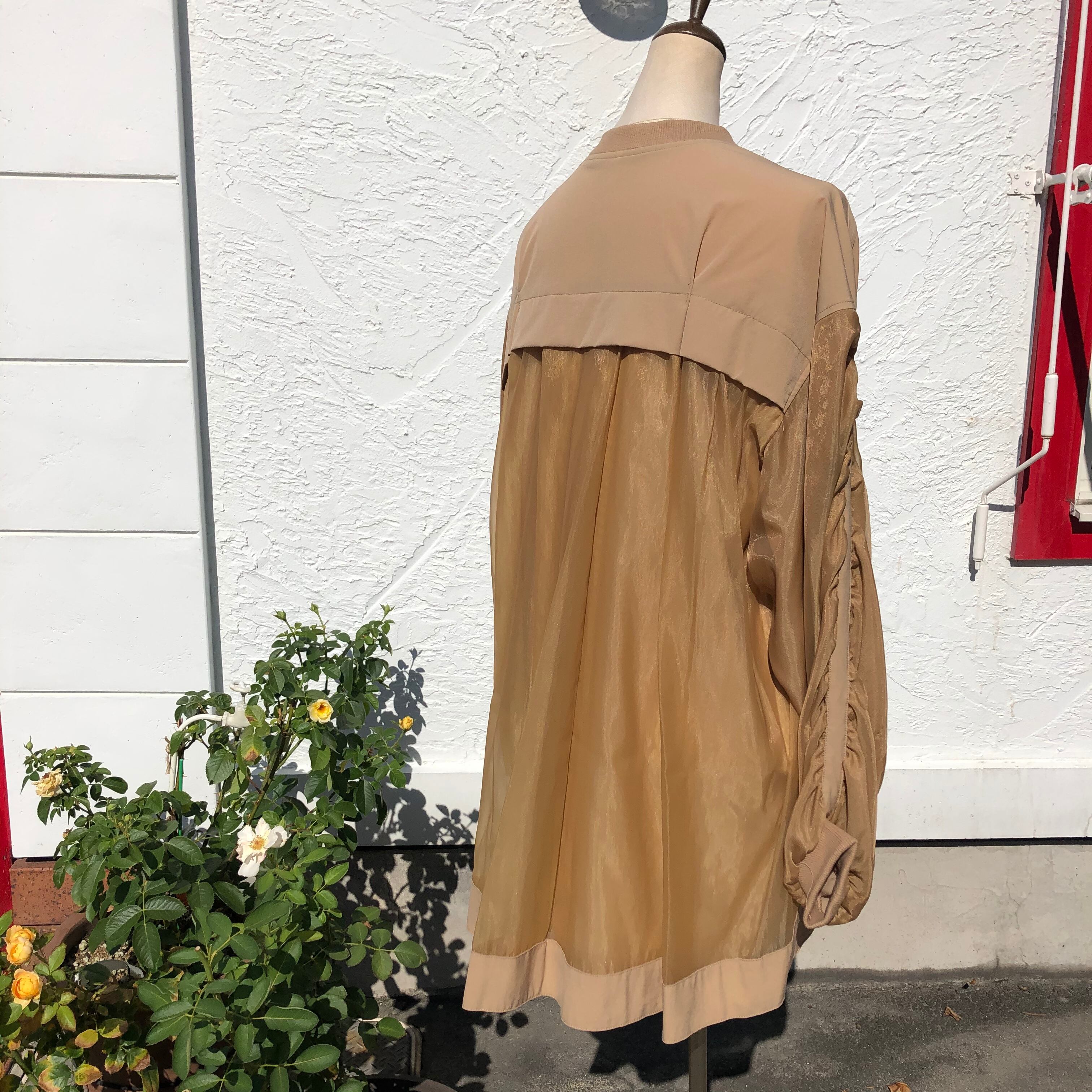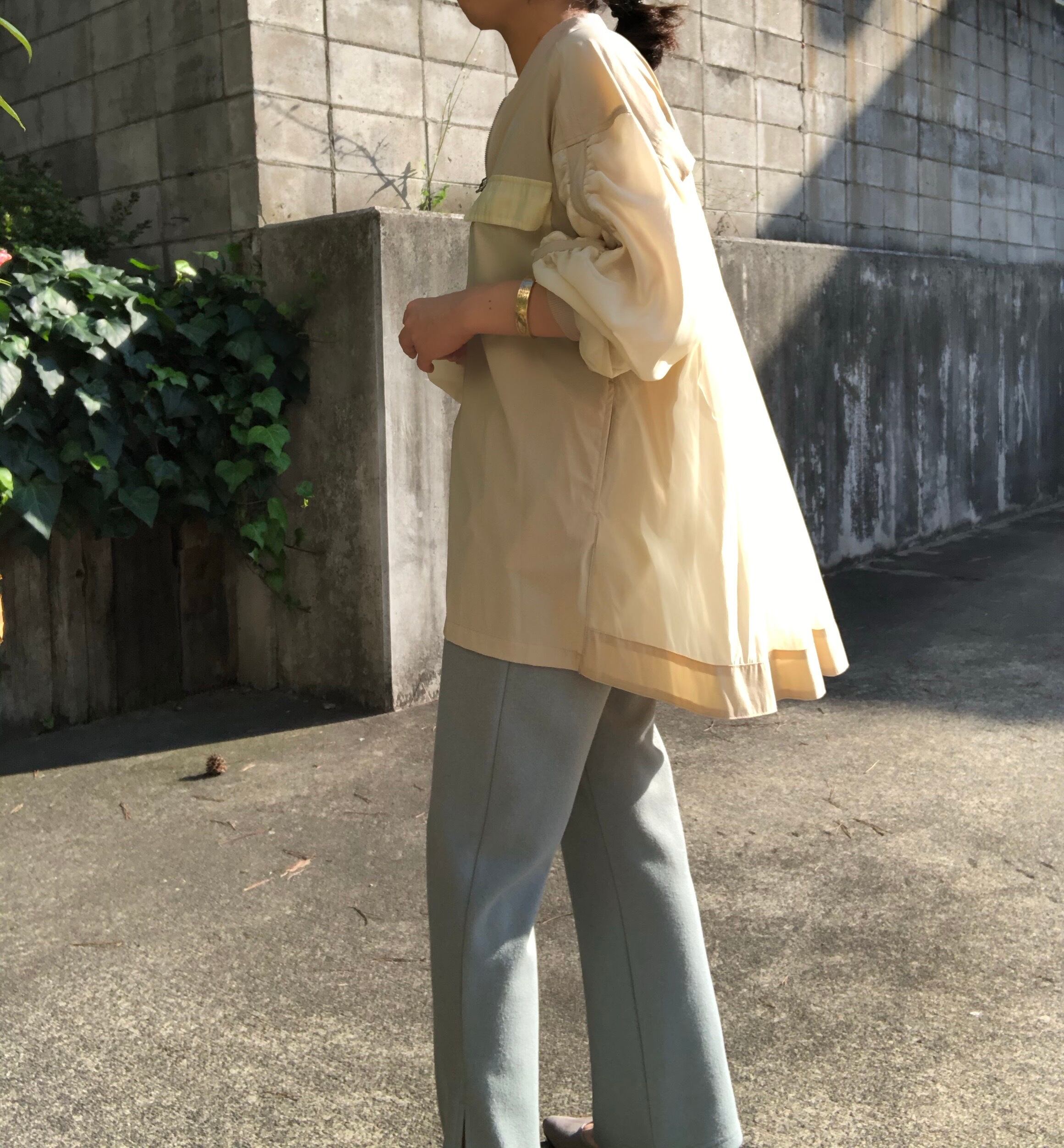 後ろはオーガンジーのプリーツと女性らしさ満載のブルゾン