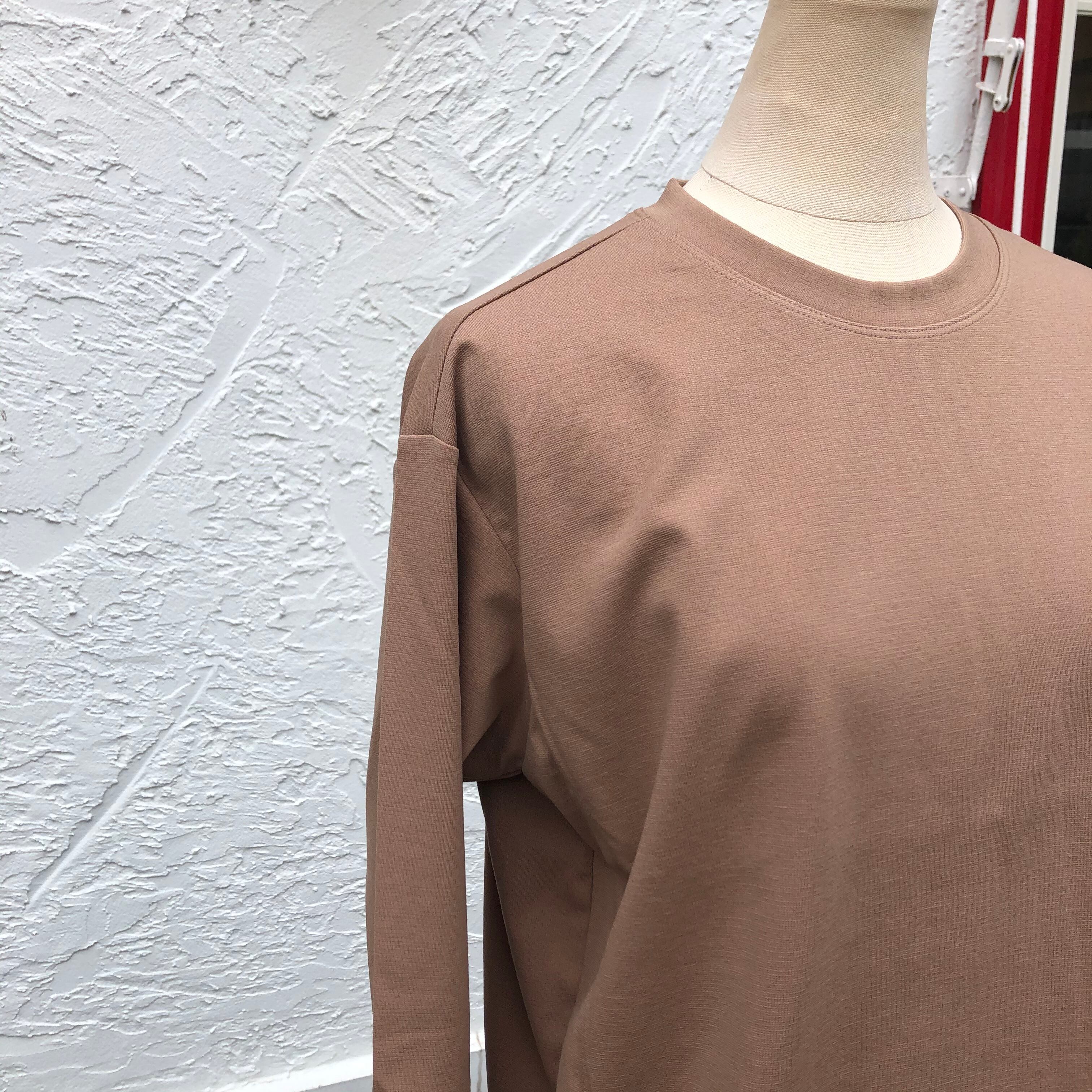 クルーネックに、脇、裾の切り替え