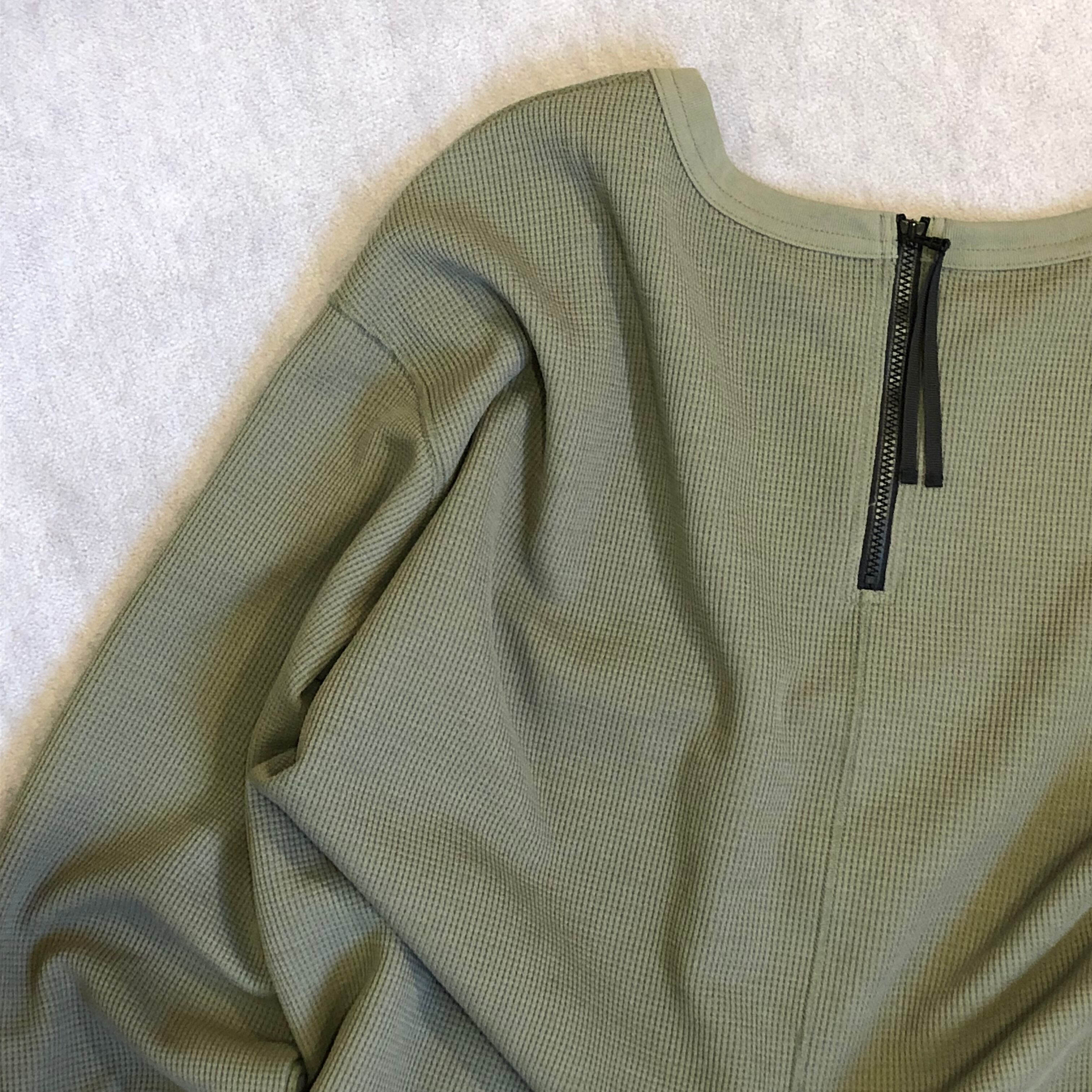 裾のラウンドと程よいボリューム袖と長めの袖リブデザインは、一枚着としても、インナーとしても使えコーディネートの幅が広がります