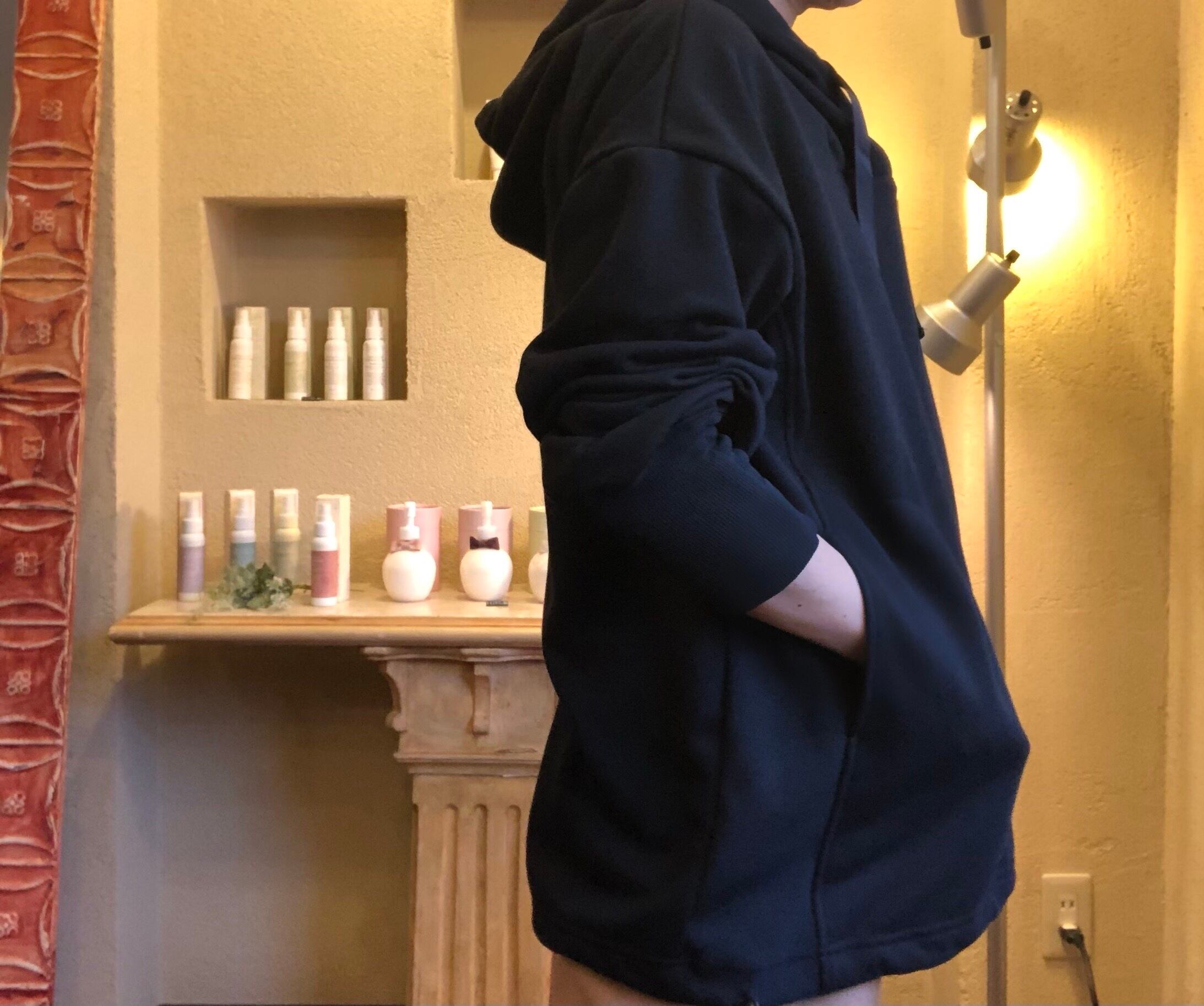 サイドはパネル仕様で、身体を立体的に細見えリブをパネルで使っており、可動域を広げます