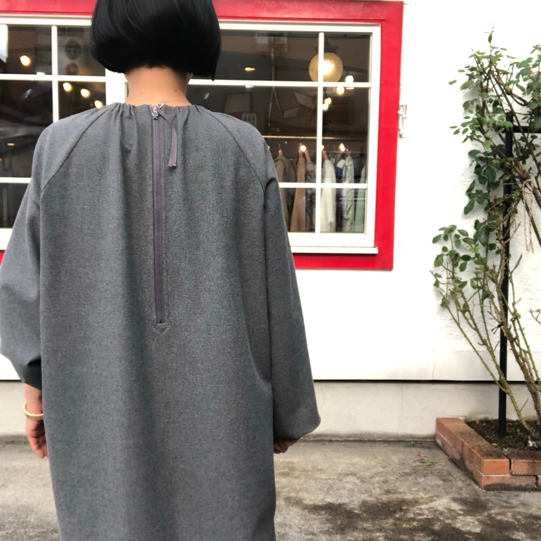 lelill シャーリングネックワンピース