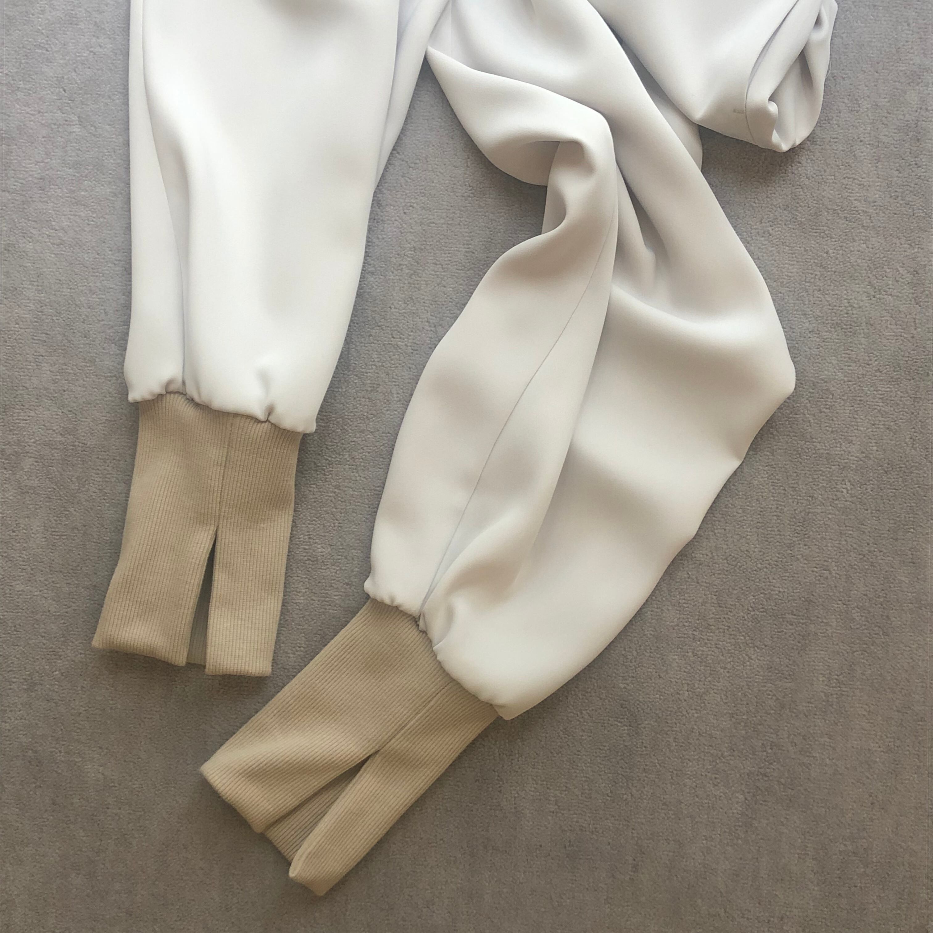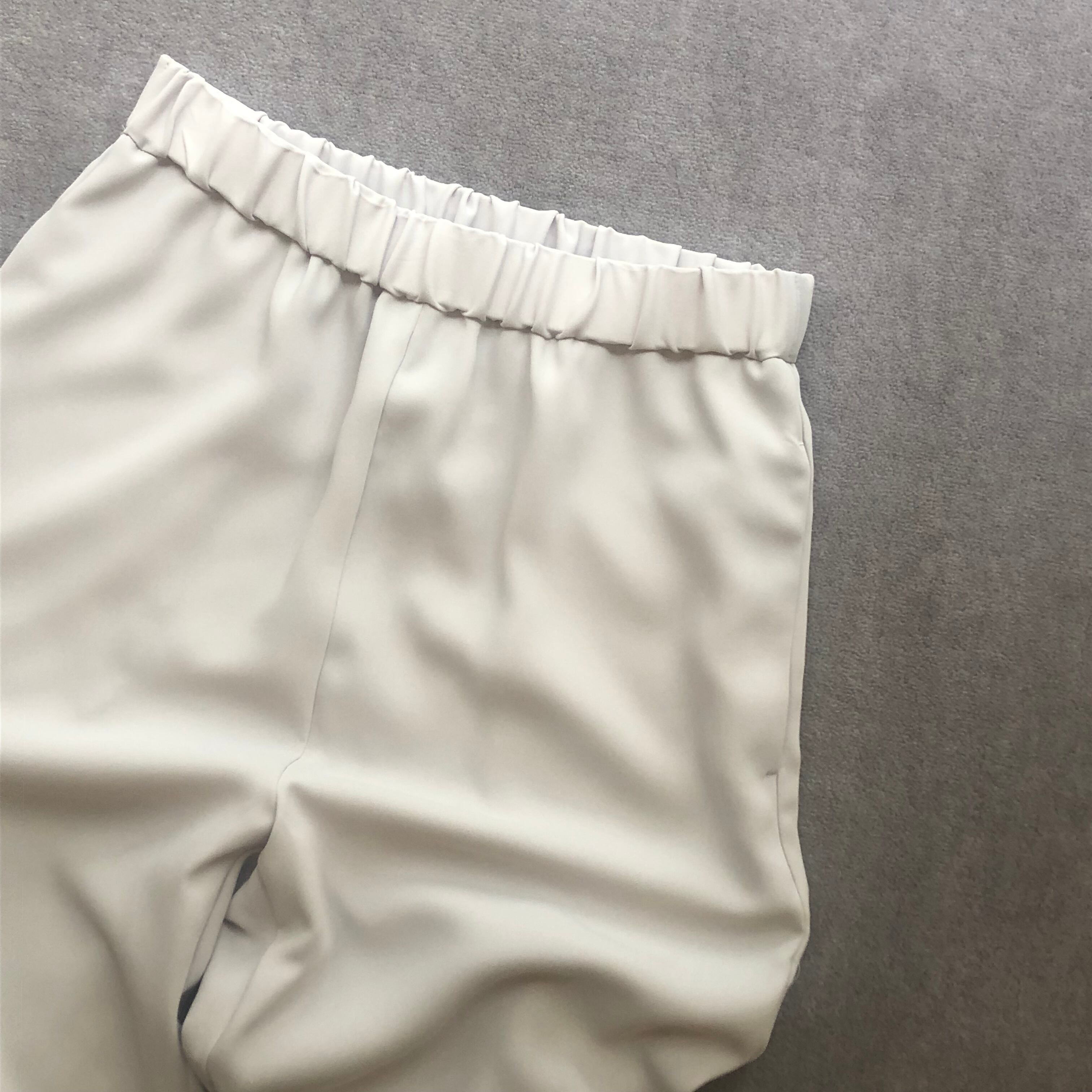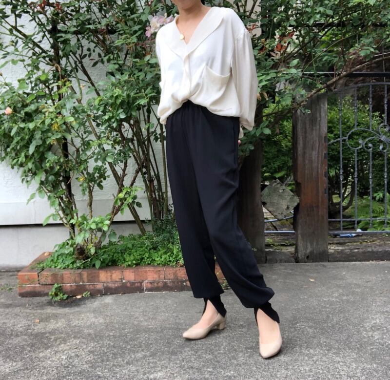 ドレープ性が高く柔らかな質感で、デザイン性がありながらもきれいめな見え方をするパンツです
